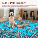 Ultra Soft Area Rug, Non Slip, Stain Resistant, Washable Area Rugs for Living Room, Bedroom, Medallion Floral Vintage(Blue) Overview: