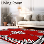Ultra Soft Area Rug, Non Slip, Stain Resistant, Washable Area Rugs for Living Room, Bedroom, Medallion with Houndstooth Border Accent Details(Red) Overview: