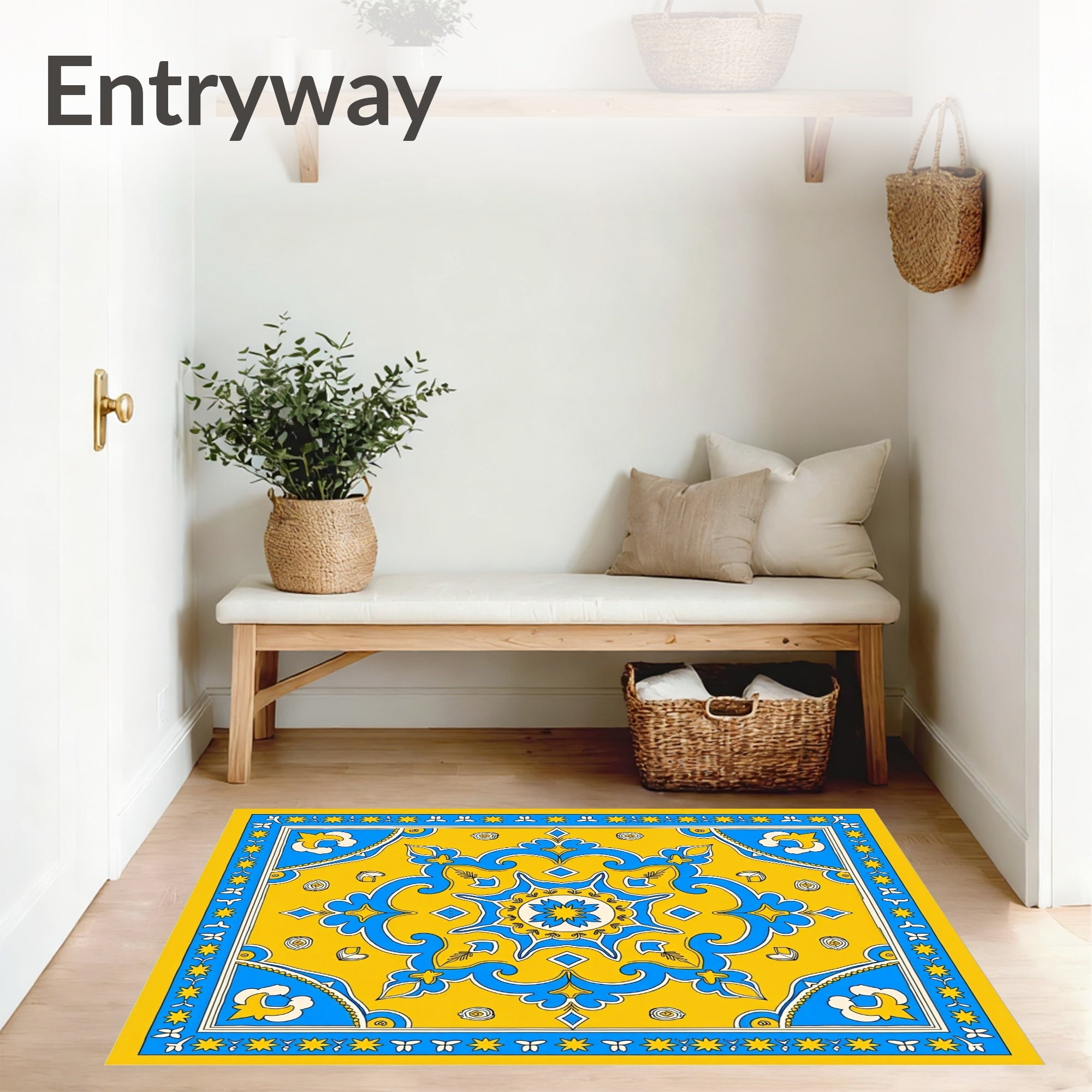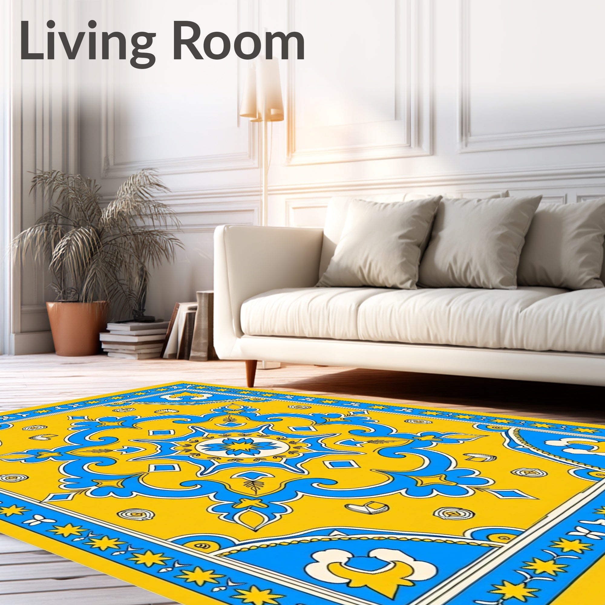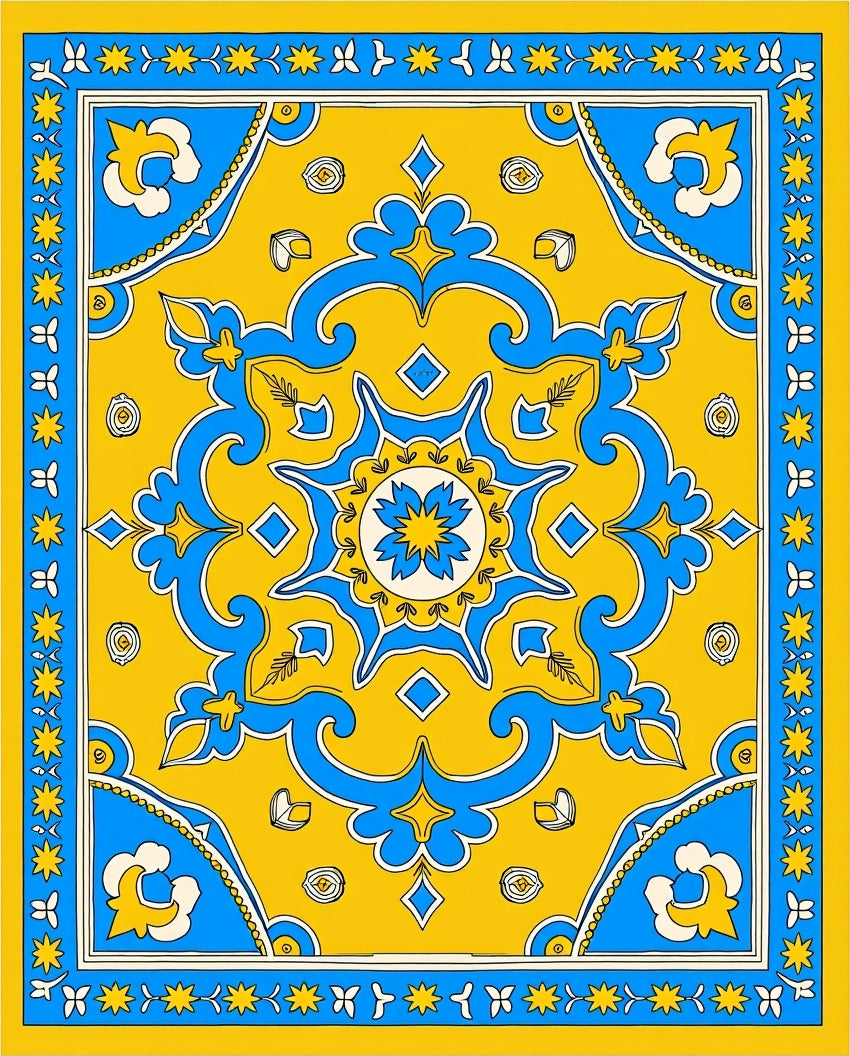 Ultra Soft Area Rug, Non Slip, Stain Resistant, Washable Area Rugs for Living Room, Bedroom, Mediterranean Mosaic Heritage Elegant Medallion Tapestry(Yellow) Overview: