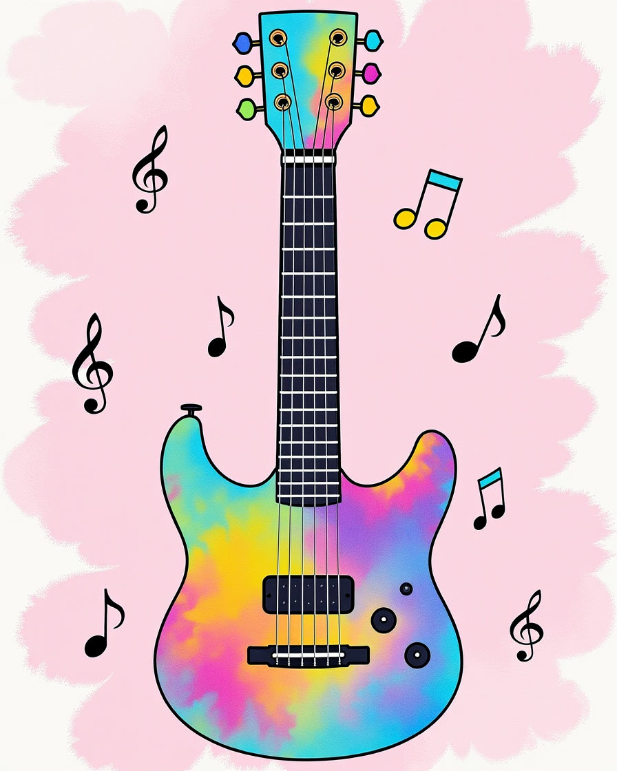 Melodic Fretboard Jam Session Artistic Strings Composition Tapestry(Pink)