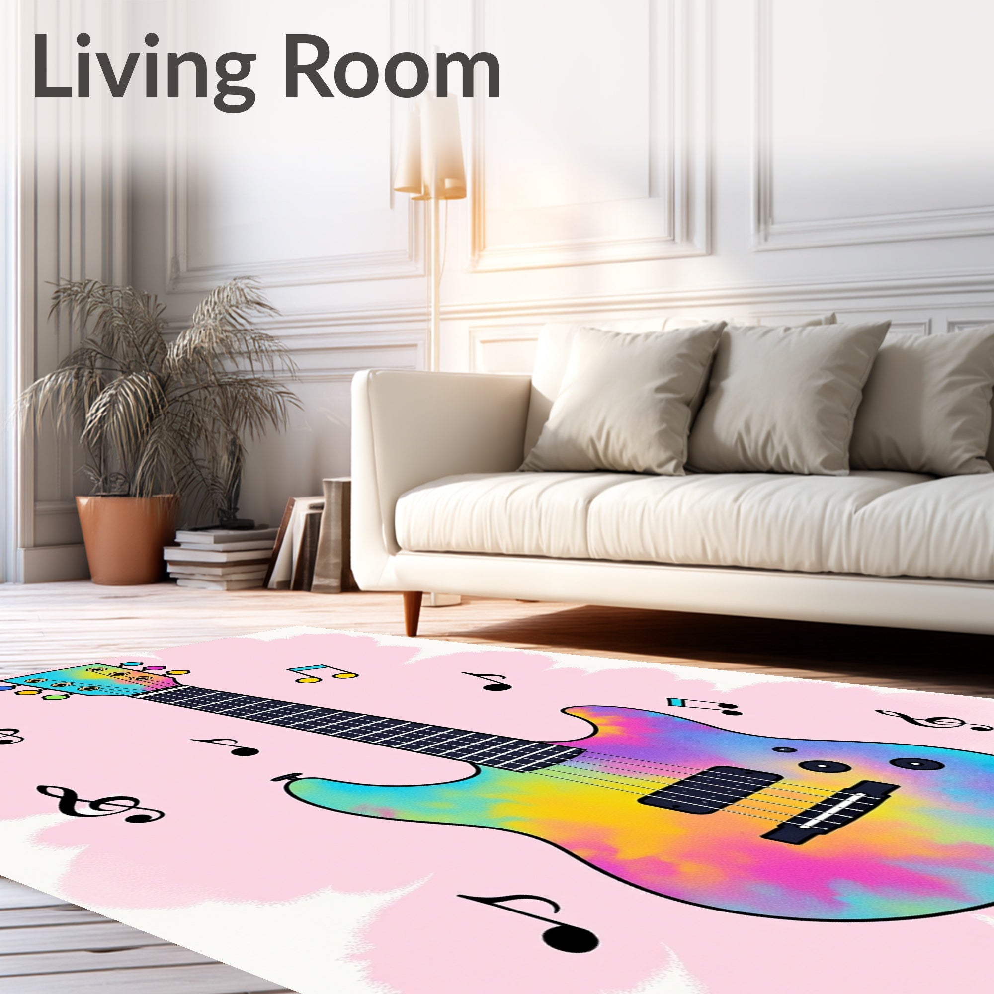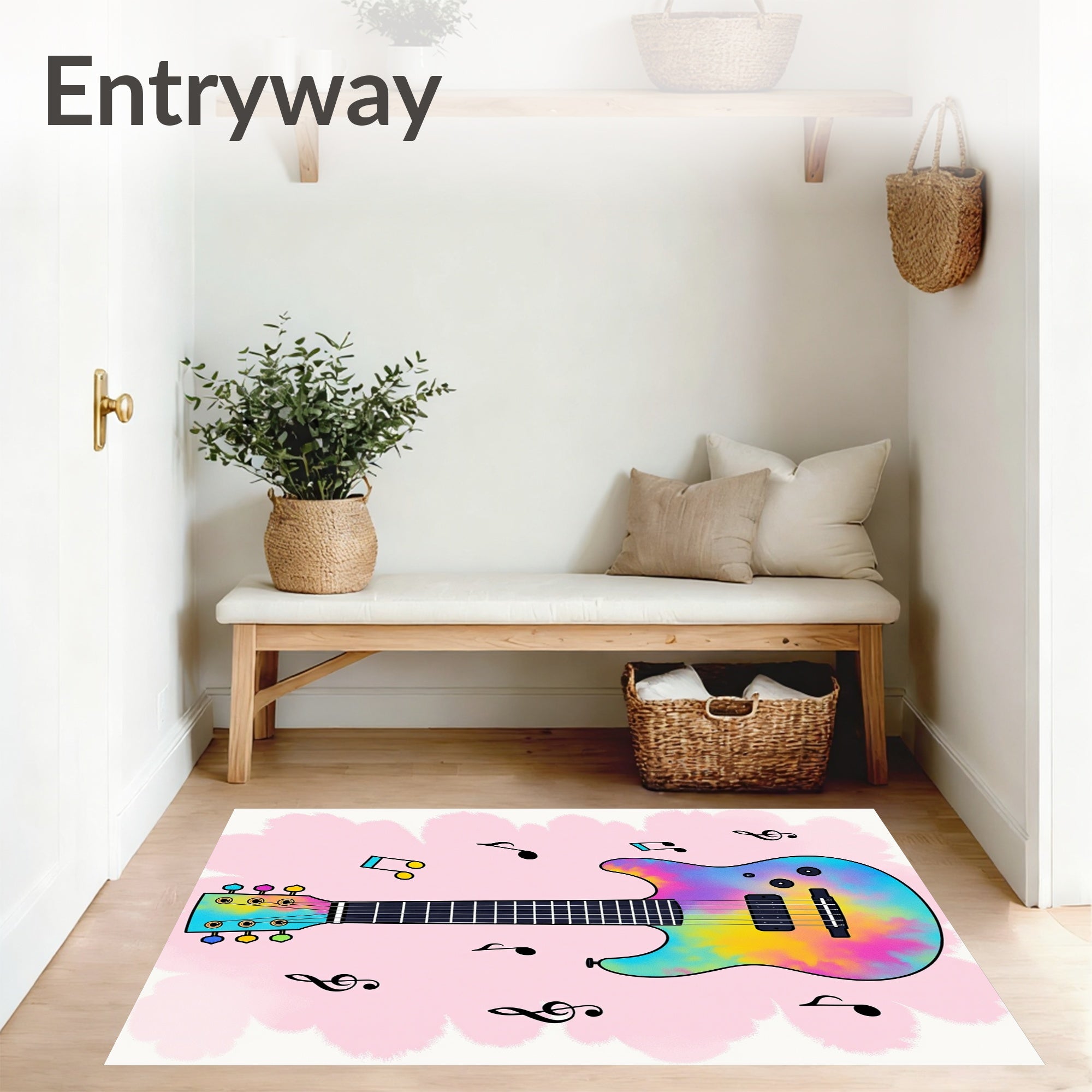 Ultra Soft Area Rug, Non Slip, Stain Resistant, Washable Area Rugs for Living Room, Bedroom, Melodic Fretboard Jam Session Artistic Strings Composition Tapestry(Pink) Overview: