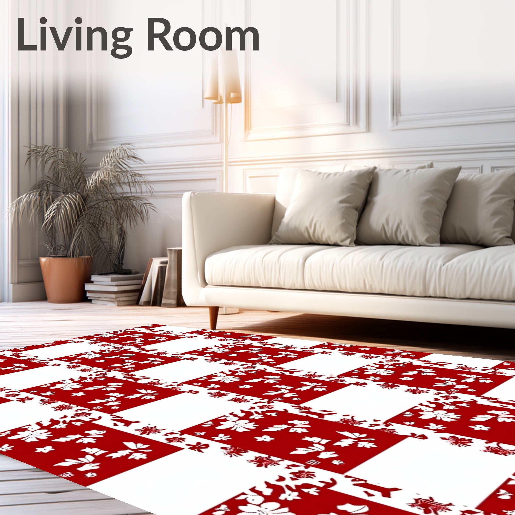 Ultra Soft Area Rug, Non Slip, Stain Resistant, Washable Area Rugs for Living Room, Bedroom, Merry Checkerboard Hospitality Front Step(Red) Overview: