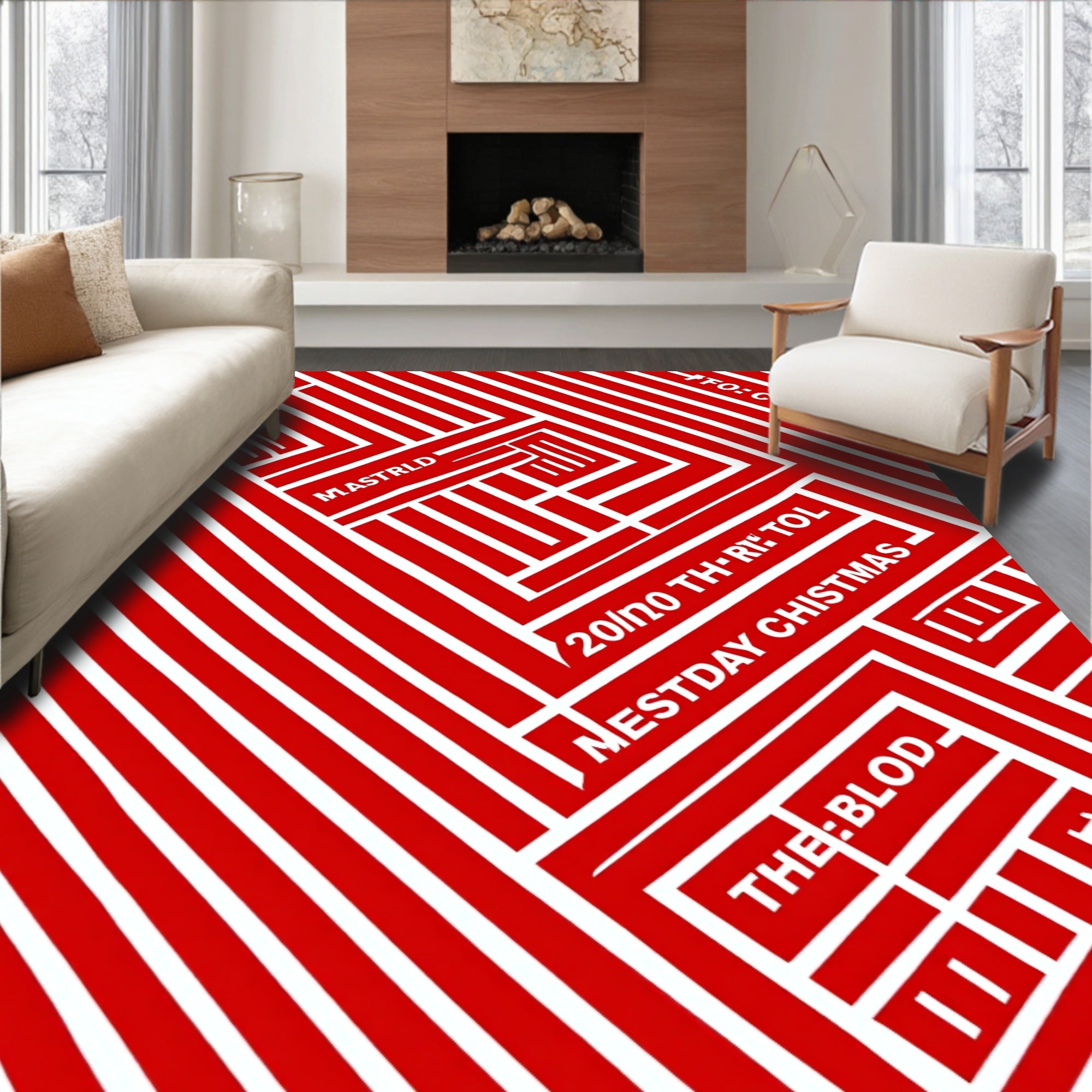 Ultra Soft Area Rug, Non Slip, Stain Resistant, Washable Area Rugs for Living Room, Bedroom, Merry Crosshatch Entrance Statement Welcoming(Red) Overview: