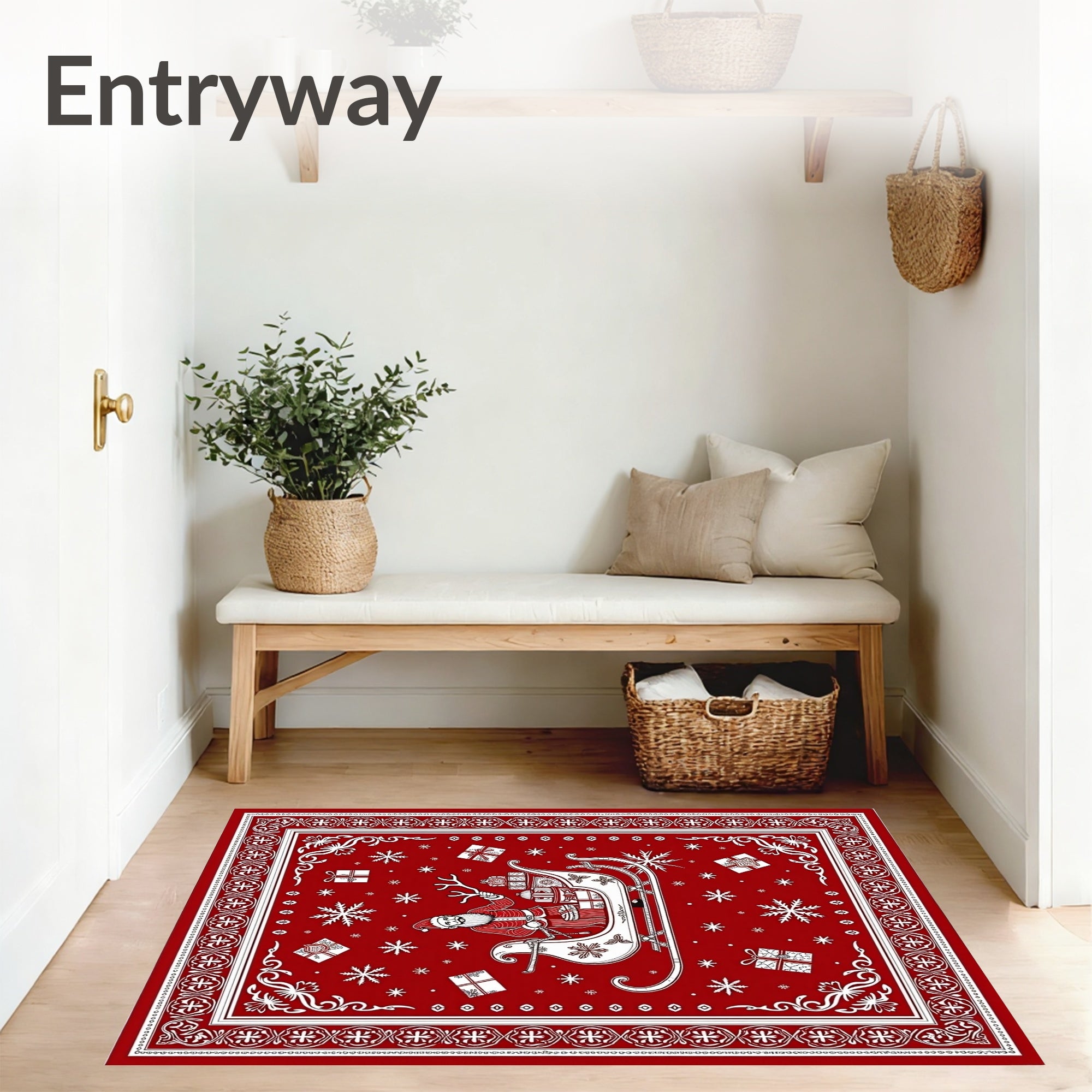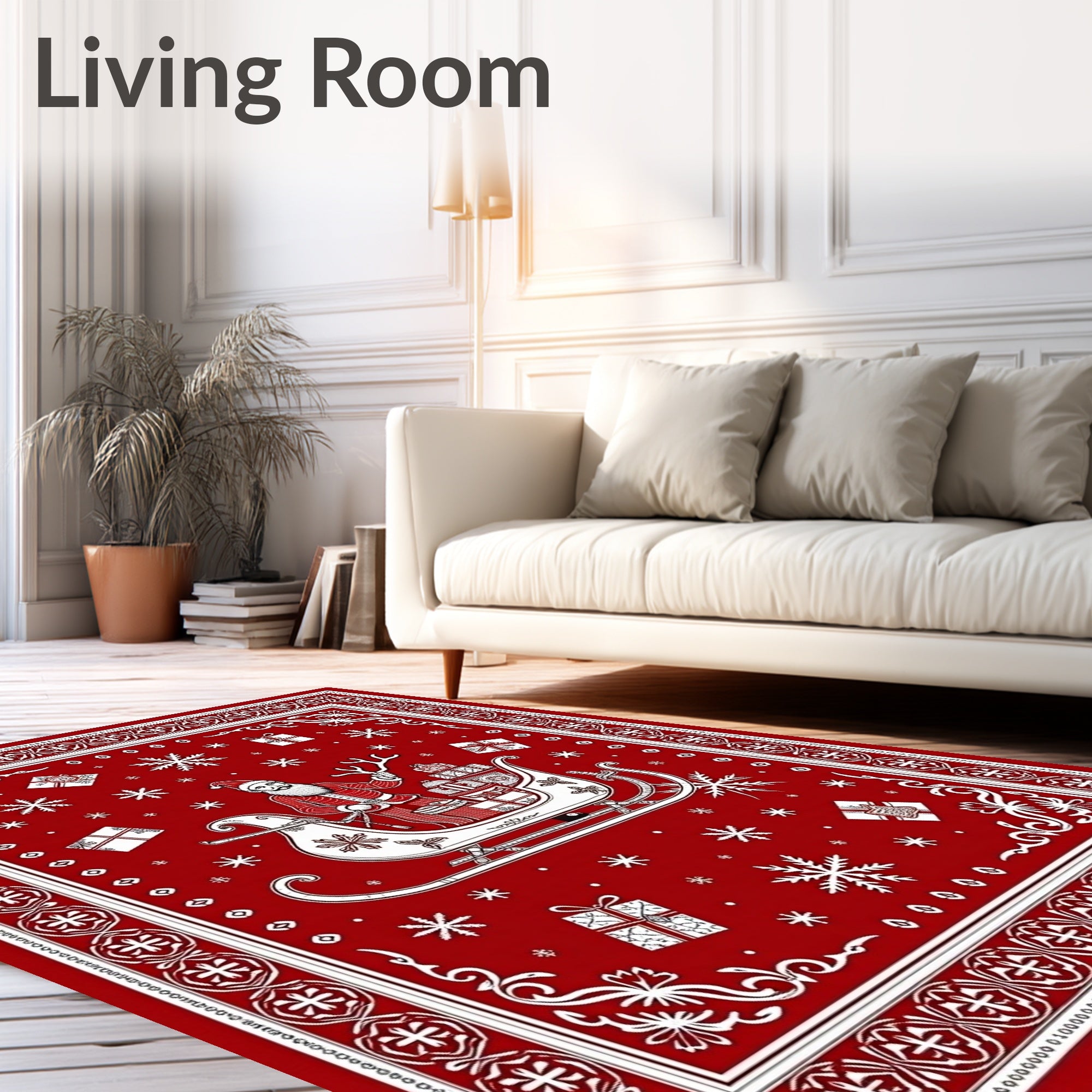 Ultra Soft Area Rug, Non Slip, Stain Resistant, Washable Area Rugs for Living Room, Bedroom, Merry Gift Delivery Sleigh Decorative(Red) Overview: