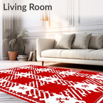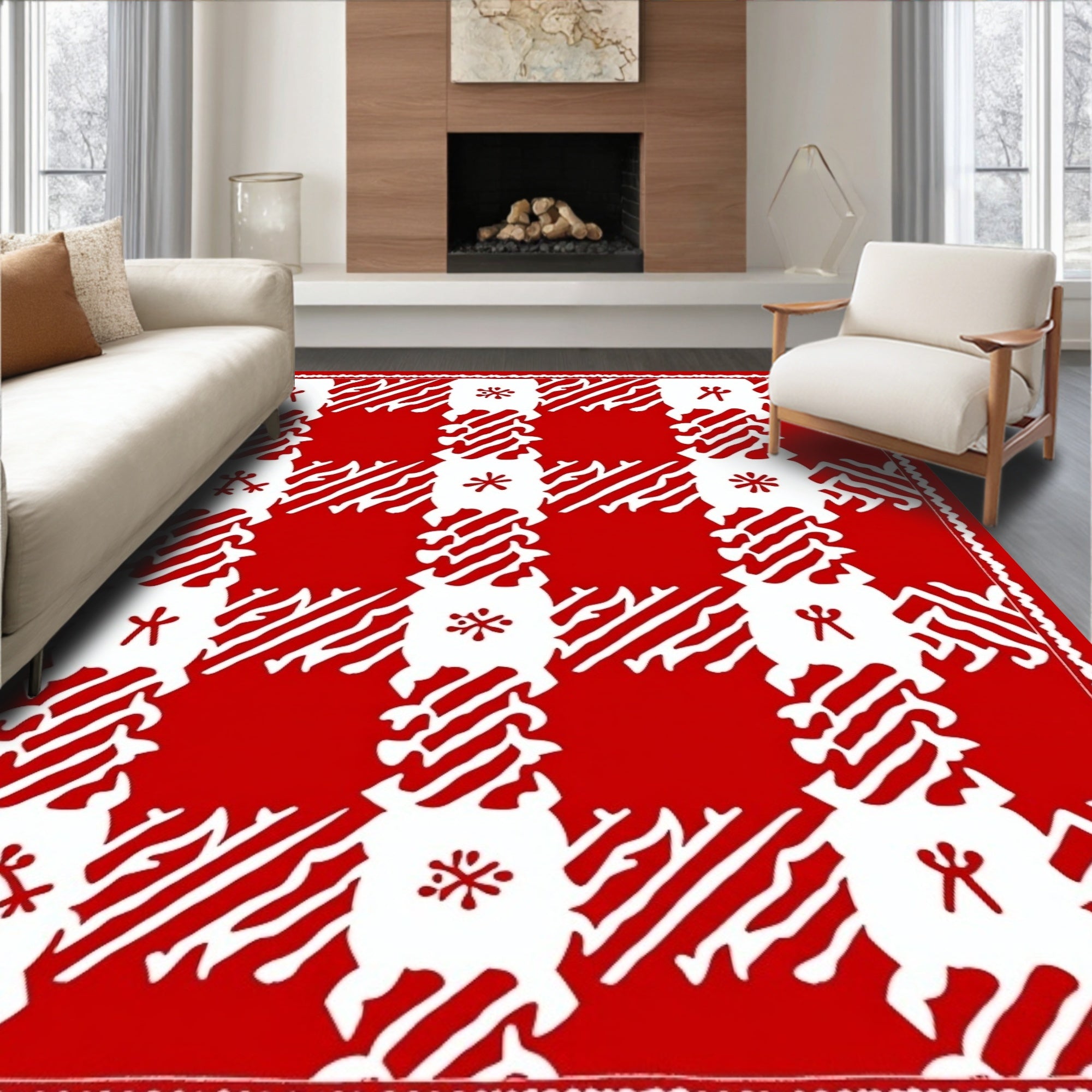 Ultra Soft Area Rug, Non Slip, Stain Resistant, Washable Area Rugs for Living Room, Bedroom, Merry Patchwork Plaid with Whimsical Gingerbread Trims(Red) Overview: