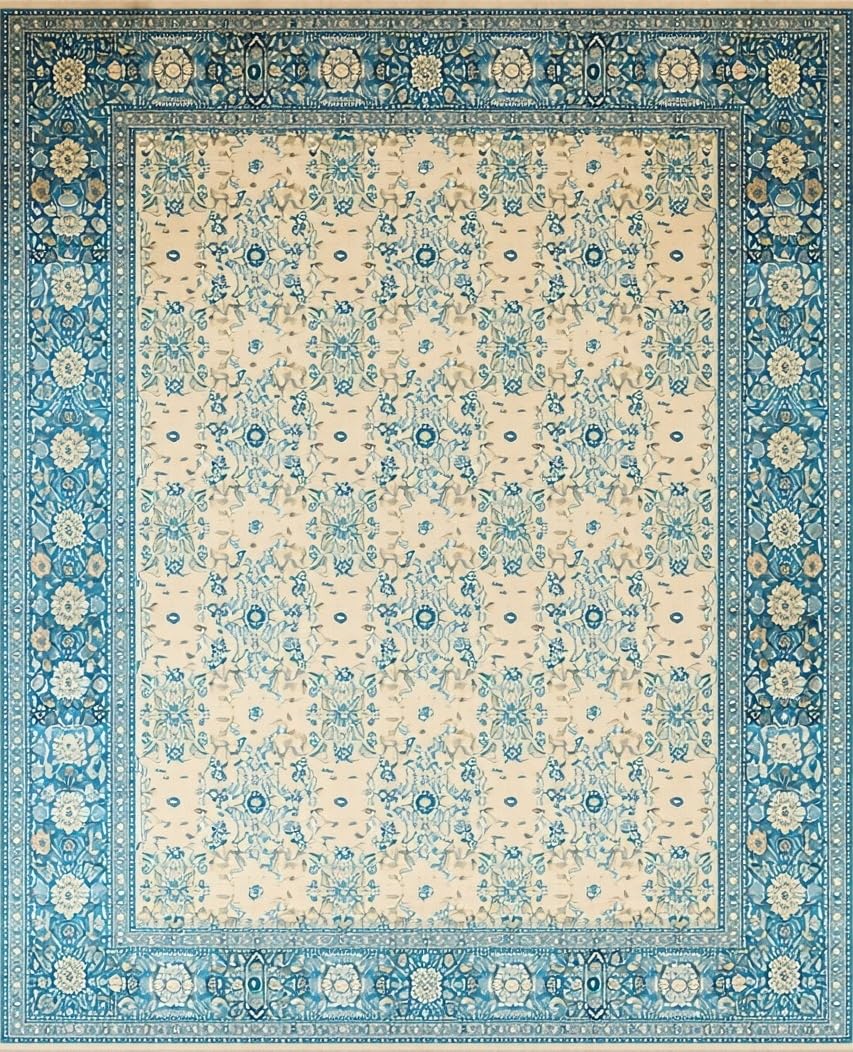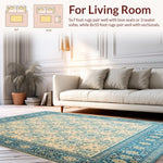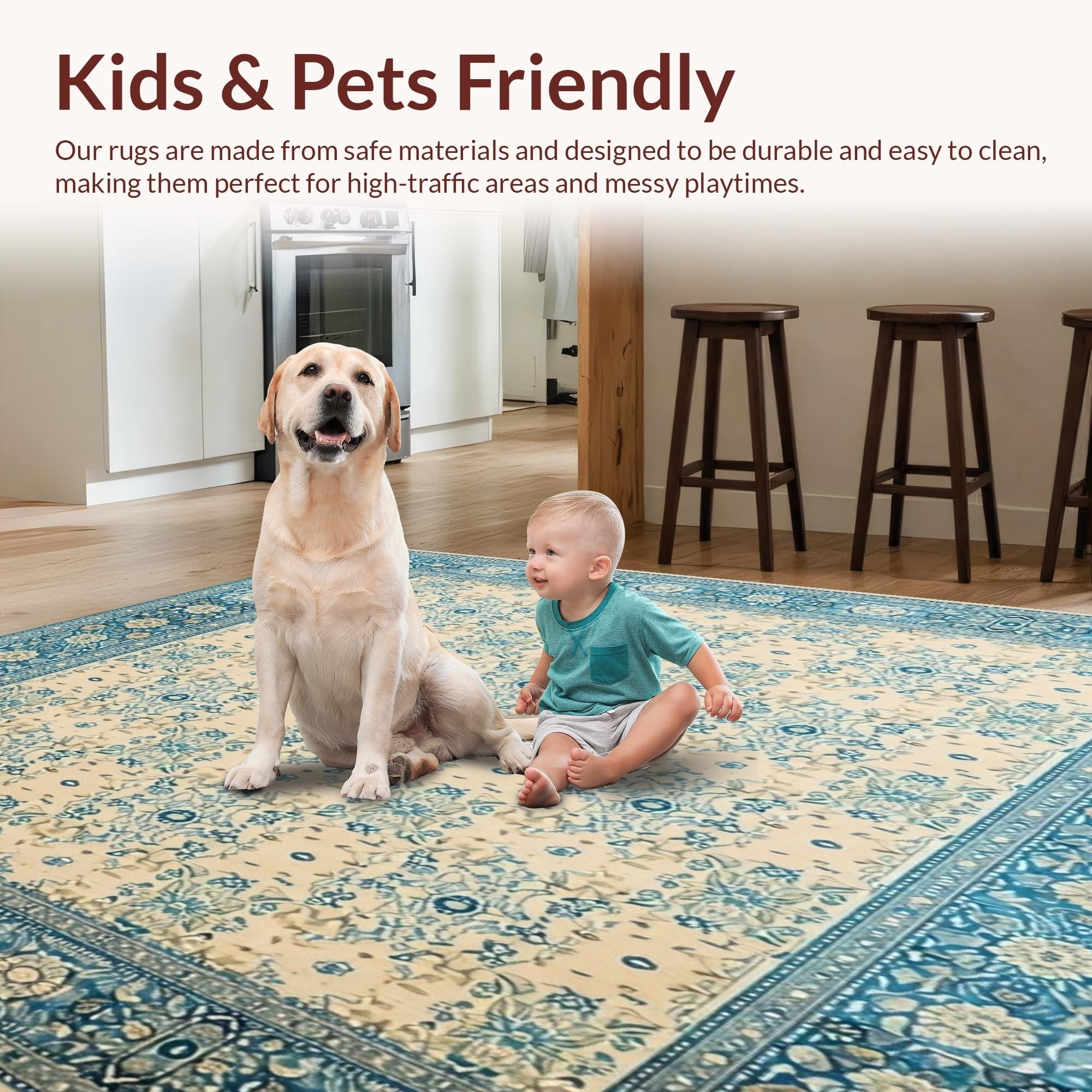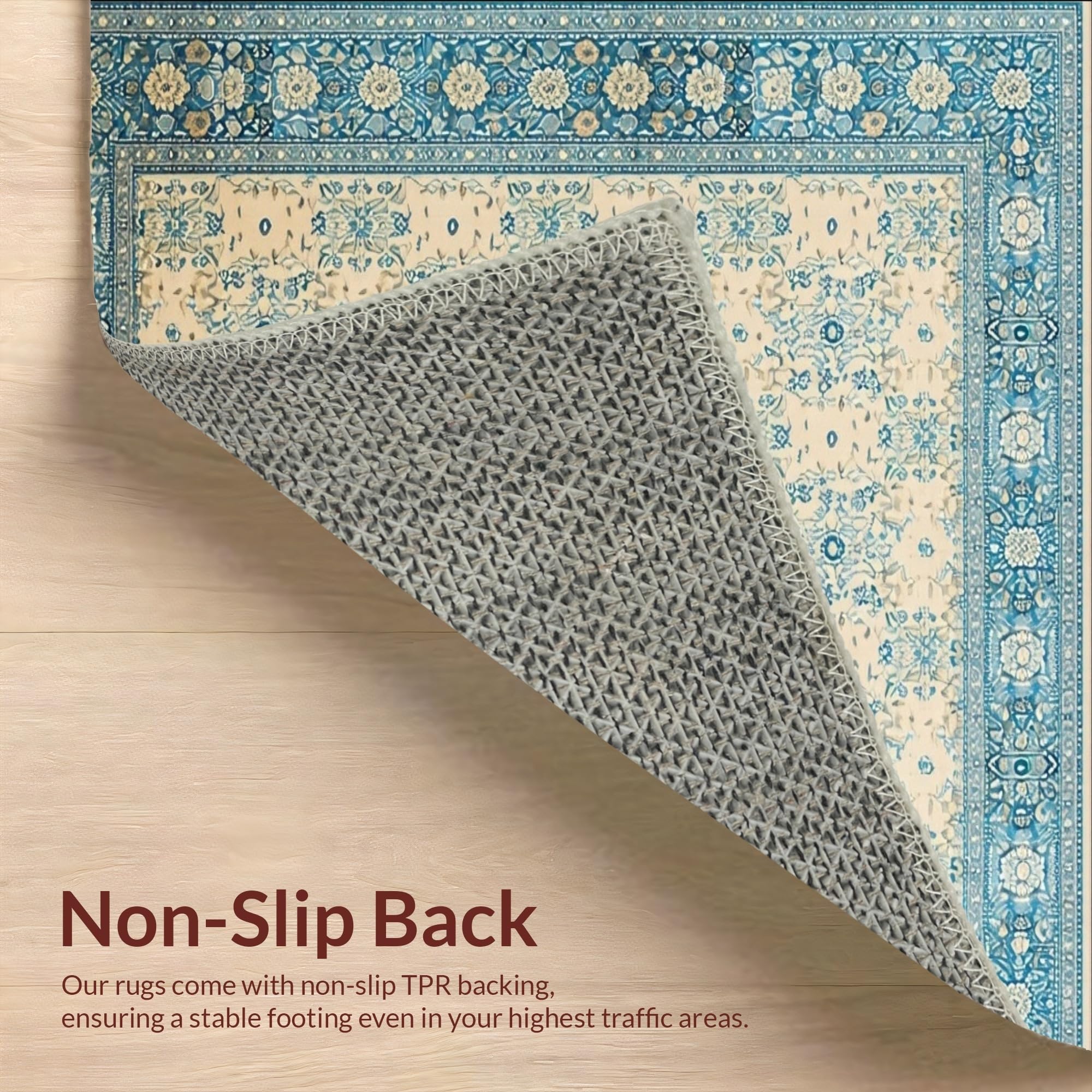 Ultra Soft Area Rug, Non Slip, Stain Resistant, Washable Area Rugs for Living Room, Bedroom, Mid Century Modern Beige and Azure Floral Accents(Beige) Overview: