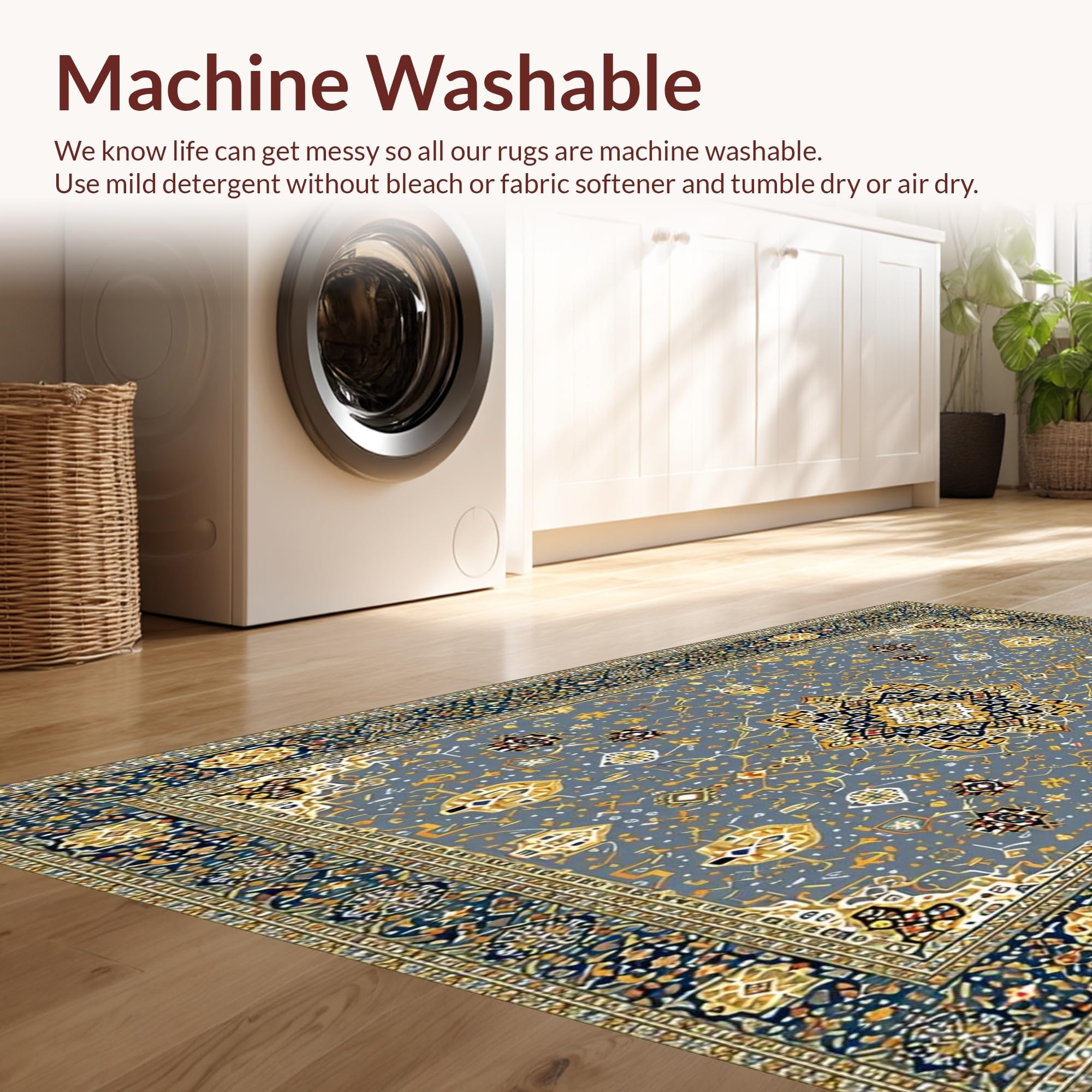 - Machine Washable: Our rugs can be easily thrown in the wash machine.
