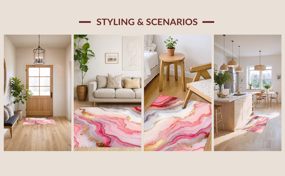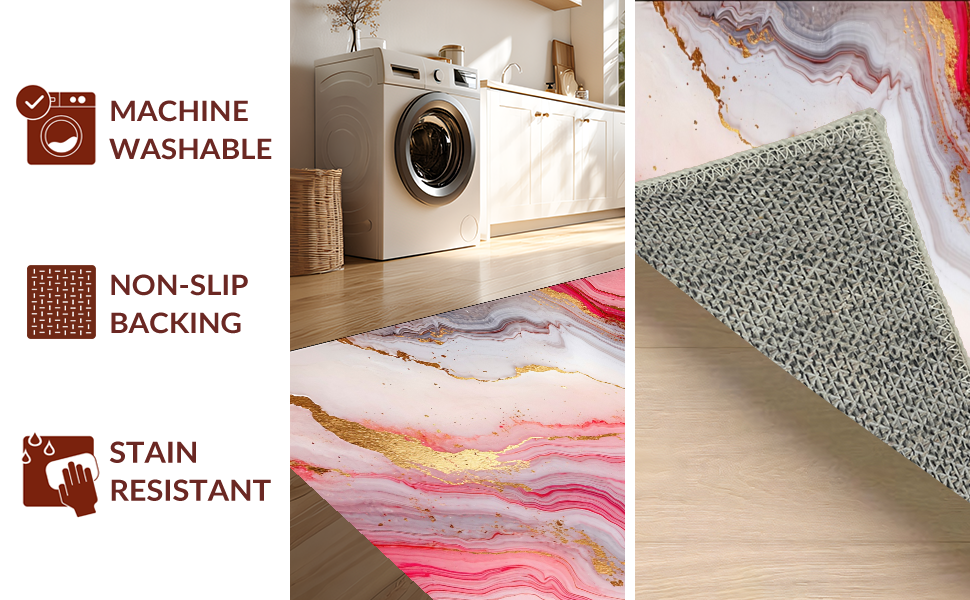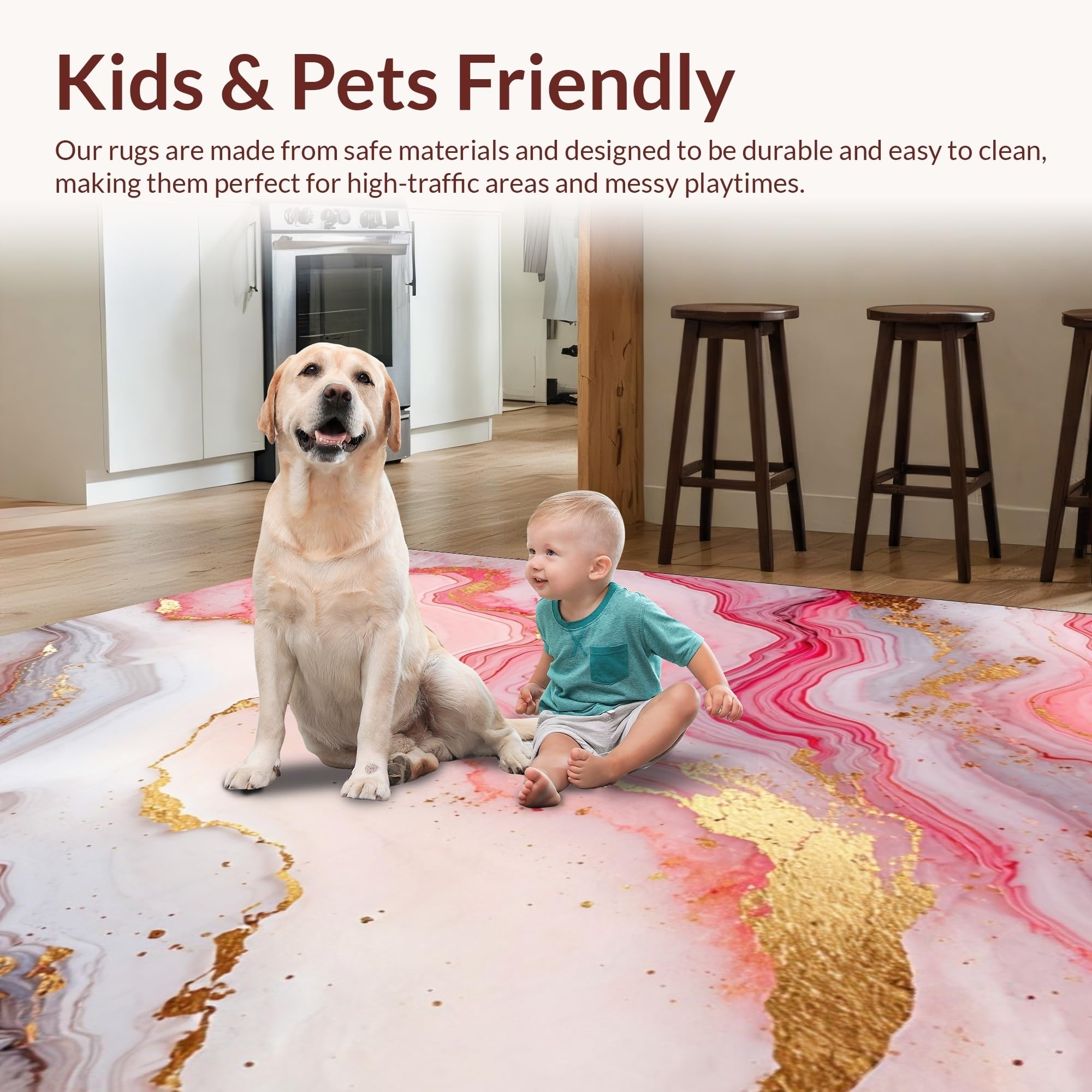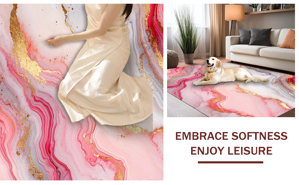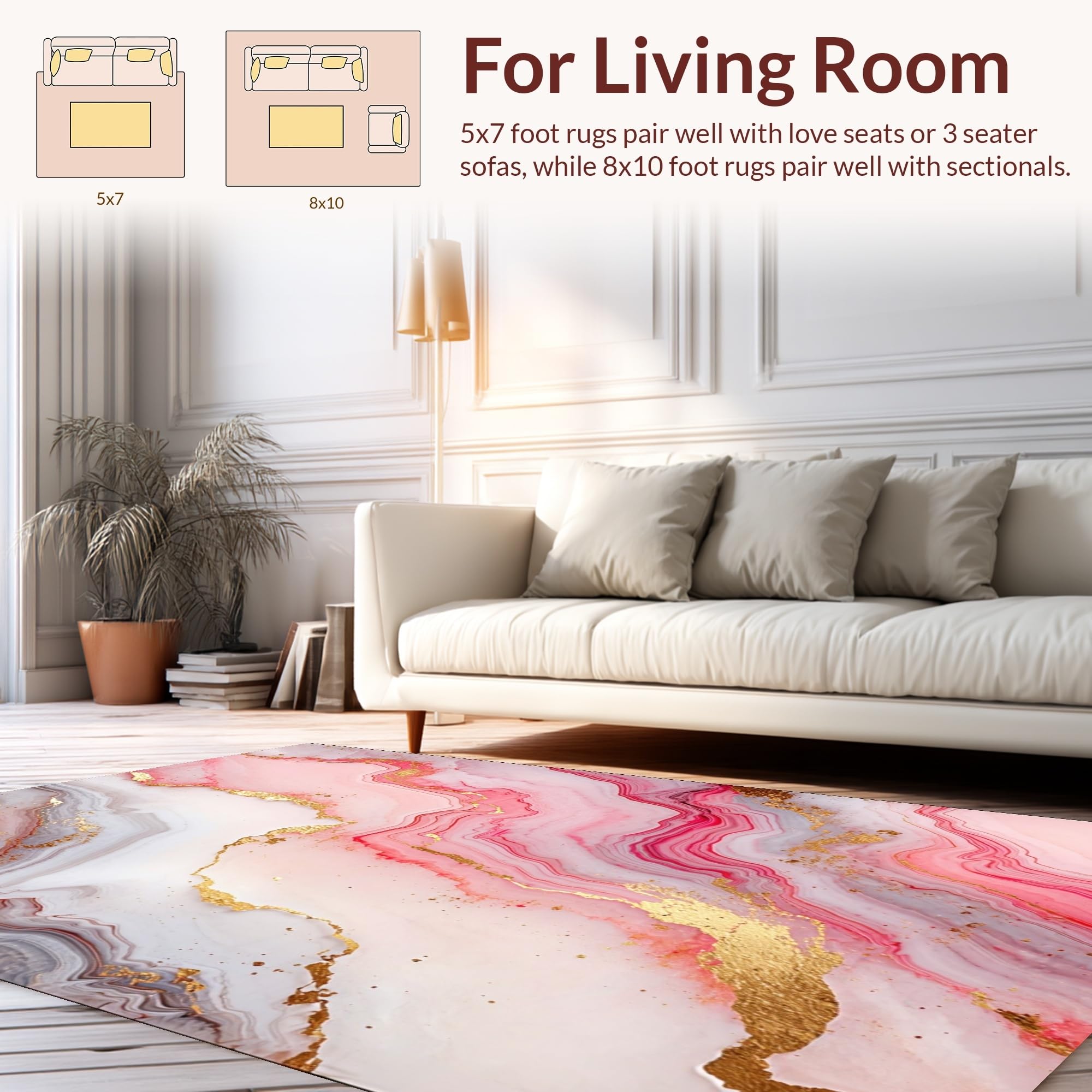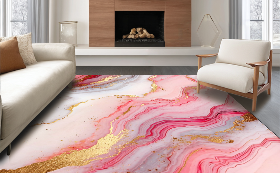 Ultra Soft Area Rug, Non Slip, Stain Resistant, Washable Area Rugs for Living Room, Bedroom, Minimalist Abstract Marble Elegance(Pink) Overview: