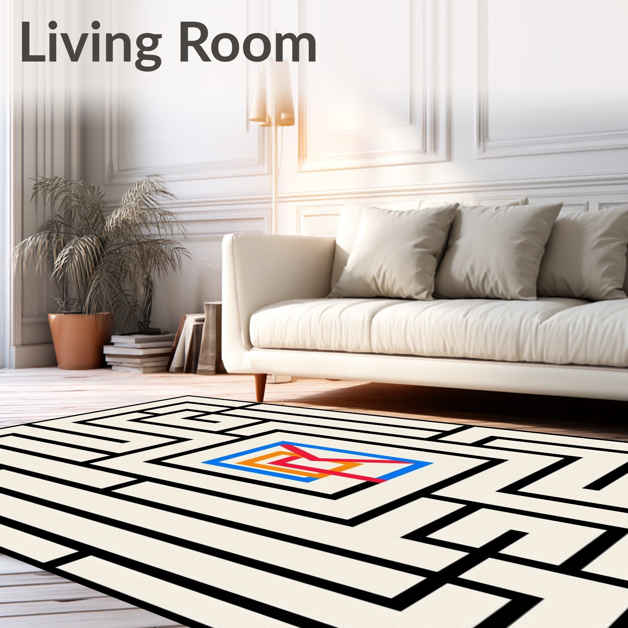 Ultra Soft Area Rug, Non Slip, Stain Resistant, Washable Area Rugs for Living Room, Bedroom, Minimalist Abstract Maze Concept(Black) Overview: