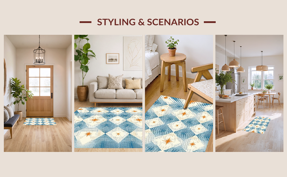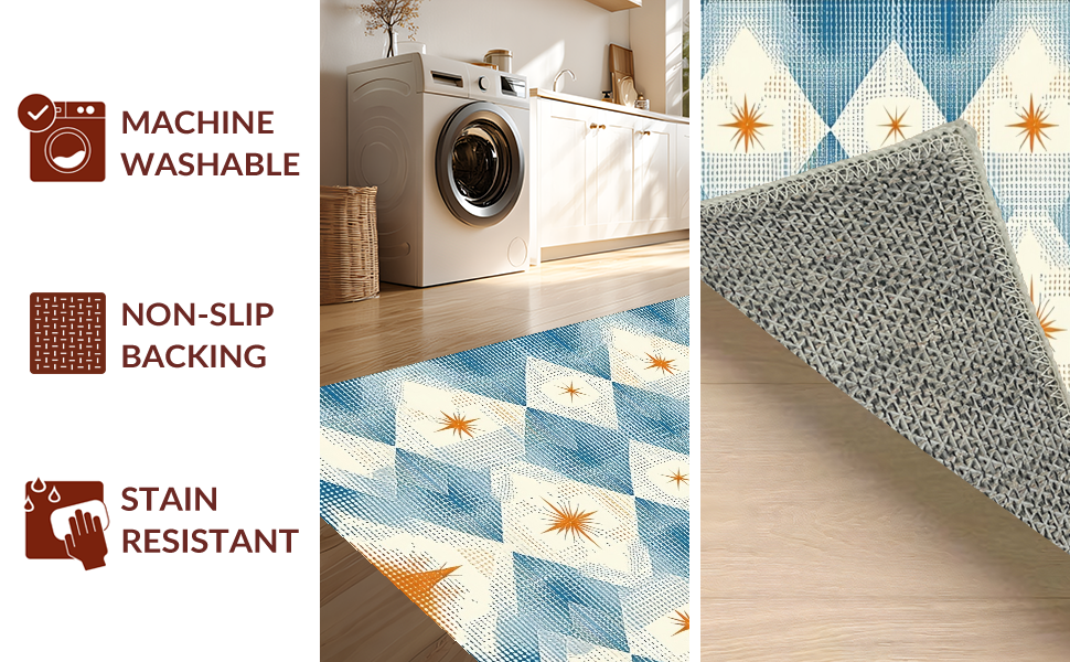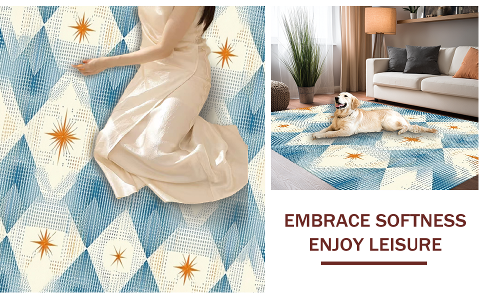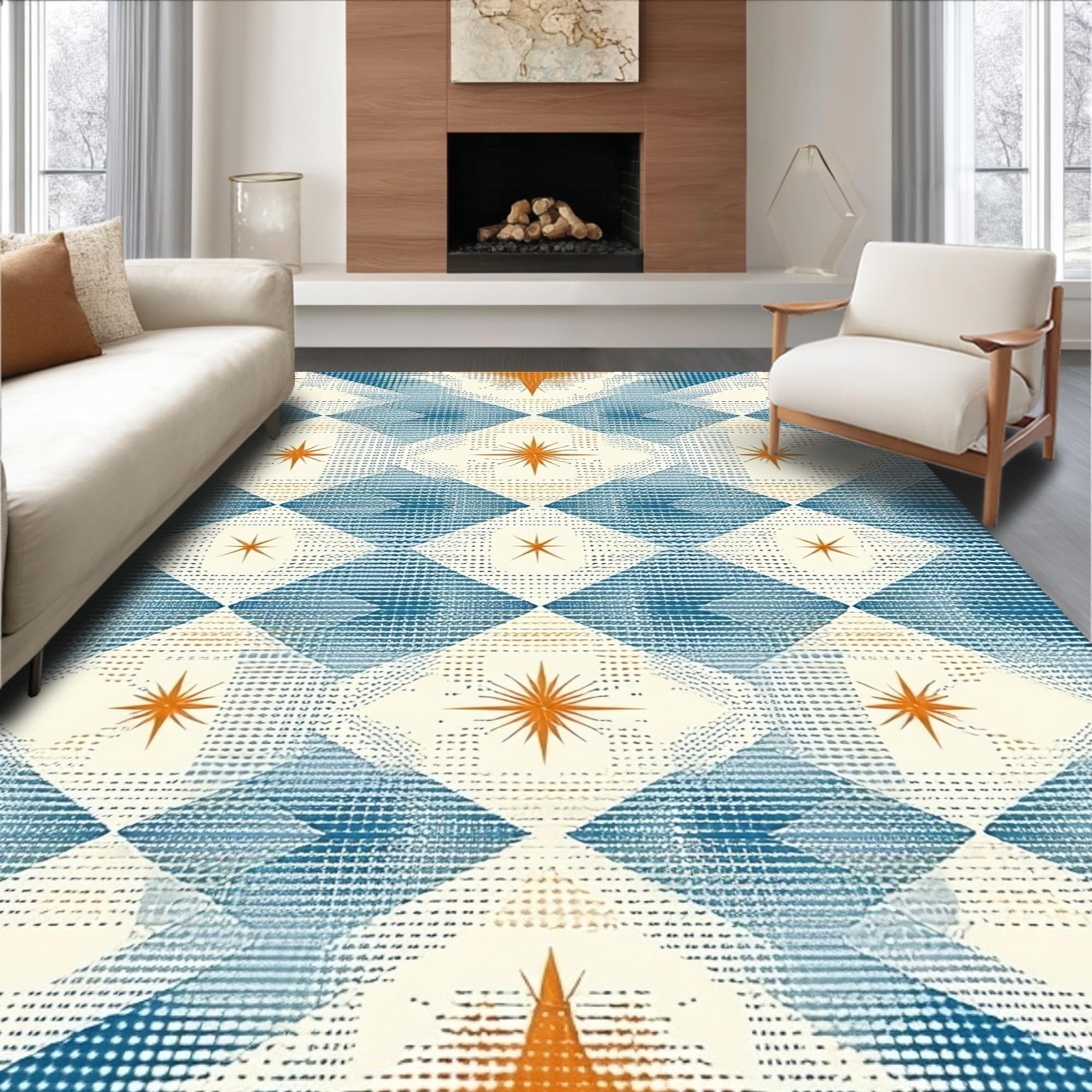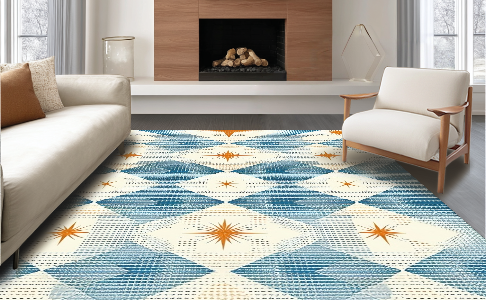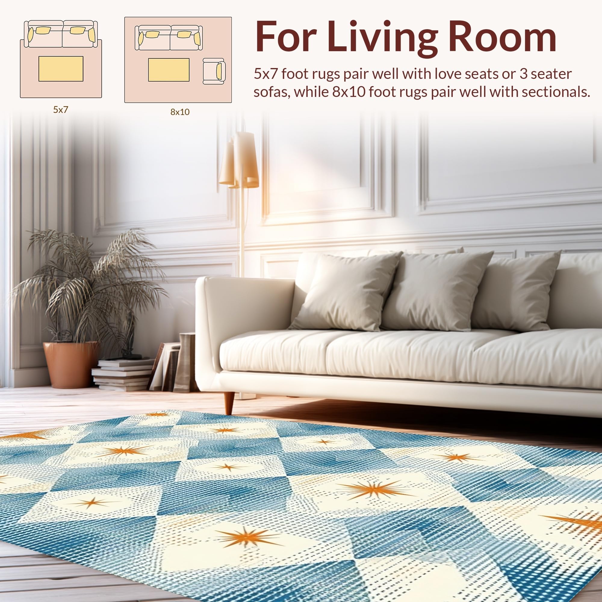 Ultra Soft Area Rug, Non Slip, Stain Resistant, Washable Area Rugs for Living Room, Bedroom, Minimalist Bright Star Graphic(Blue) Overview: