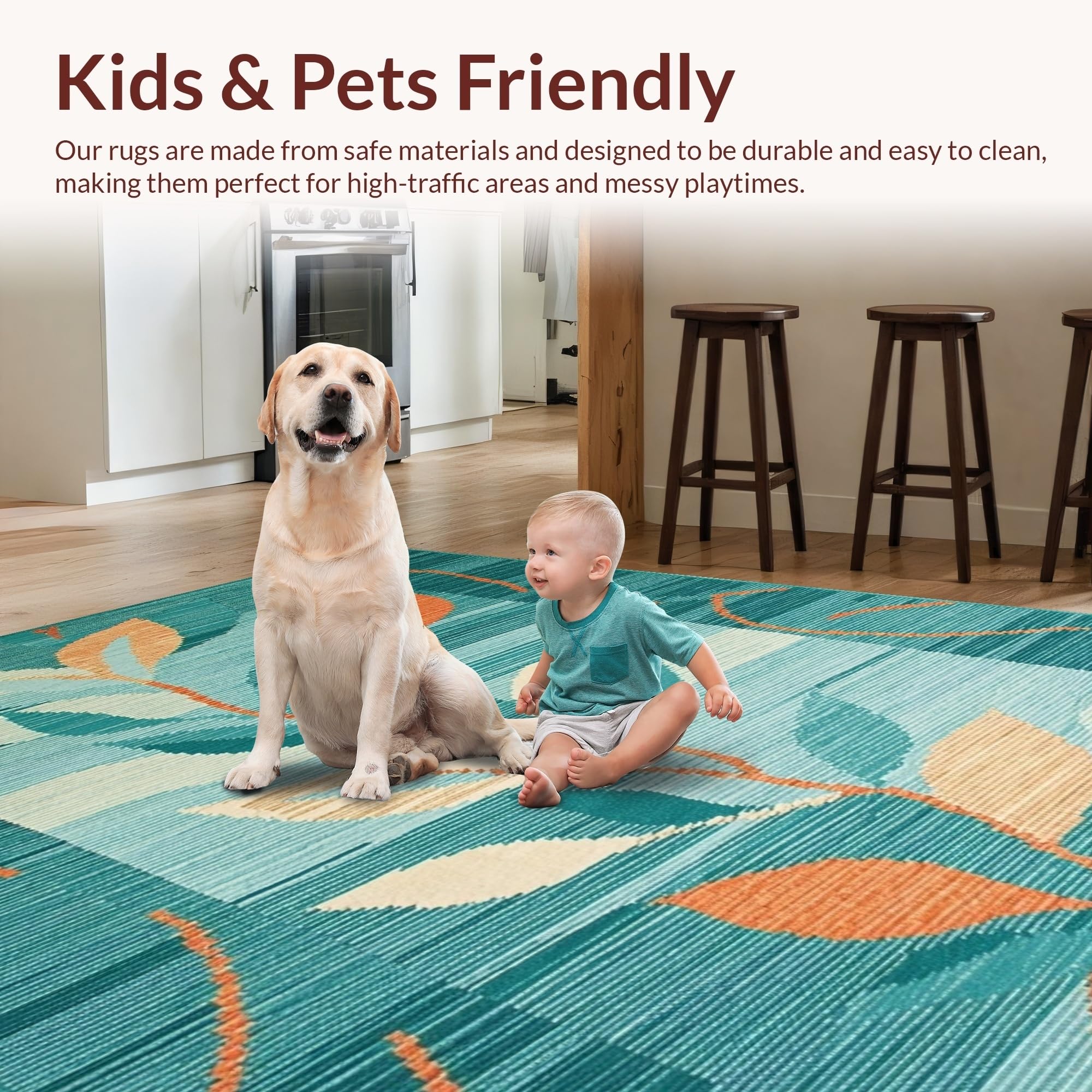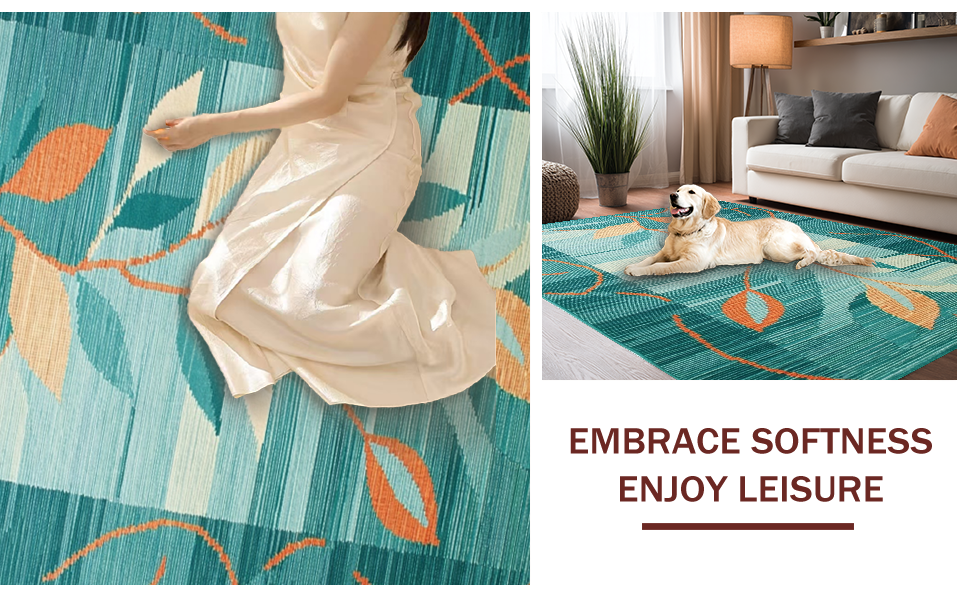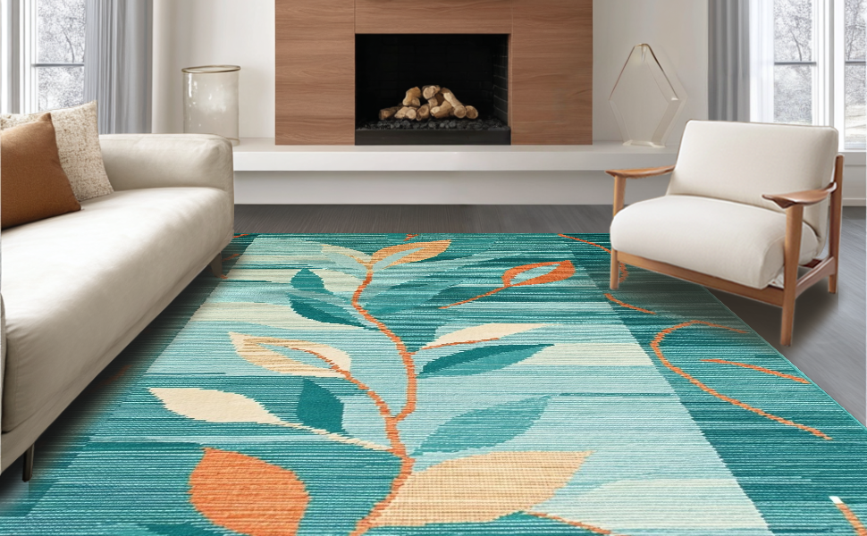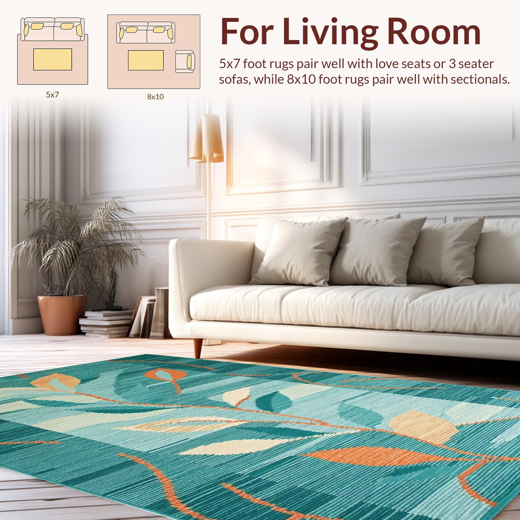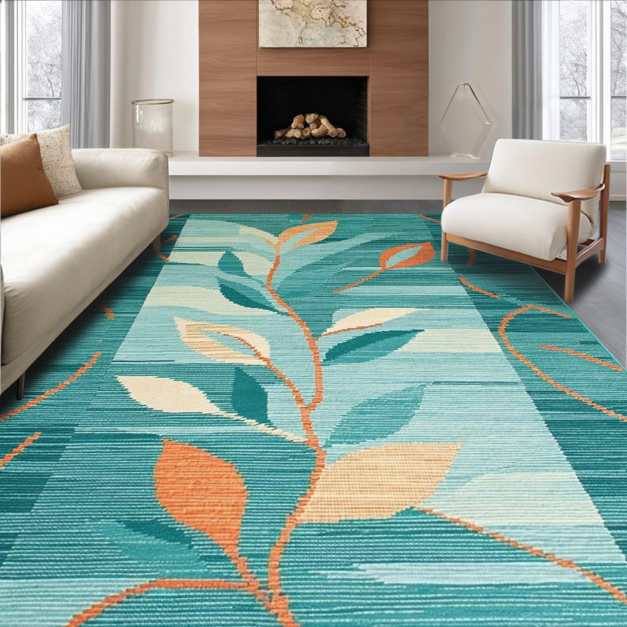 Ultra Soft Area Rug, Non Slip, Stain Resistant, Washable Area Rugs for Living Room, Bedroom, Minimalist Colorful Nature-Inspired Pattern(Blue) Overview: