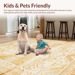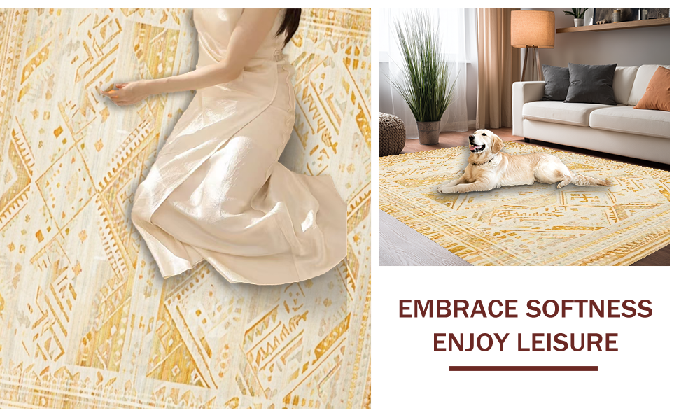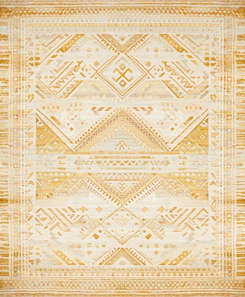 Ultra Soft Area Rug, Non Slip, Stain Resistant, Washable Area Rugs for Living Room, Bedroom, Minimalist Cream Colored Diamond Layout(Gold) Overview: