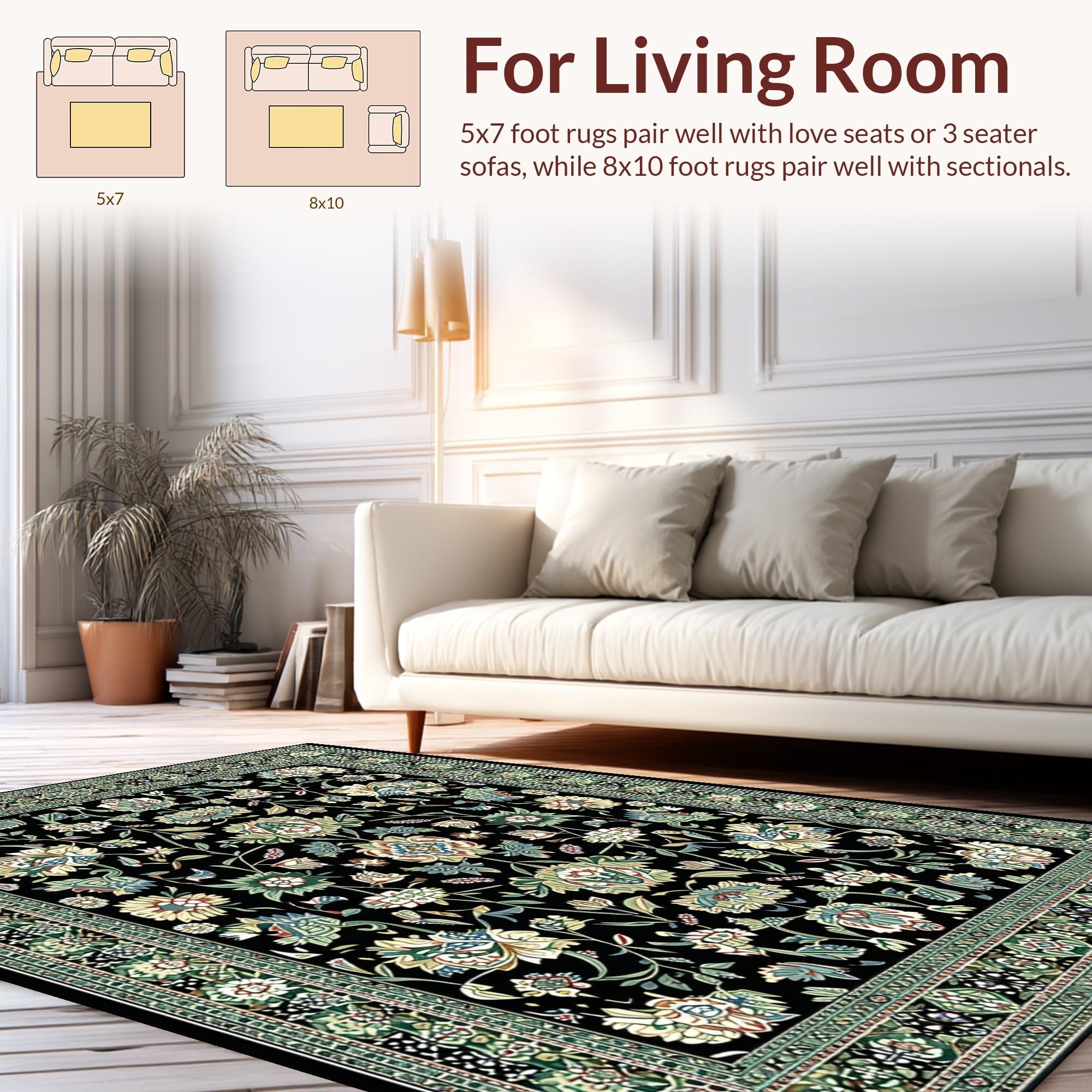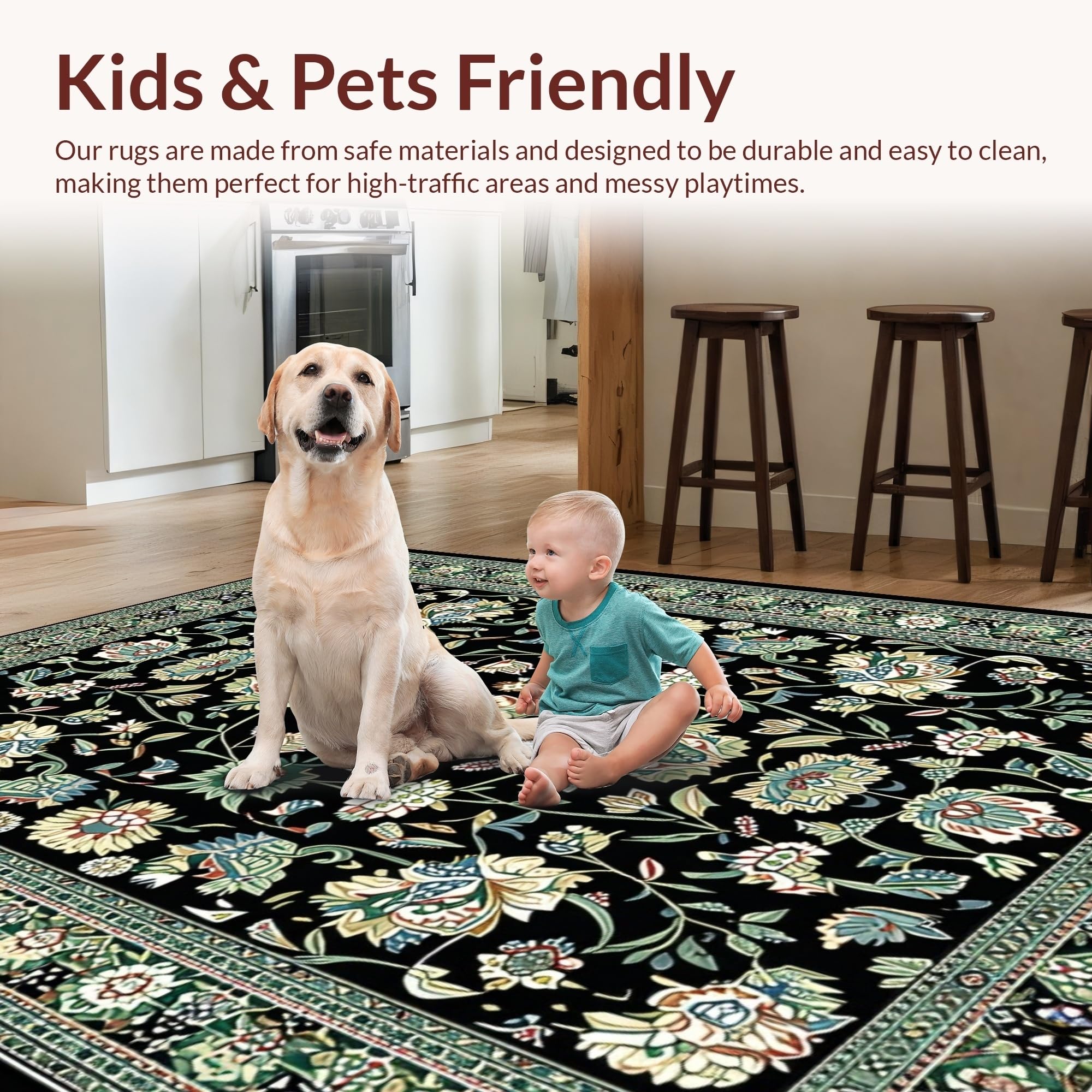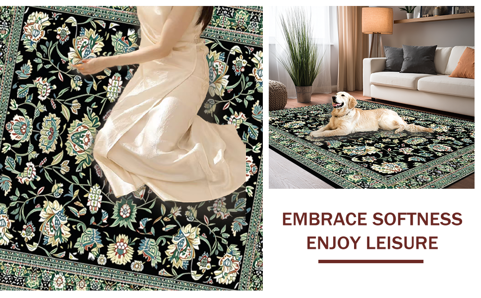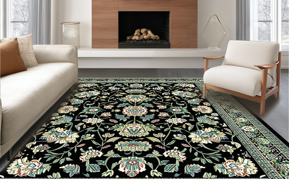 Ultra Soft Area Rug, Non Slip, Stain Resistant, Washable Area Rugs for Living Room, Bedroom, Minimalist Dark Pastel Motif(Black) Overview: