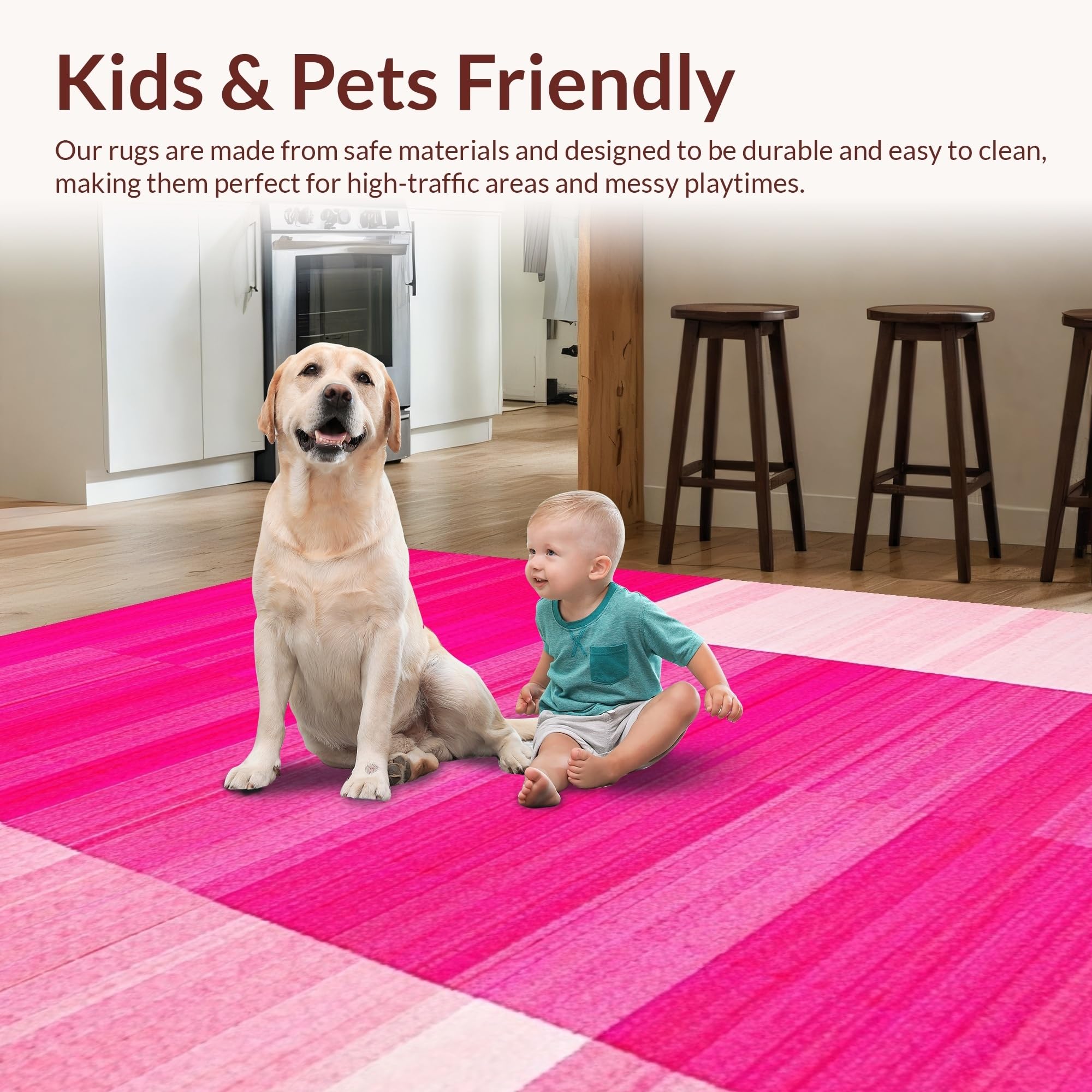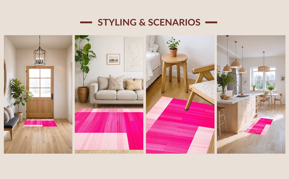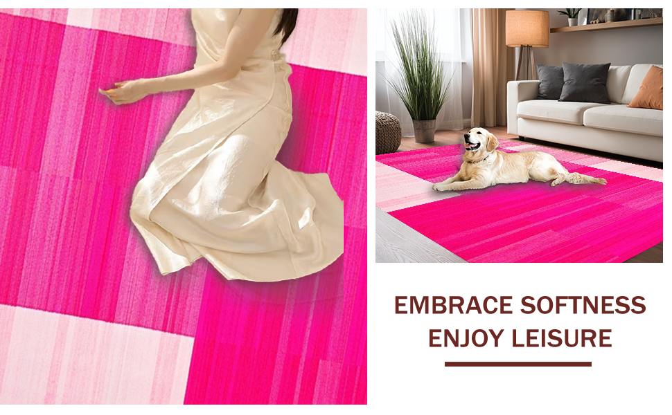 Ultra Soft Area Rug, Non Slip, Stain Resistant, Washable Area Rugs for Living Room, Bedroom, Minimalist Elegant Blush Motif(Pink) Overview: