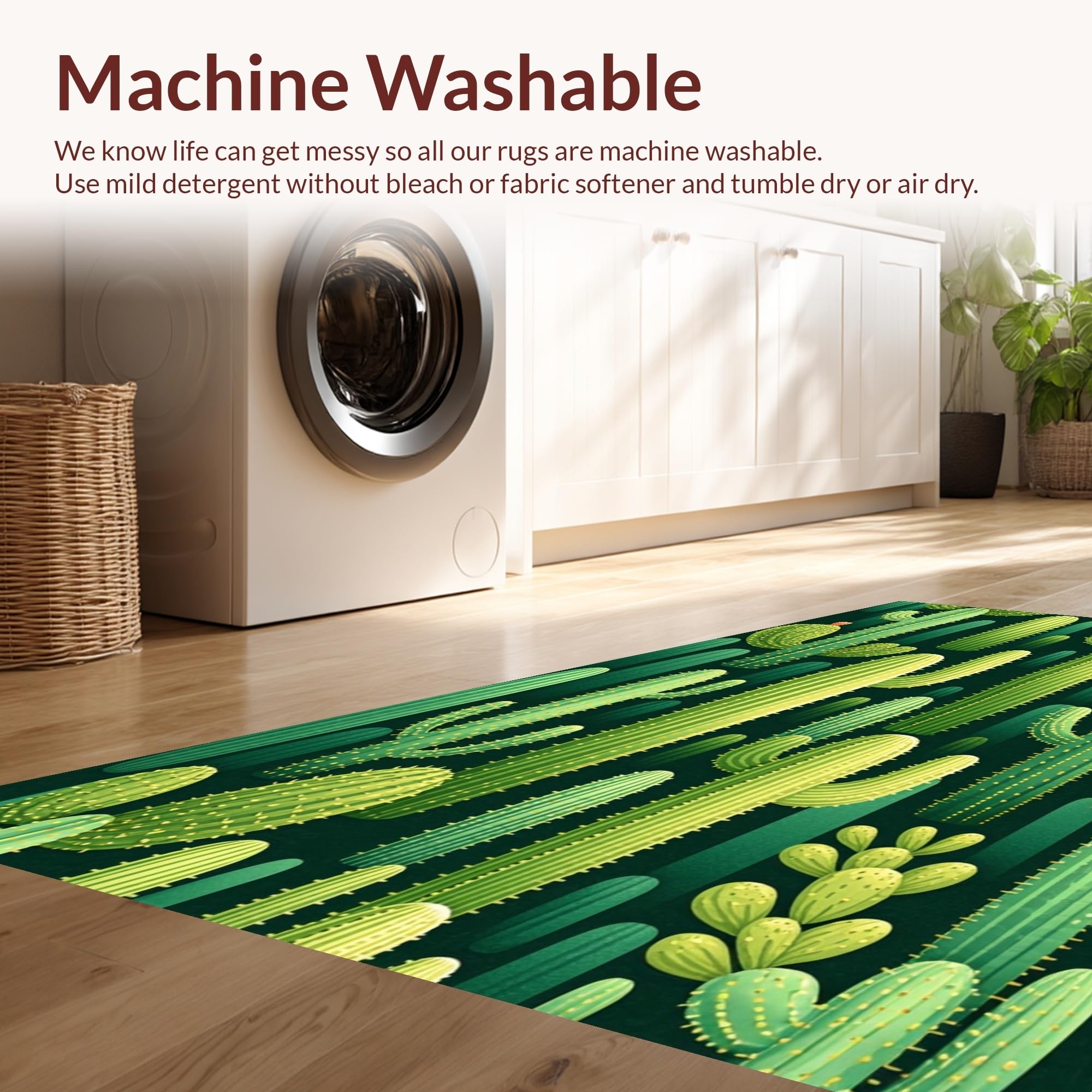 - Machine Washable: Our rugs can be easily thrown in the wash machine.