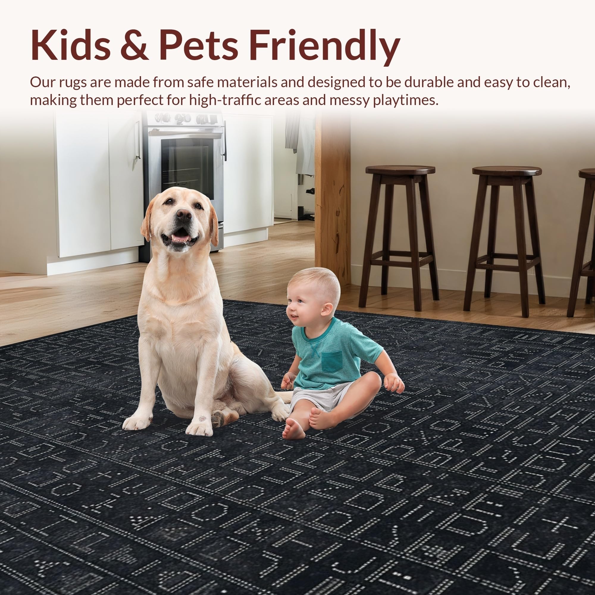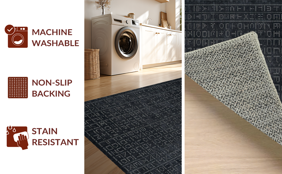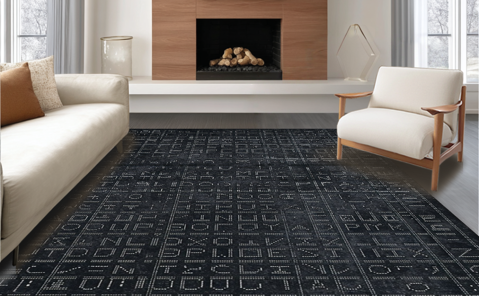 Ultra Soft Area Rug, Non Slip, Stain Resistant, Washable Area Rugs for Living Room, Bedroom, Minimalist Geometric ABC Learning Canvas(Black) Overview: