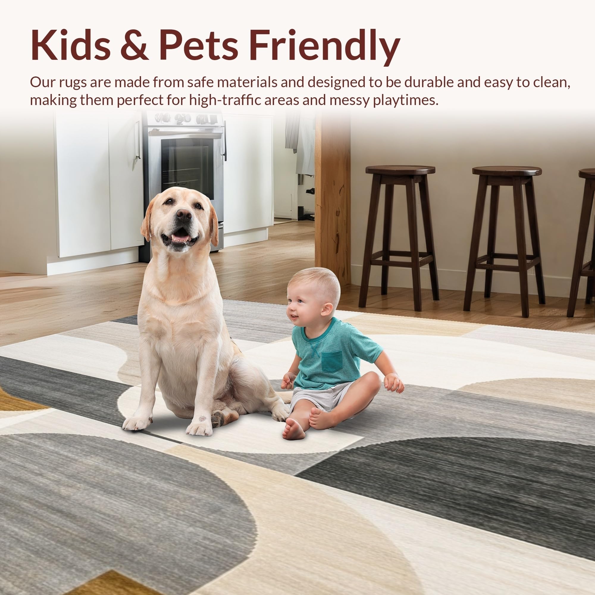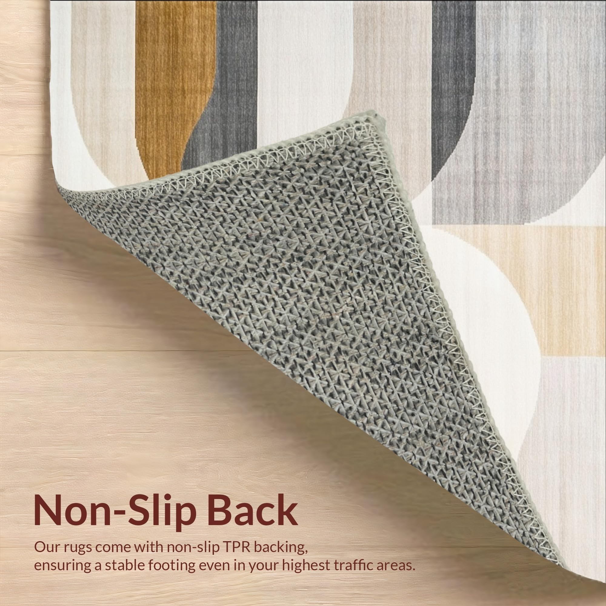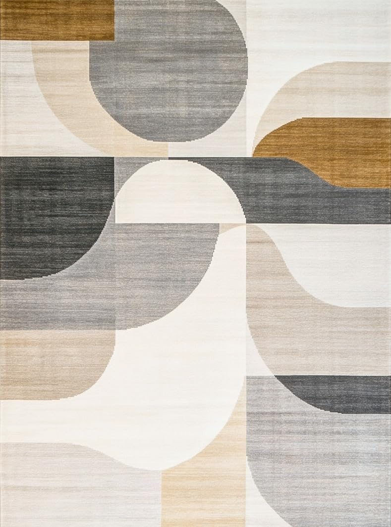 Ultra Soft Area Rug, Non Slip, Stain Resistant, Washable Area Rugs for Living Room, Bedroom, Minimalist Geometric Area in Deep Beige and Gray Color Palette(Beige) Overview:
