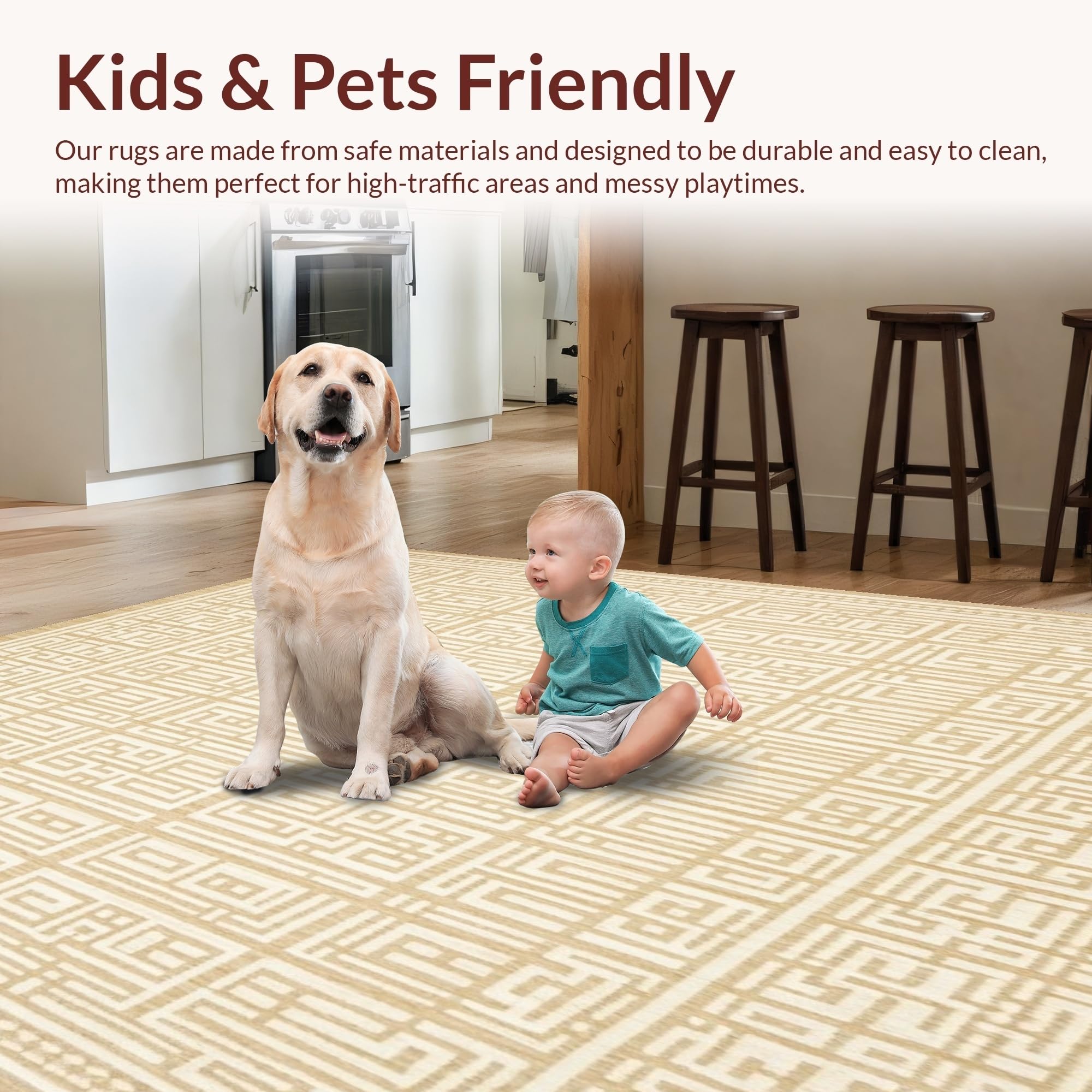 Ultra Soft Area Rug, Non Slip, Stain Resistant, Washable Area Rugs for Living Room, Bedroom, Minimalist Geometric Area Simple Lines(Beige) Overview: