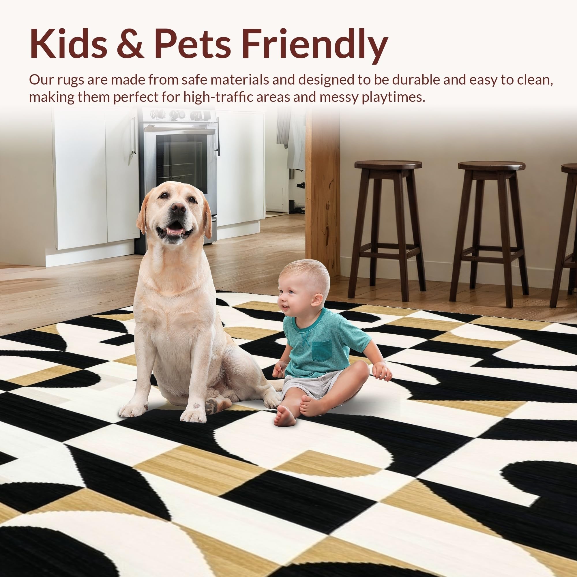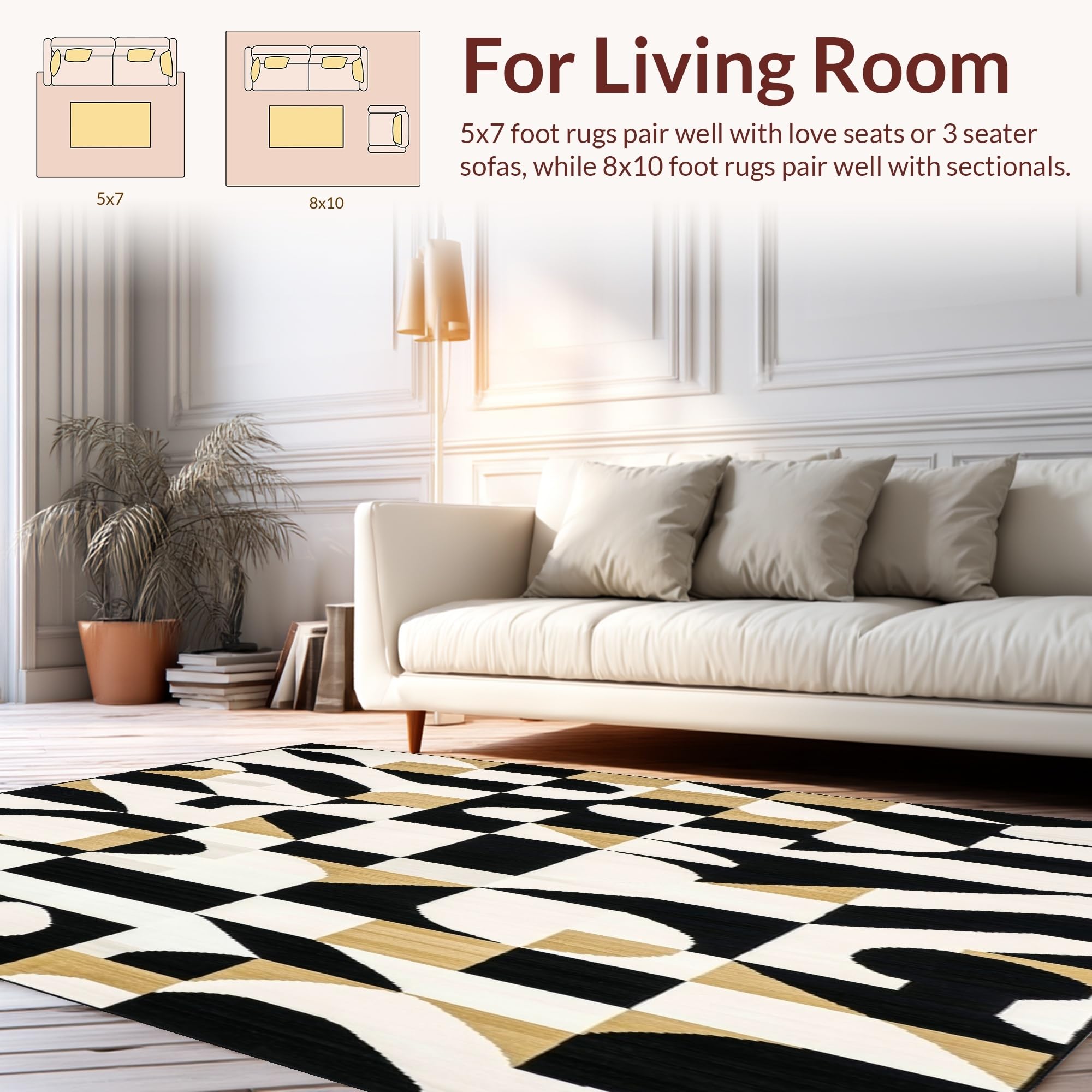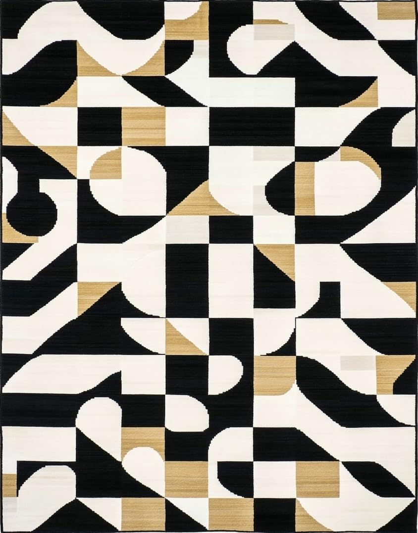 Ultra Soft Area Rug, Non Slip, Stain Resistant, Washable Area Rugs for Living Room, Bedroom, Minimalist Geometric Black White Beige Bathroom Area(Black) Overview: