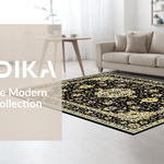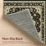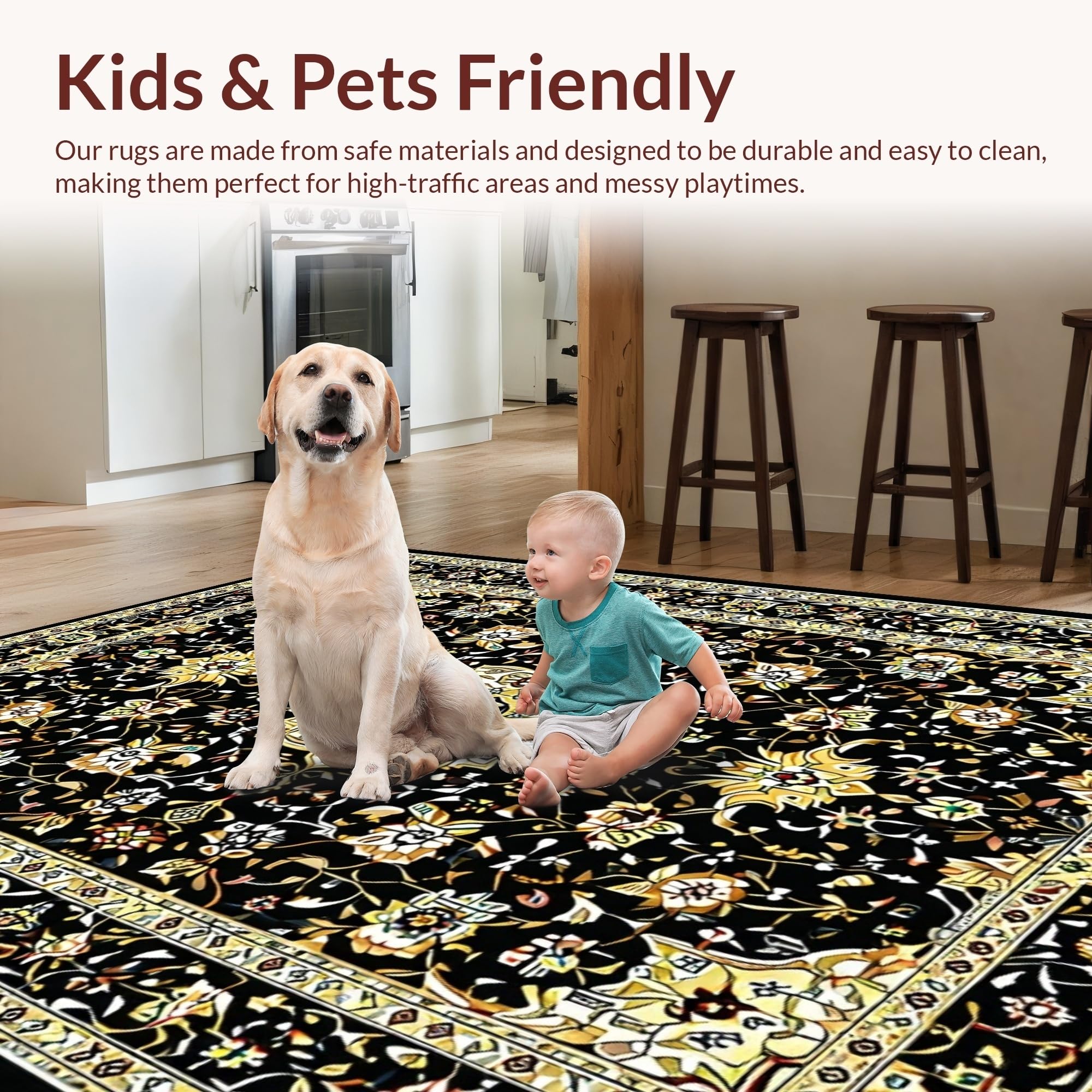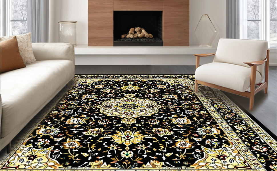 Ultra Soft Area Rug, Non Slip, Stain Resistant, Washable Area Rugs for Living Room, Bedroom, Minimalist Gold Floral Accents(Black) Overview: