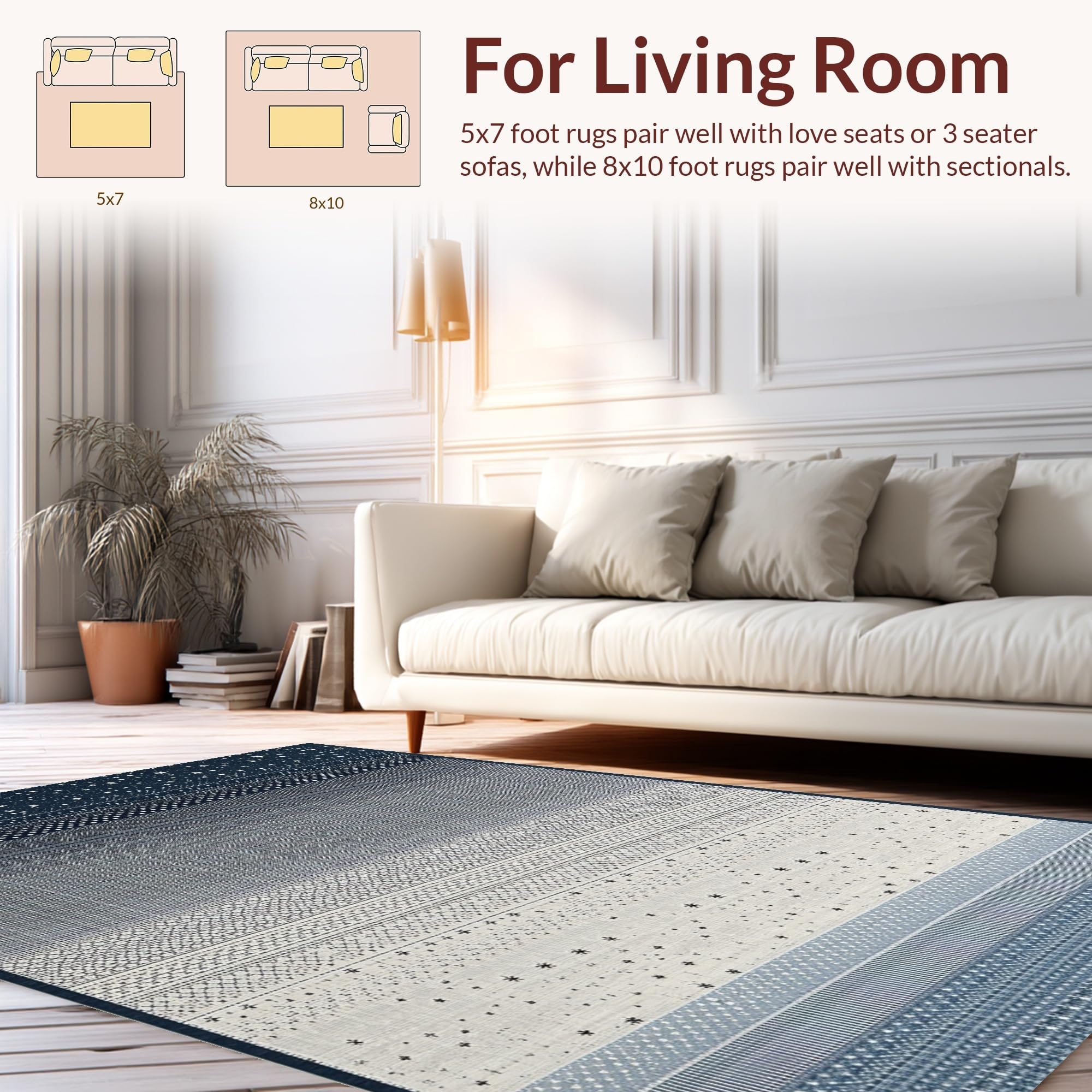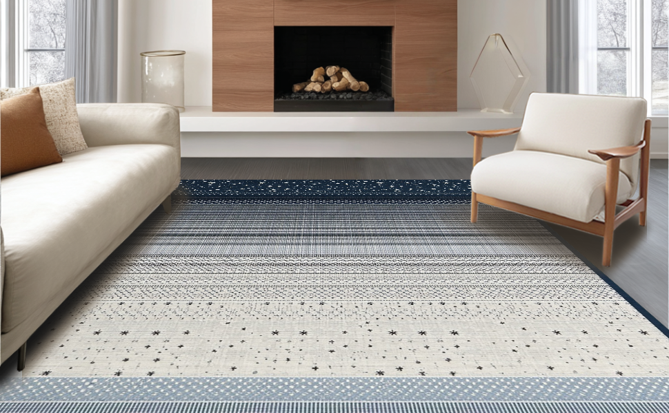 Ultra Soft Area Rug, Non Slip, Stain Resistant, Washable Area Rugs for Living Room, Bedroom, Minimalist Grey Stardust Inspiration(Blue) Overview: