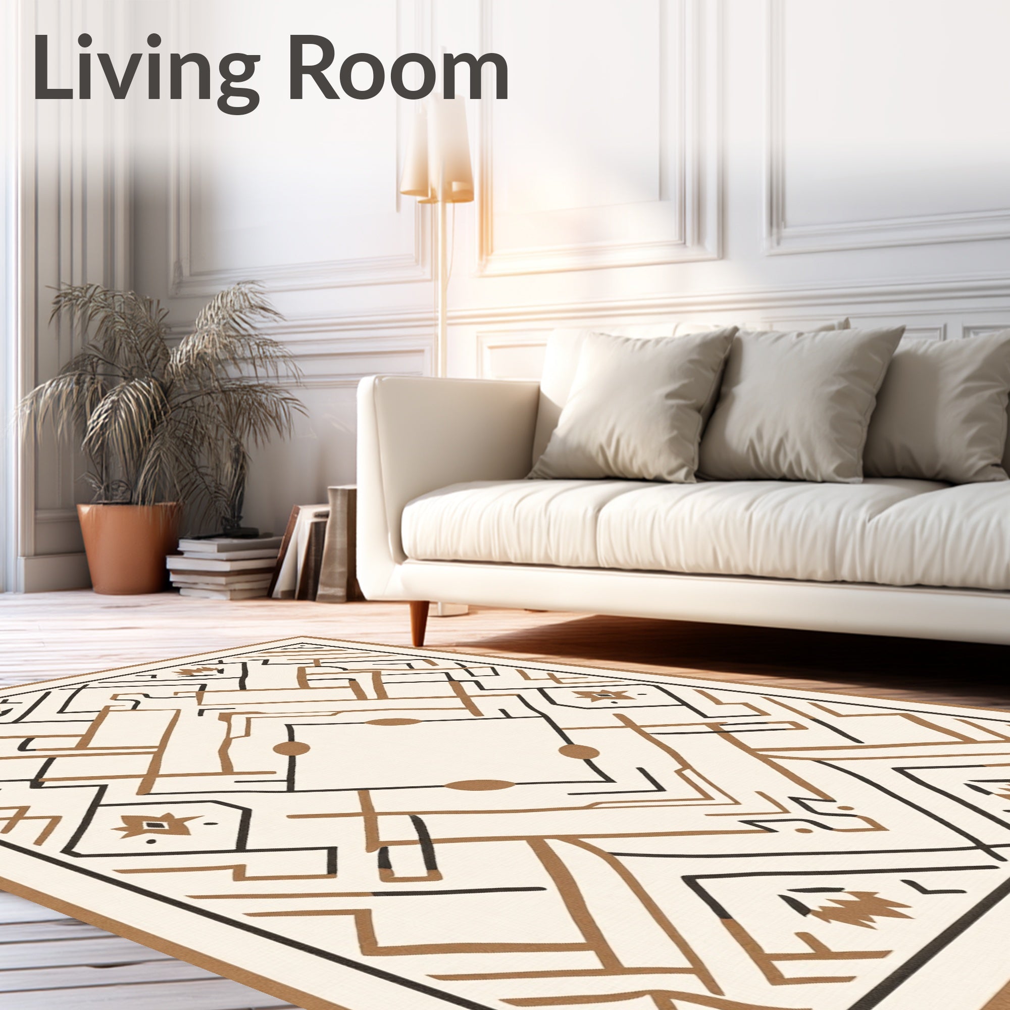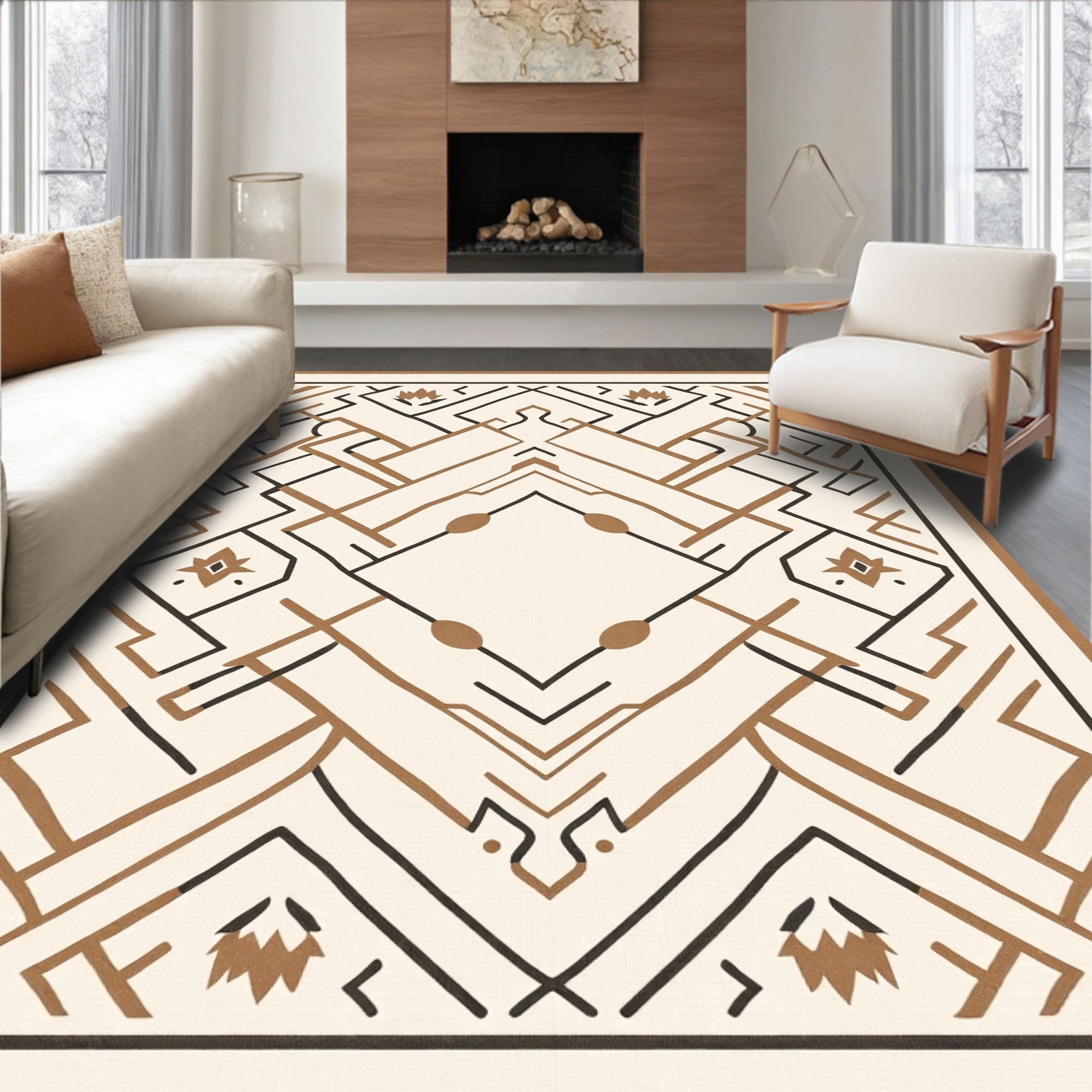 Ultra Soft Area Rug, Non Slip, Stain Resistant, Washable Area Rugs for Living Room, Bedroom, Minimalist Lattice with Contemporary Boho Spirit(Beige) Overview: