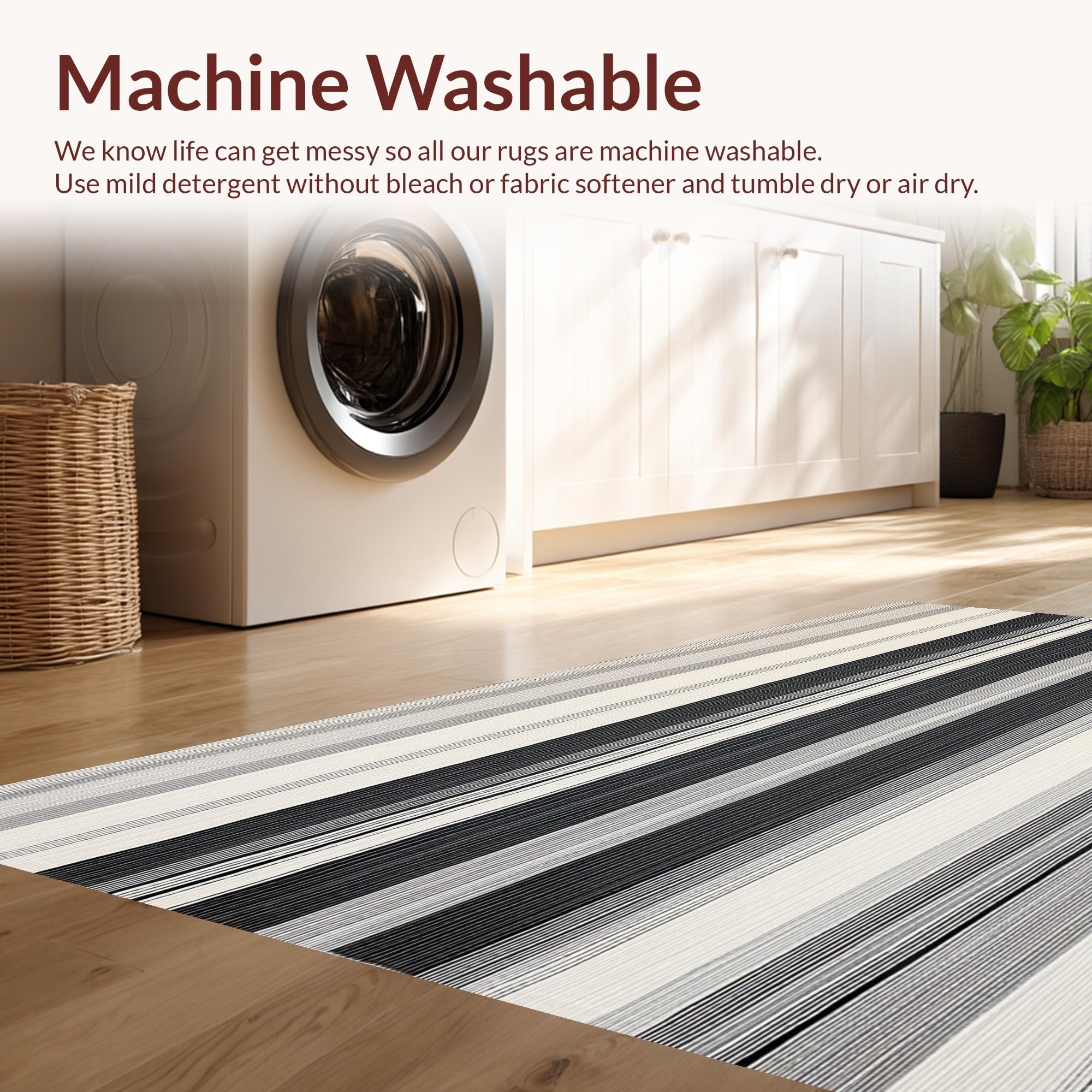 - Machine Washable: Our rugs can be easily thrown in the wash machine.