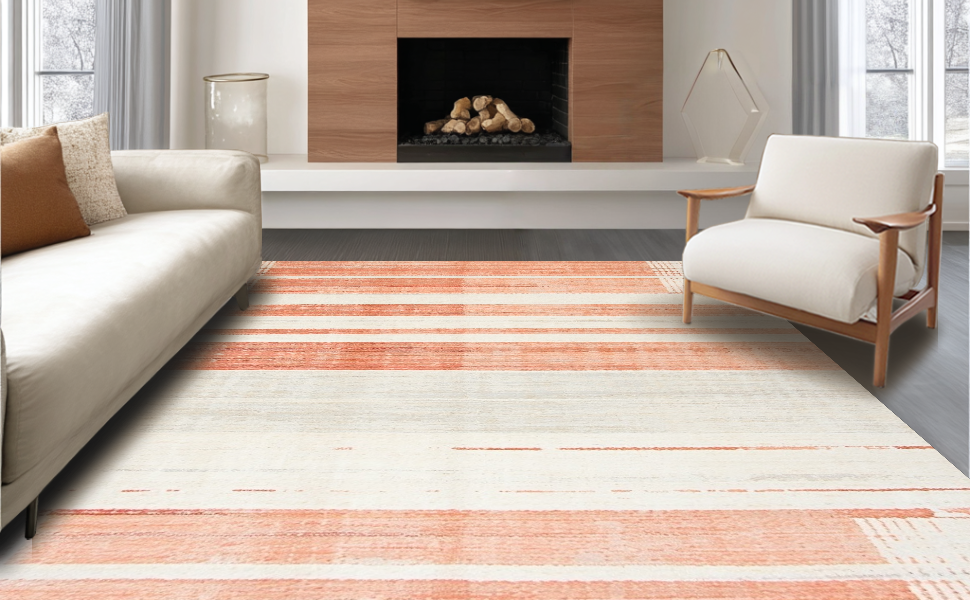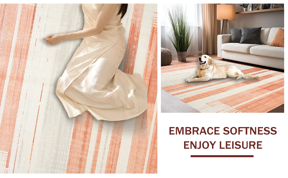 Ultra Soft Area Rug, Non Slip, Stain Resistant, Washable Area Rugs for Living Room, Bedroom, Minimalist Linear Patterned Beauty(Red) Overview:
