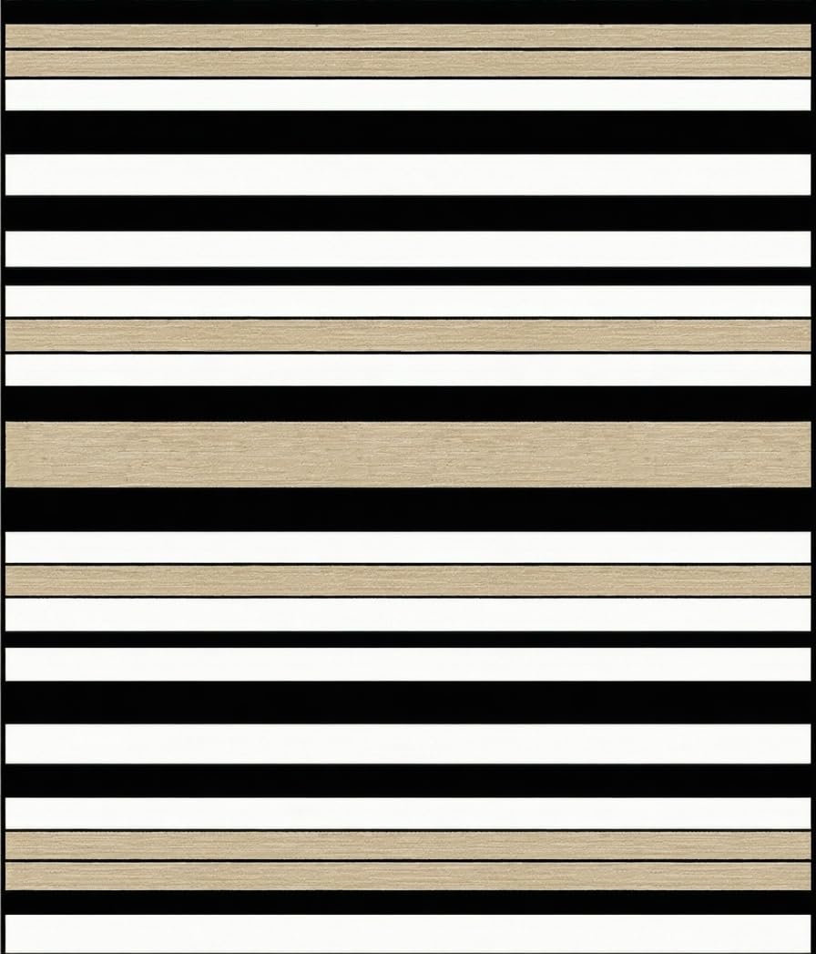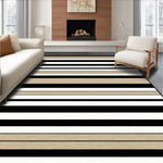 Ultra Soft Area Rug, Non Slip, Stain Resistant, Washable Area Rugs for Living Room, Bedroom, Minimalist Linear Stripe with Contrasting Black and Beige Bands(Beige) Overview: