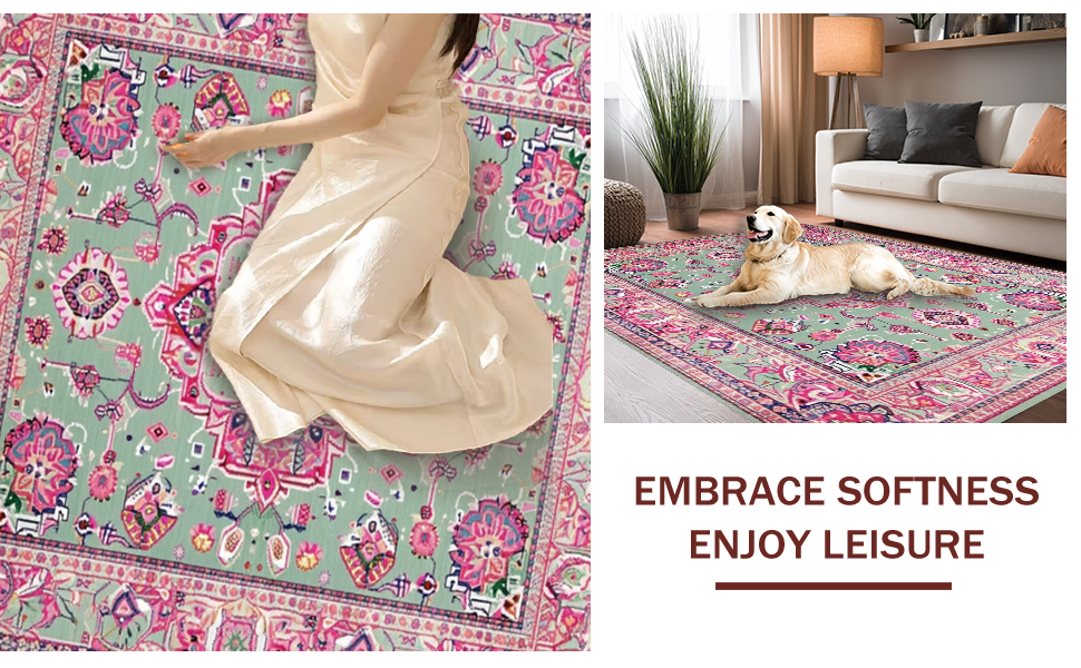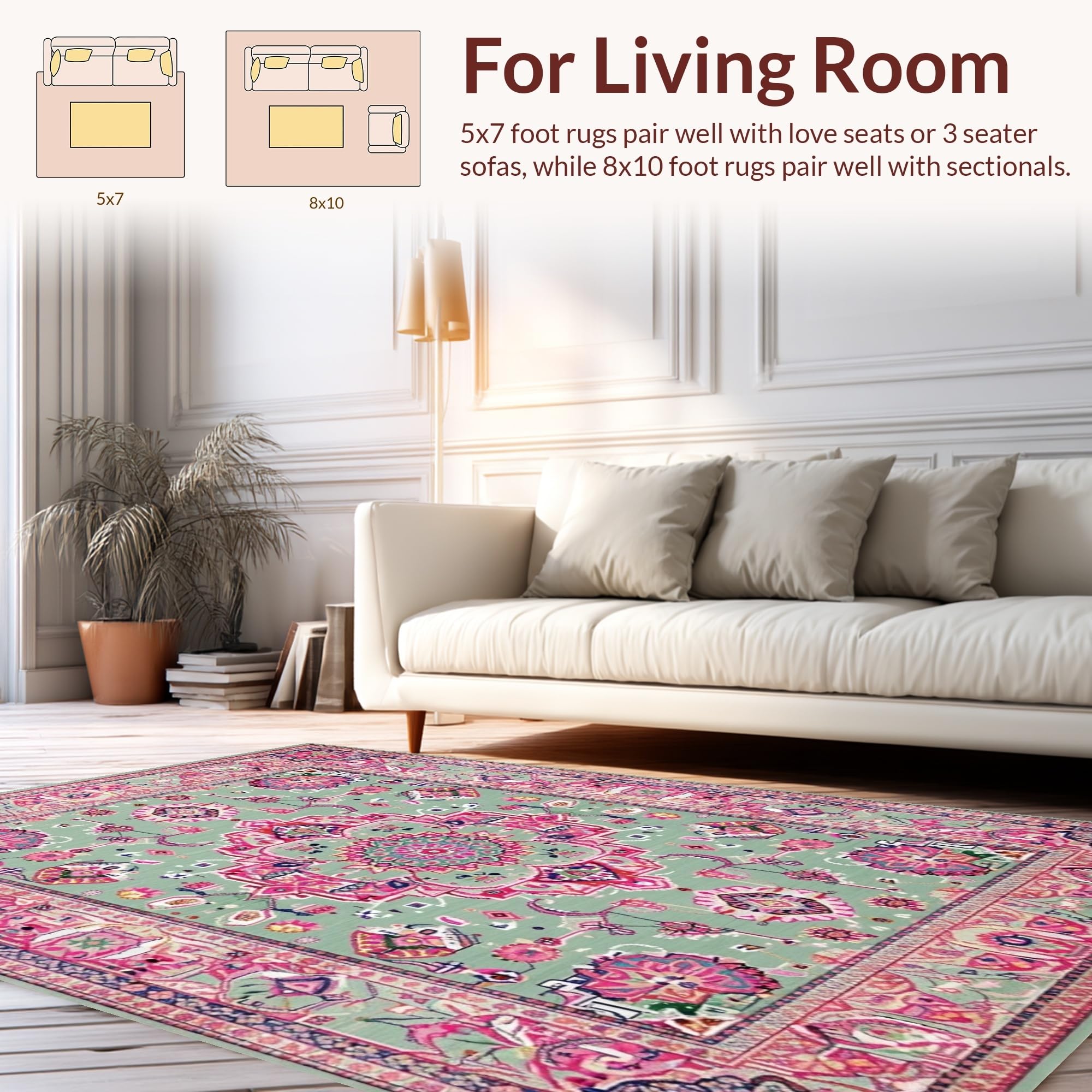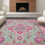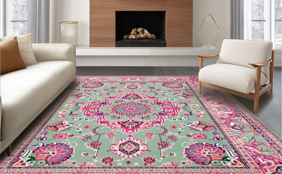 Ultra Soft Area Rug, Non Slip, Stain Resistant, Washable Area Rugs for Living Room, Bedroom, Minimalist Medallion Artistry Concept(Green) Overview: