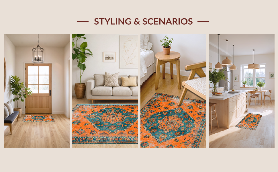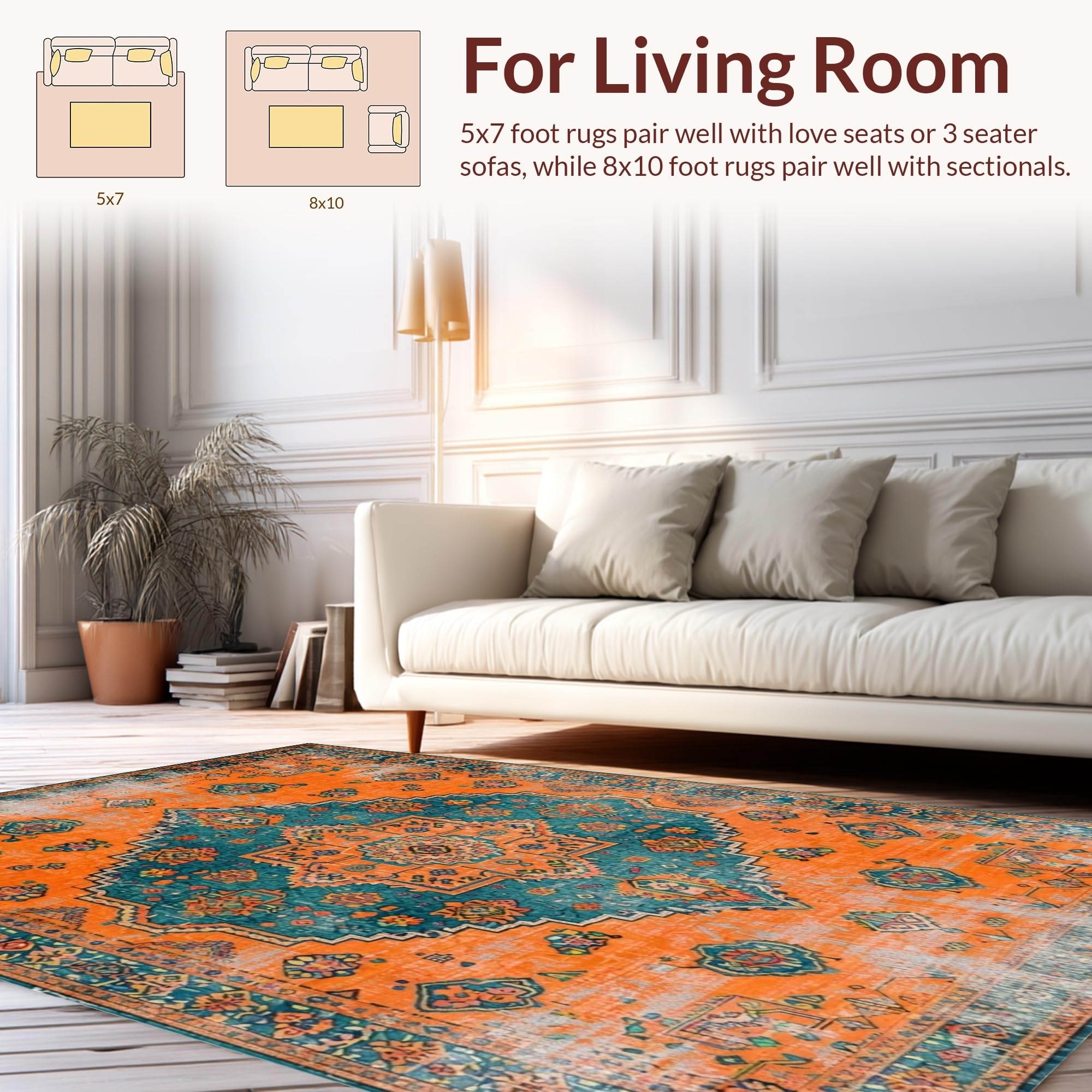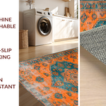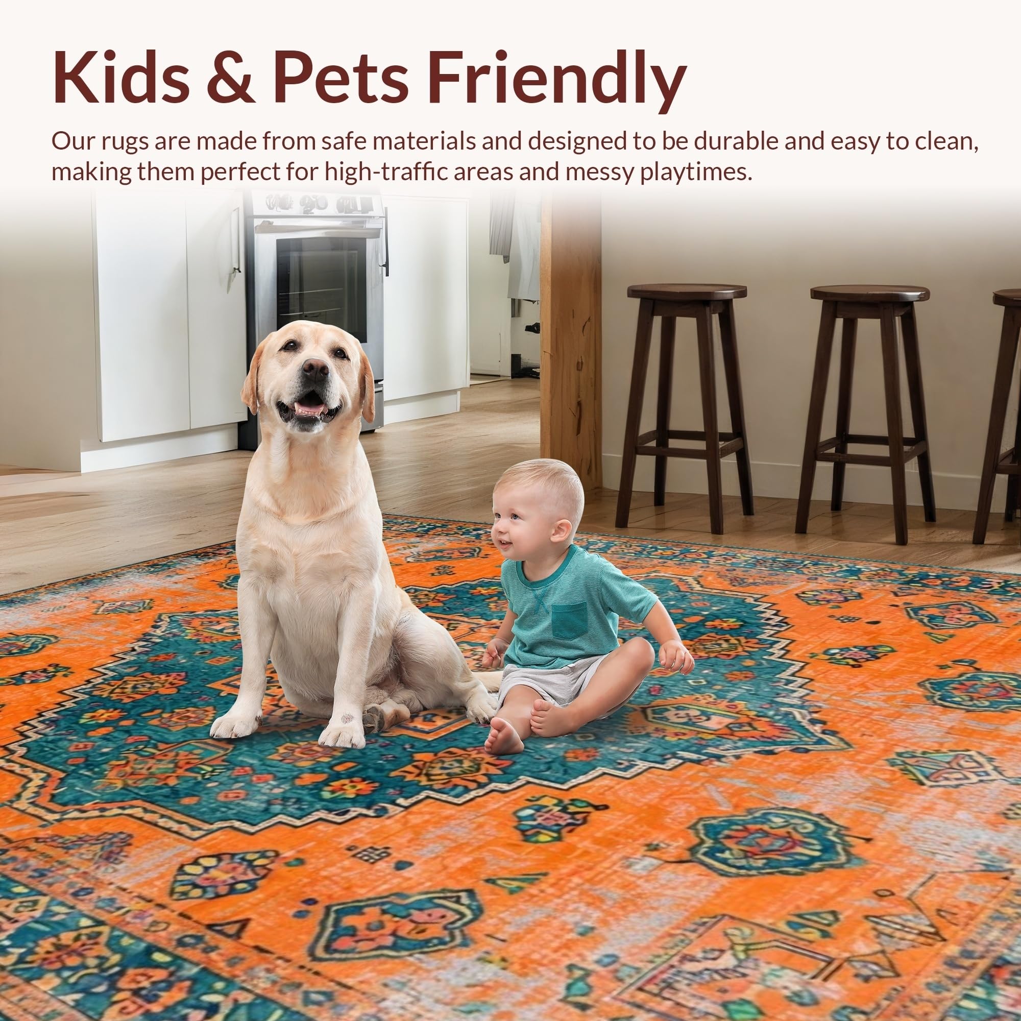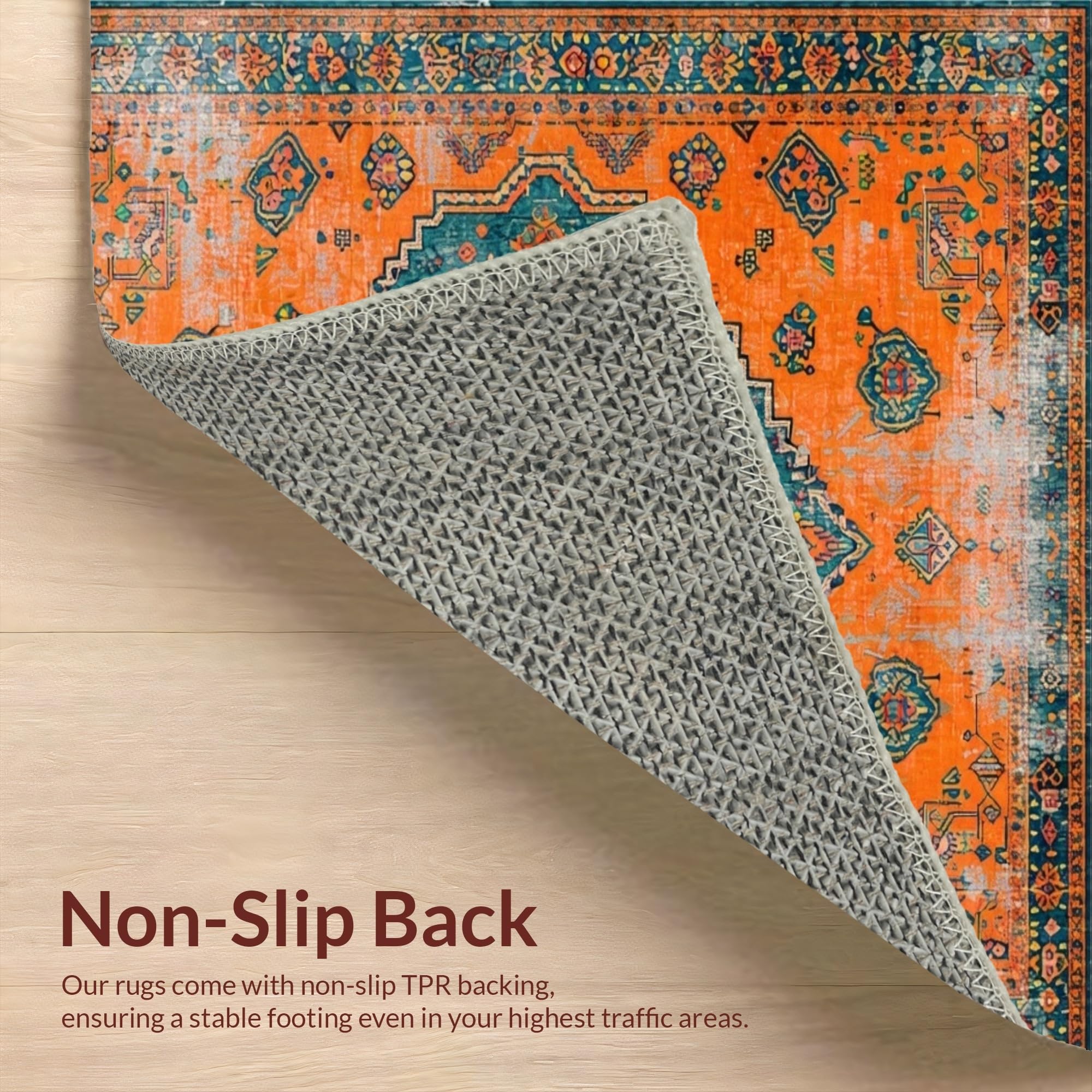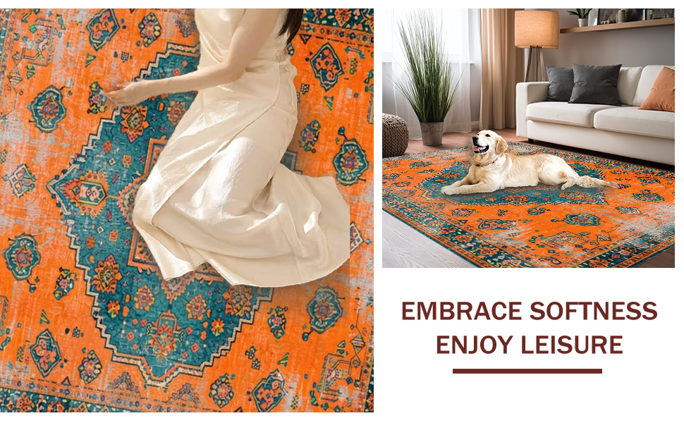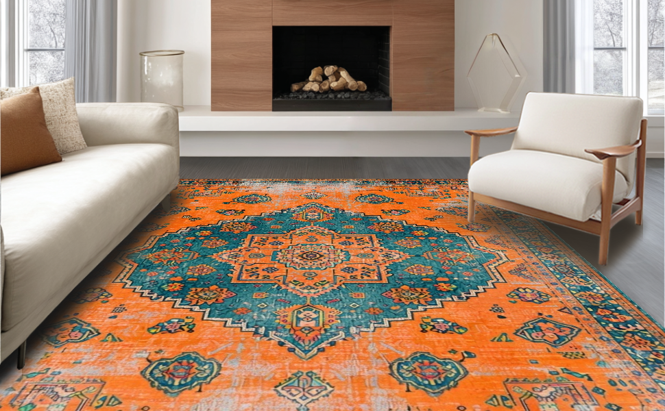 Ultra Soft Area Rug, Non Slip, Stain Resistant, Washable Area Rugs for Living Room, Bedroom, Minimalist Medallion Tiled Aesthetics(Orange) Overview: