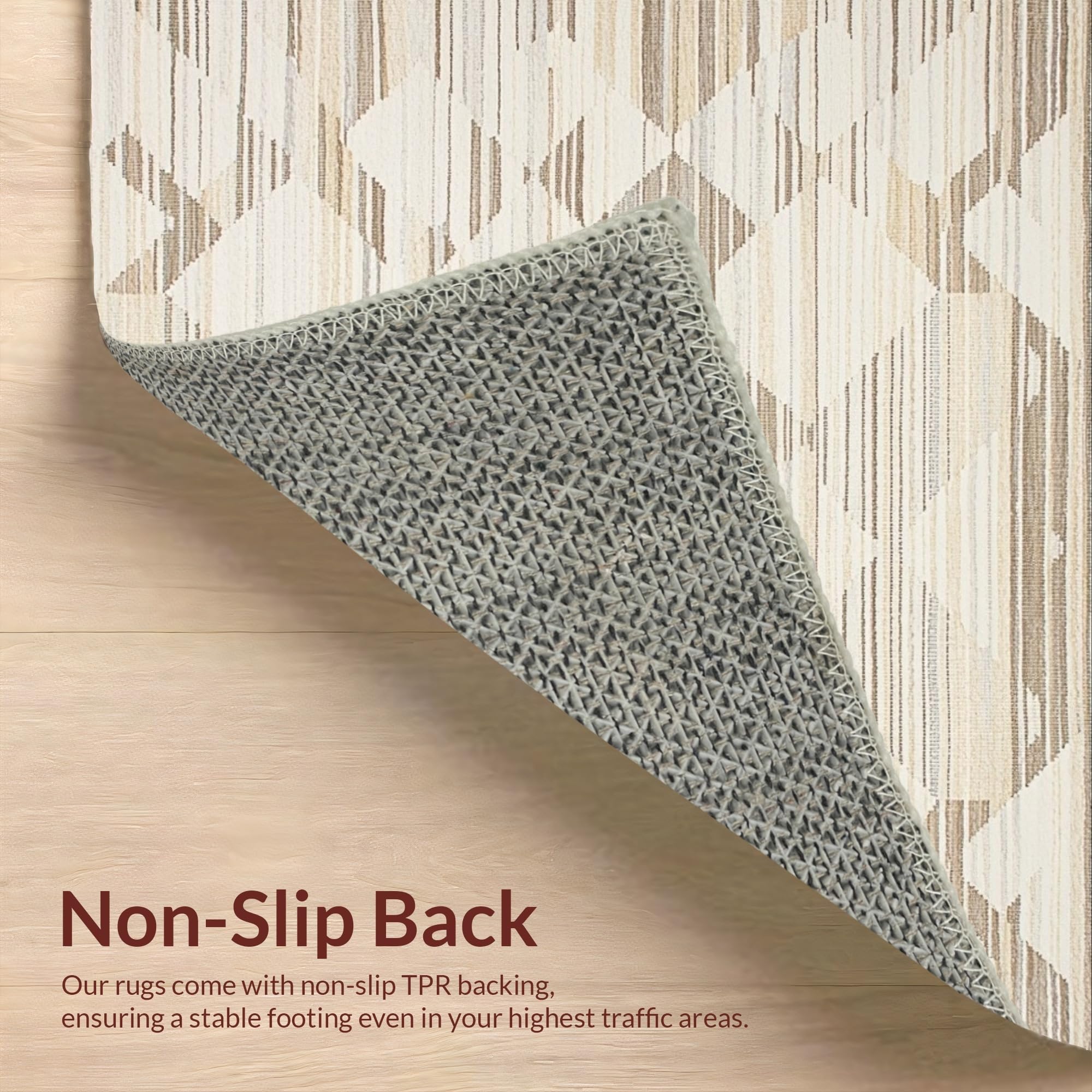 Ultra Soft Area Rug, Non Slip, Stain Resistant, Washable Area Rugs for Living Room, Bedroom, Minimalist Modern Diamond Layout(Beige) Overview: