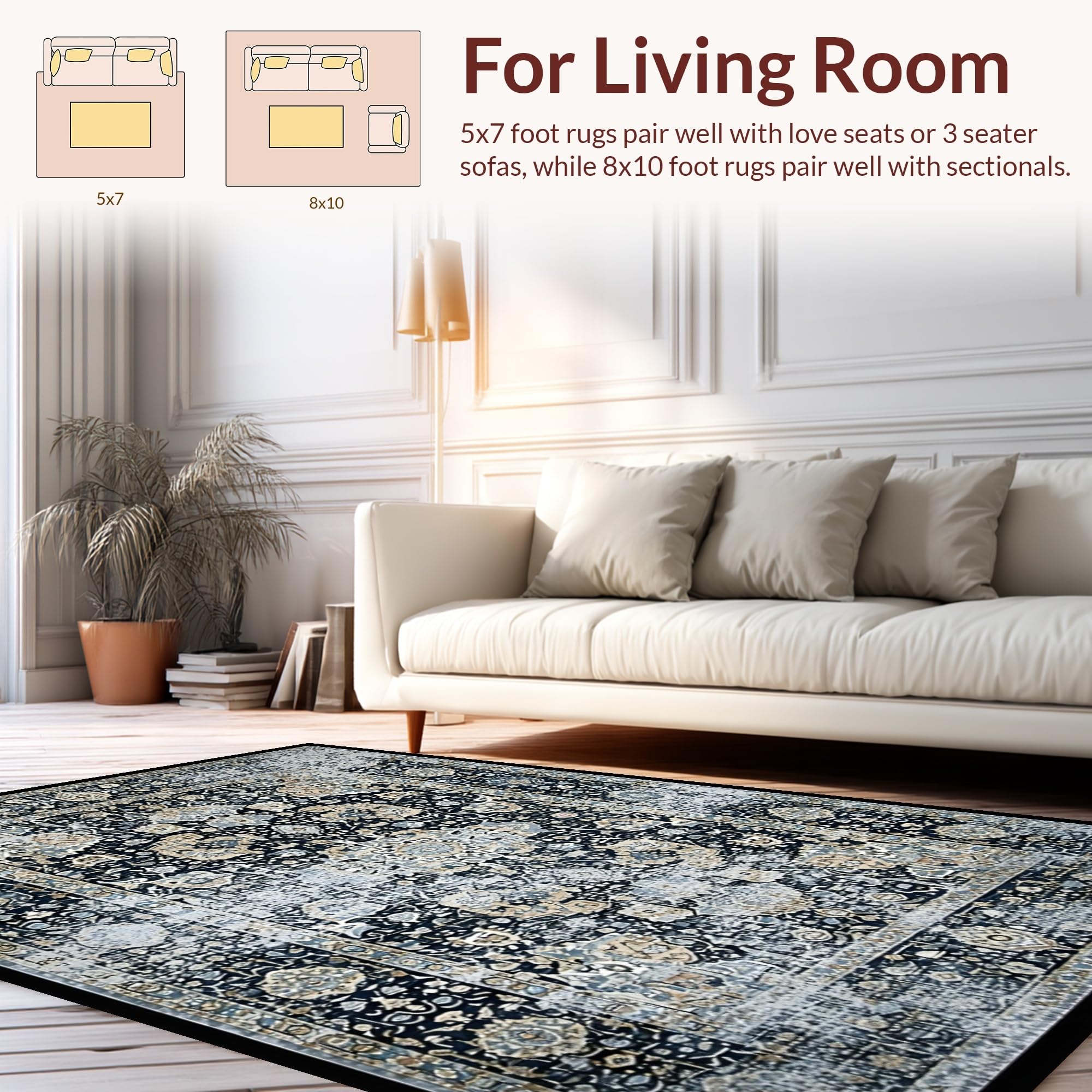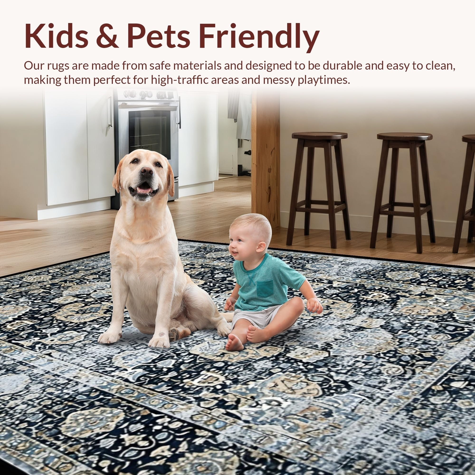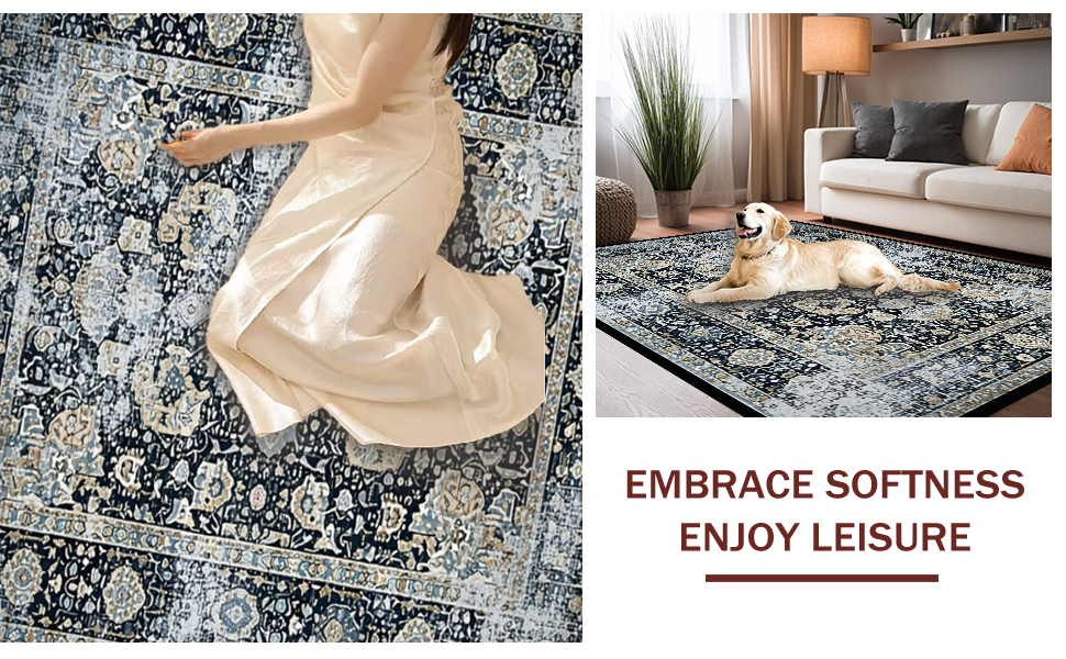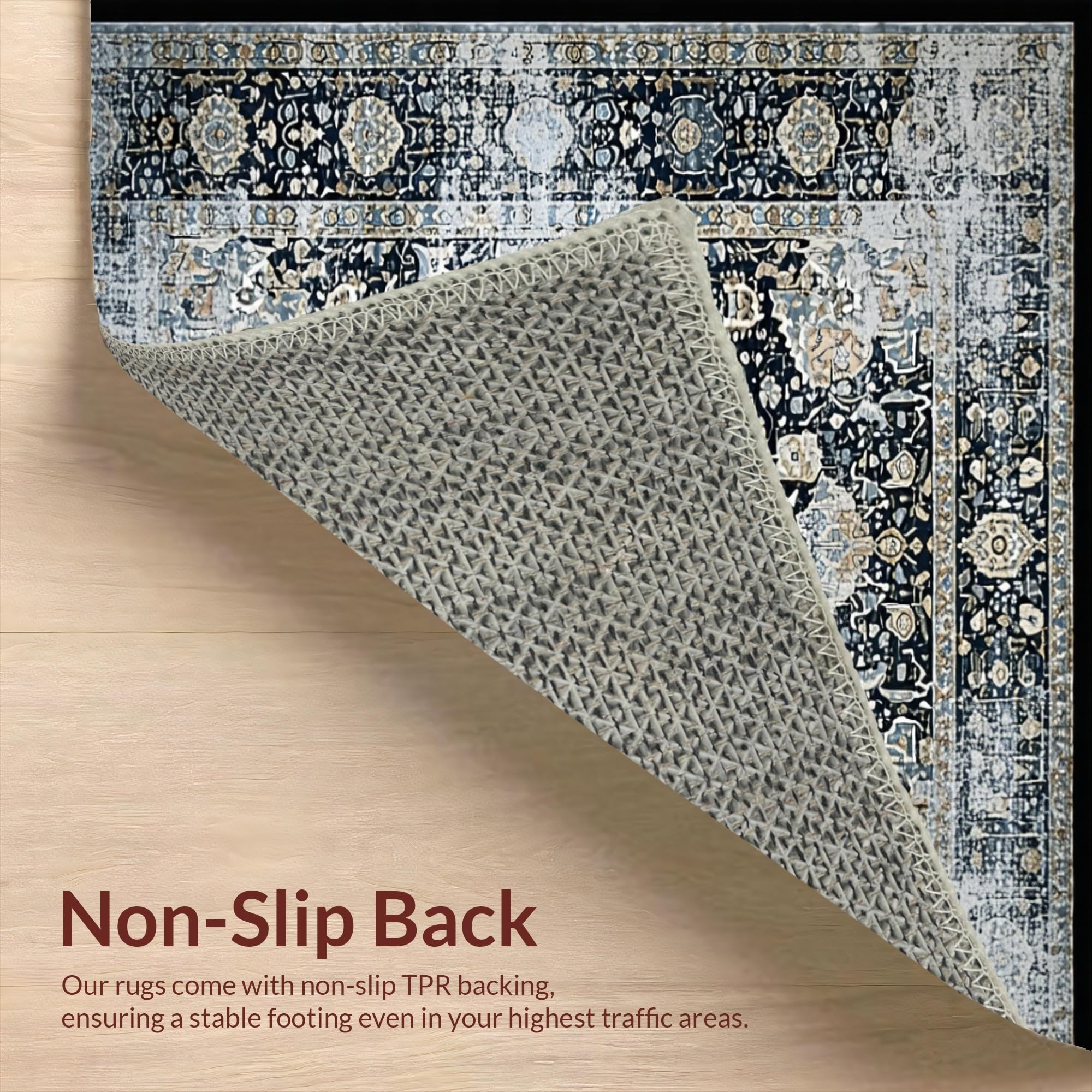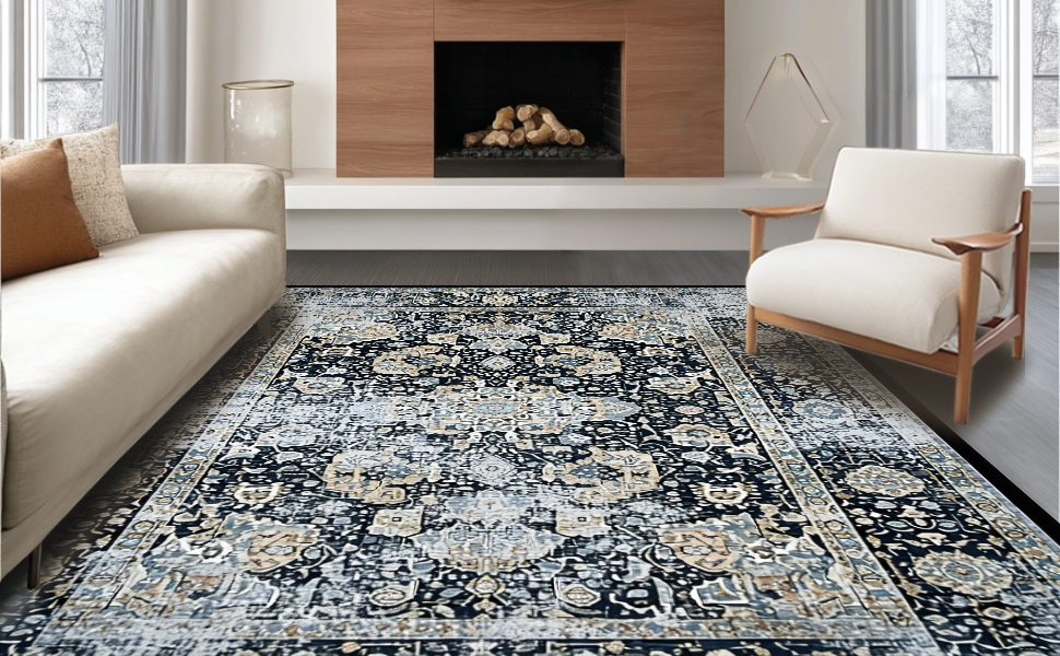 Ultra Soft Area Rug, Non Slip, Stain Resistant, Washable Area Rugs for Living Room, Bedroom, Minimalist Modern Distressed Aesthetic(Blue) Overview: