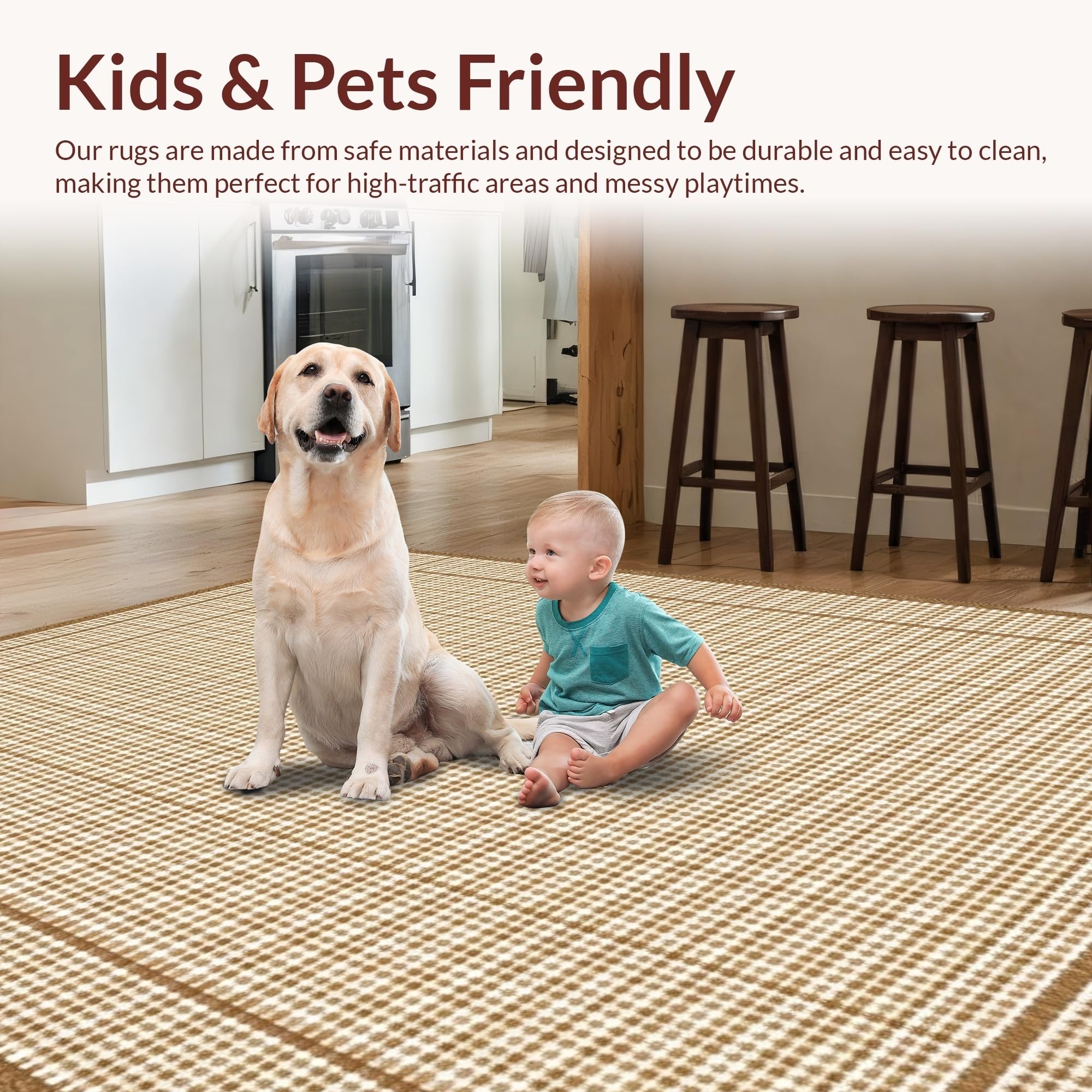 Ultra Soft Area Rug, Non Slip, Stain Resistant, Washable Area Rugs for Living Room, Bedroom, Minimalist Modern Symmetrical Elements(Beige) Overview: