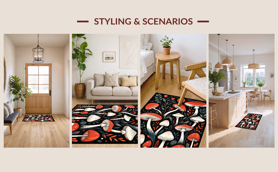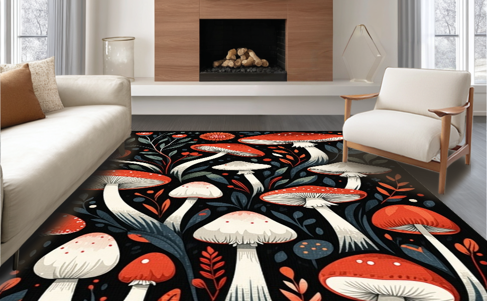 Ultra Soft Area Rug, Non Slip, Stain Resistant, Washable Area Rugs for Living Room, Bedroom, Minimalist Monochrome Floral Aesthetic(Red) Overview: