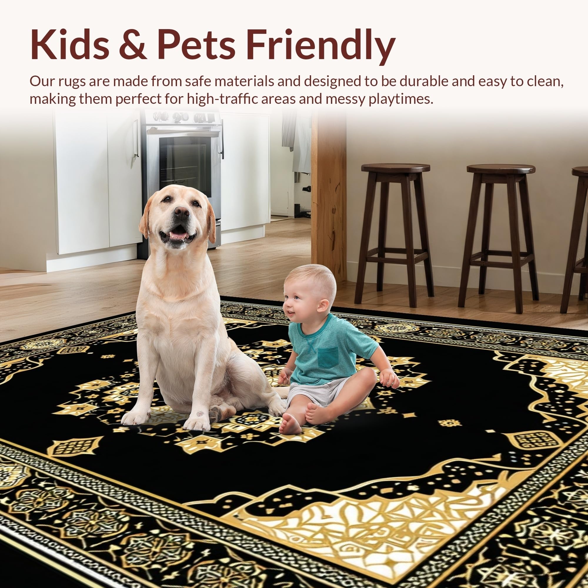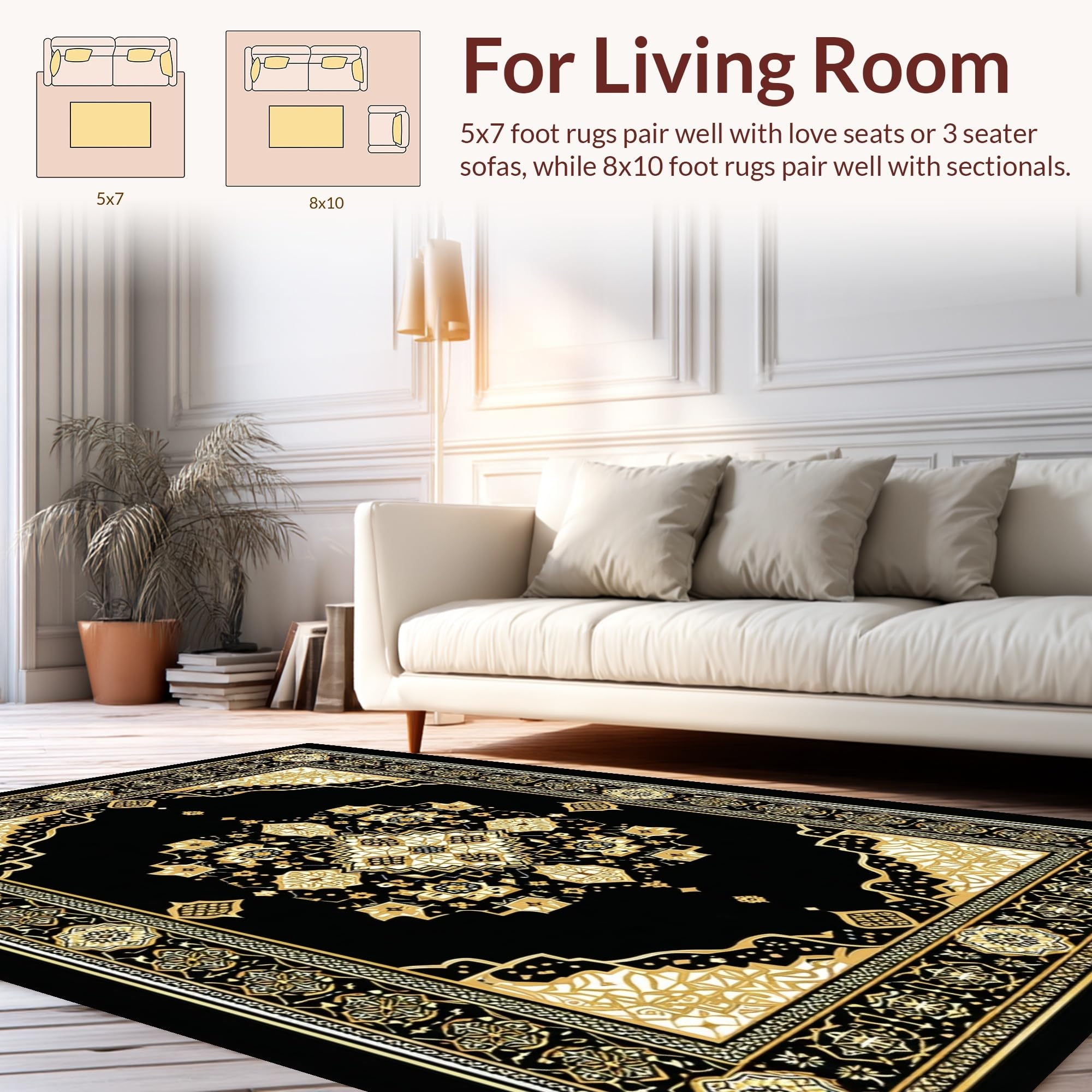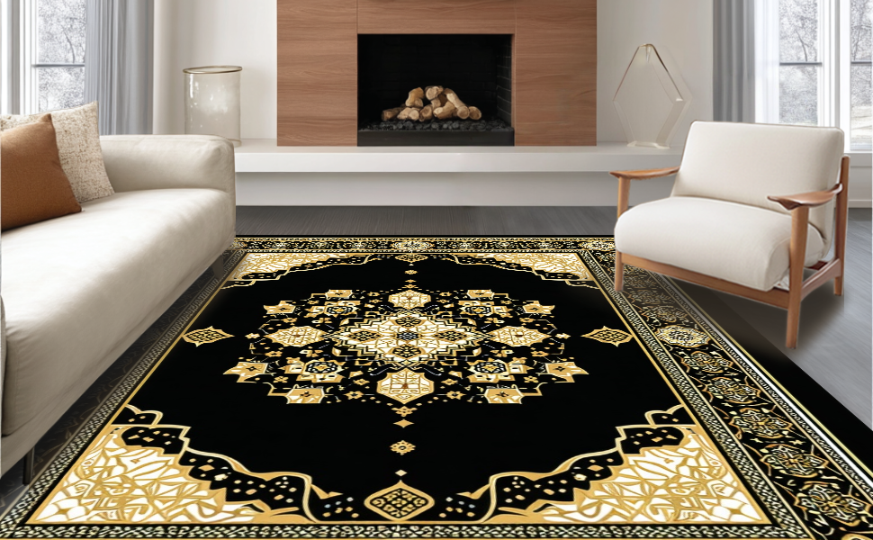 Ultra Soft Area Rug, Non Slip, Stain Resistant, Washable Area Rugs for Living Room, Bedroom, Minimalist Monochrome Floral Design(Black) Overview: