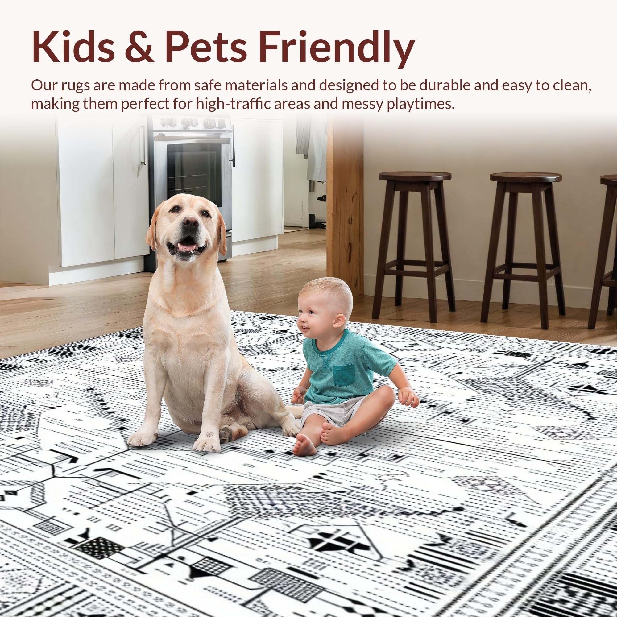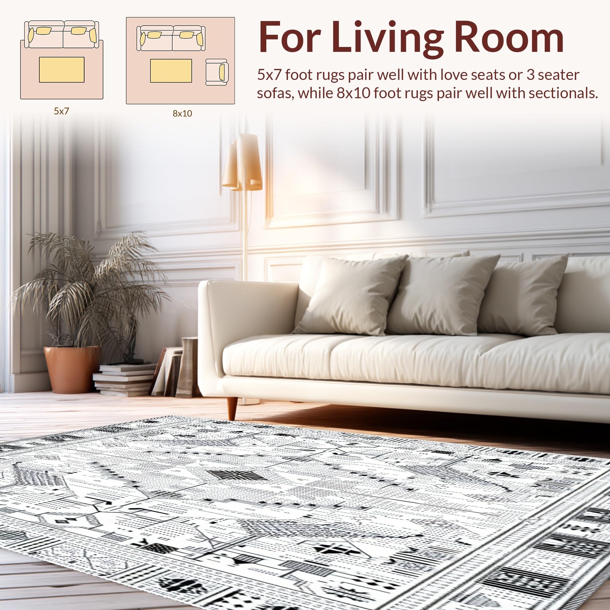 Ultra Soft Area Rug, Non Slip, Stain Resistant, Washable Area Rugs for Living Room, Bedroom, Minimalist Monochrome Gray(Black) Overview: