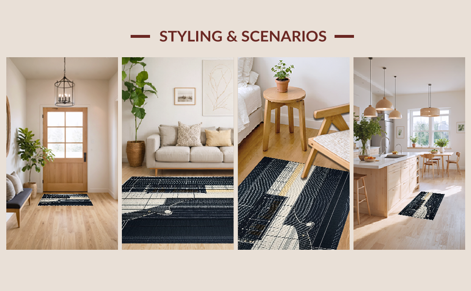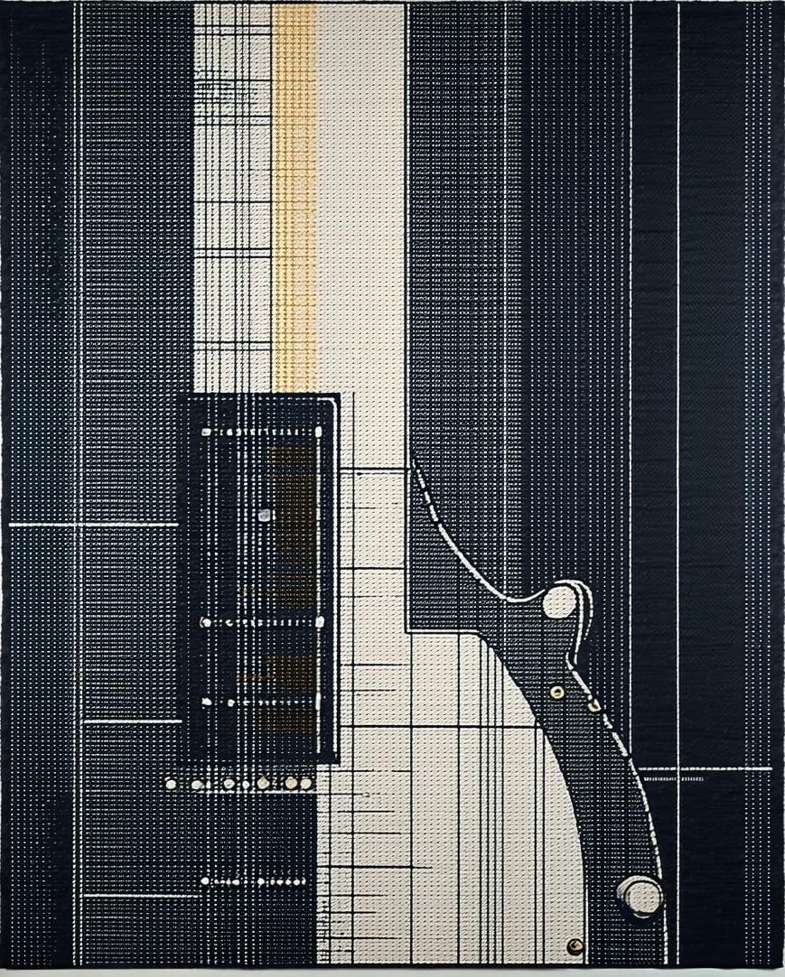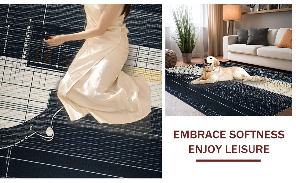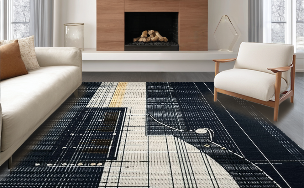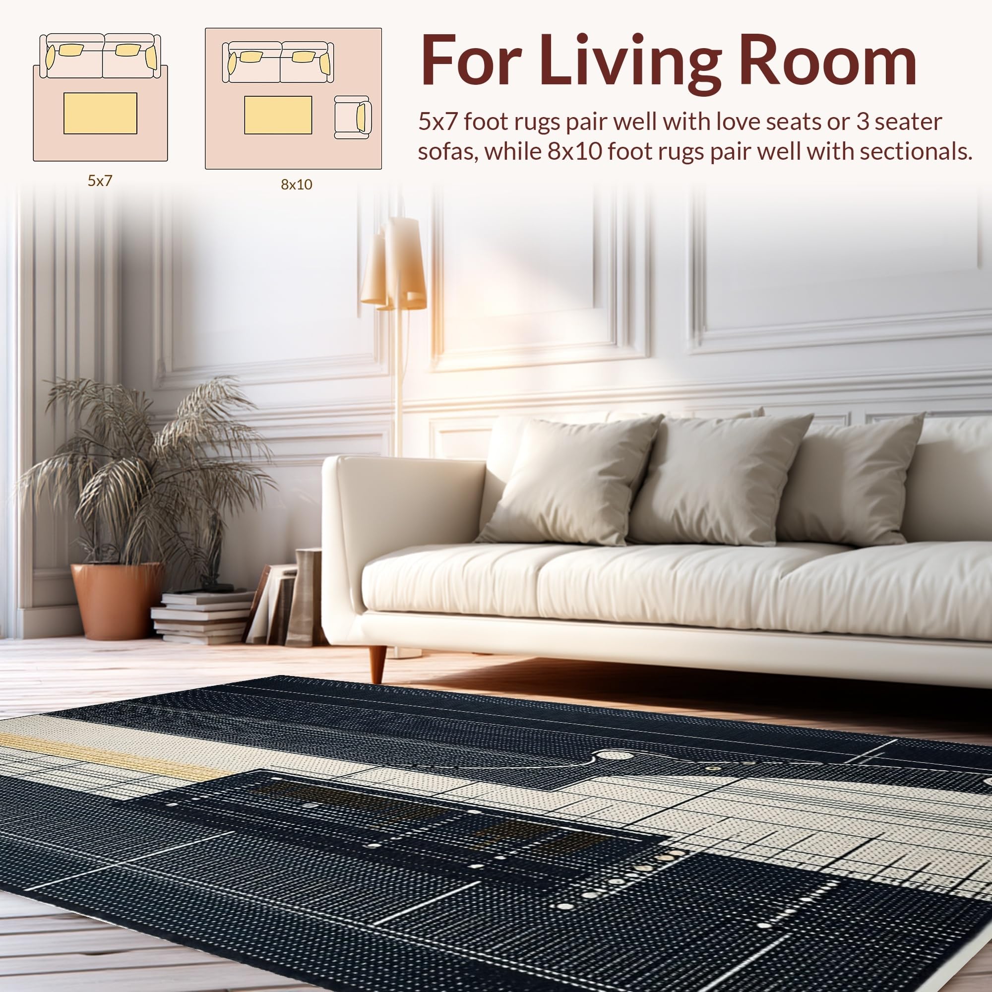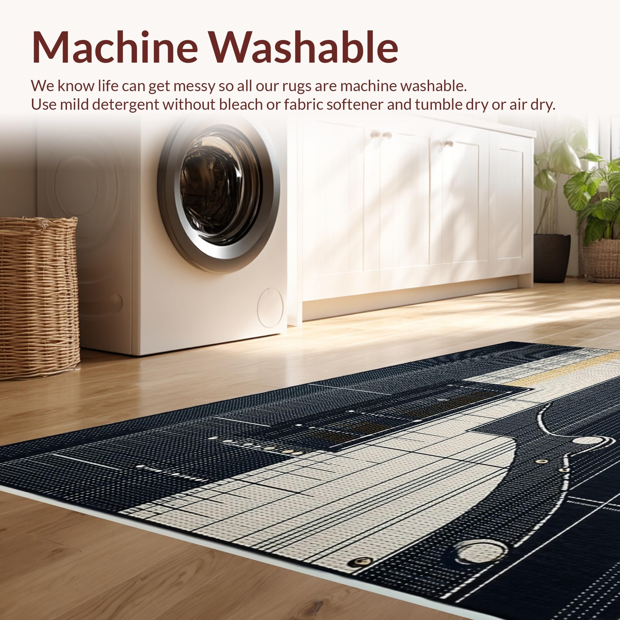 Ultra Soft Area Rug, Non Slip, Stain Resistant, Washable Area Rugs for Living Room, Bedroom, Minimalist Monochrome Guitar Illustration(Black) Overview: