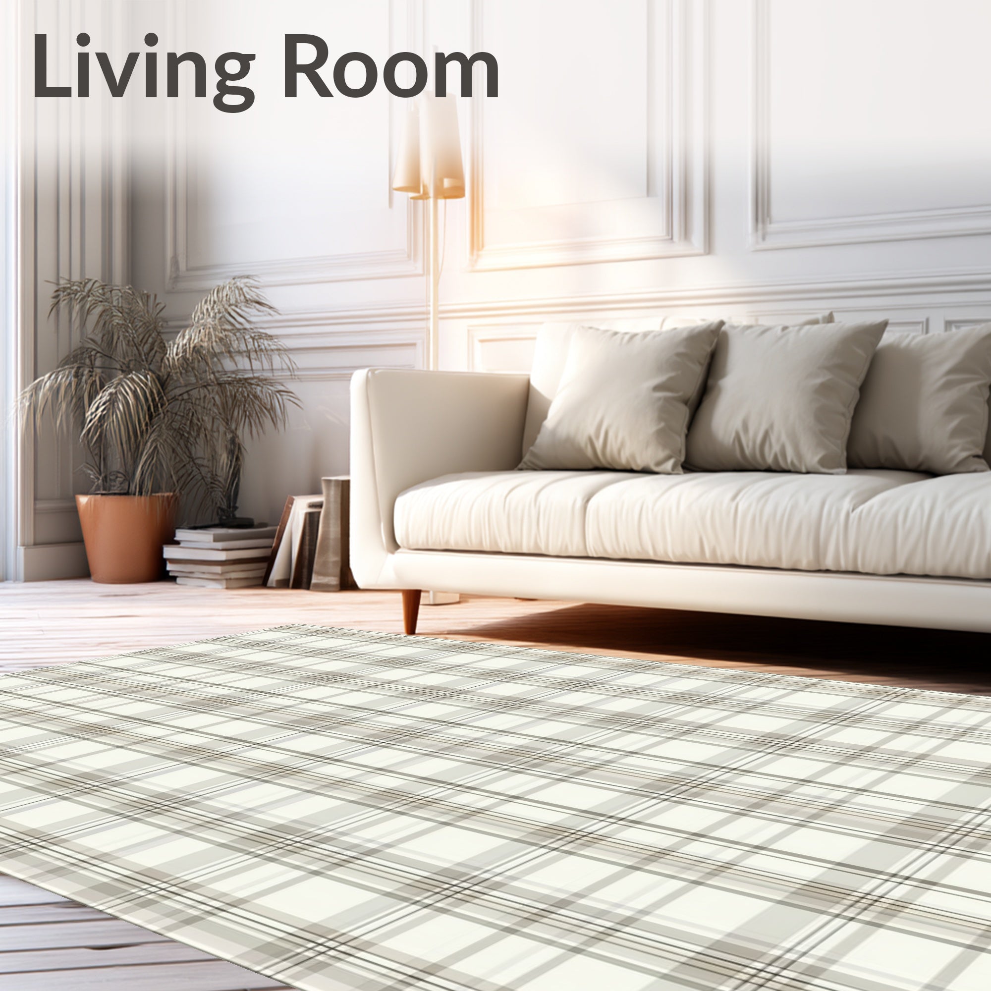 Flatwoven High Traffic Area Rug, Minimalist Neutral Tartan with Beige and Sand Plaid Design, Non Slip, Stain Resistant, Washable Area Rugs for Living Room, Bedroom (Beige) Overview: