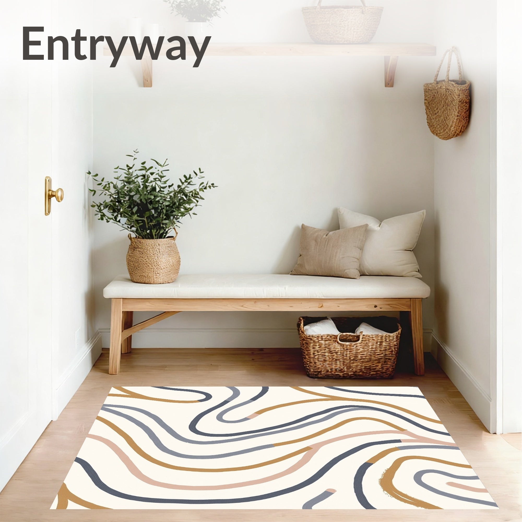 Flatwoven High Traffic Area Rug, Minimalist Nordic Contemporary Abstract Brushstroke Wave Modern, Non Slip, Stain Resistant, Washable Area Rugs for Living Room, Bedroom (Brown) Overview:
