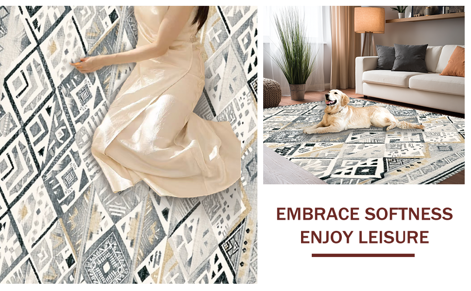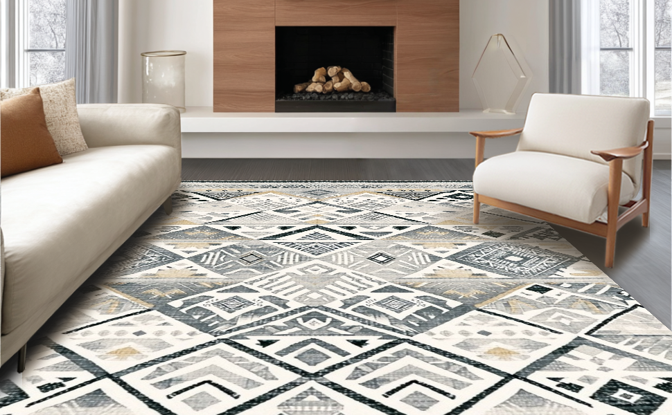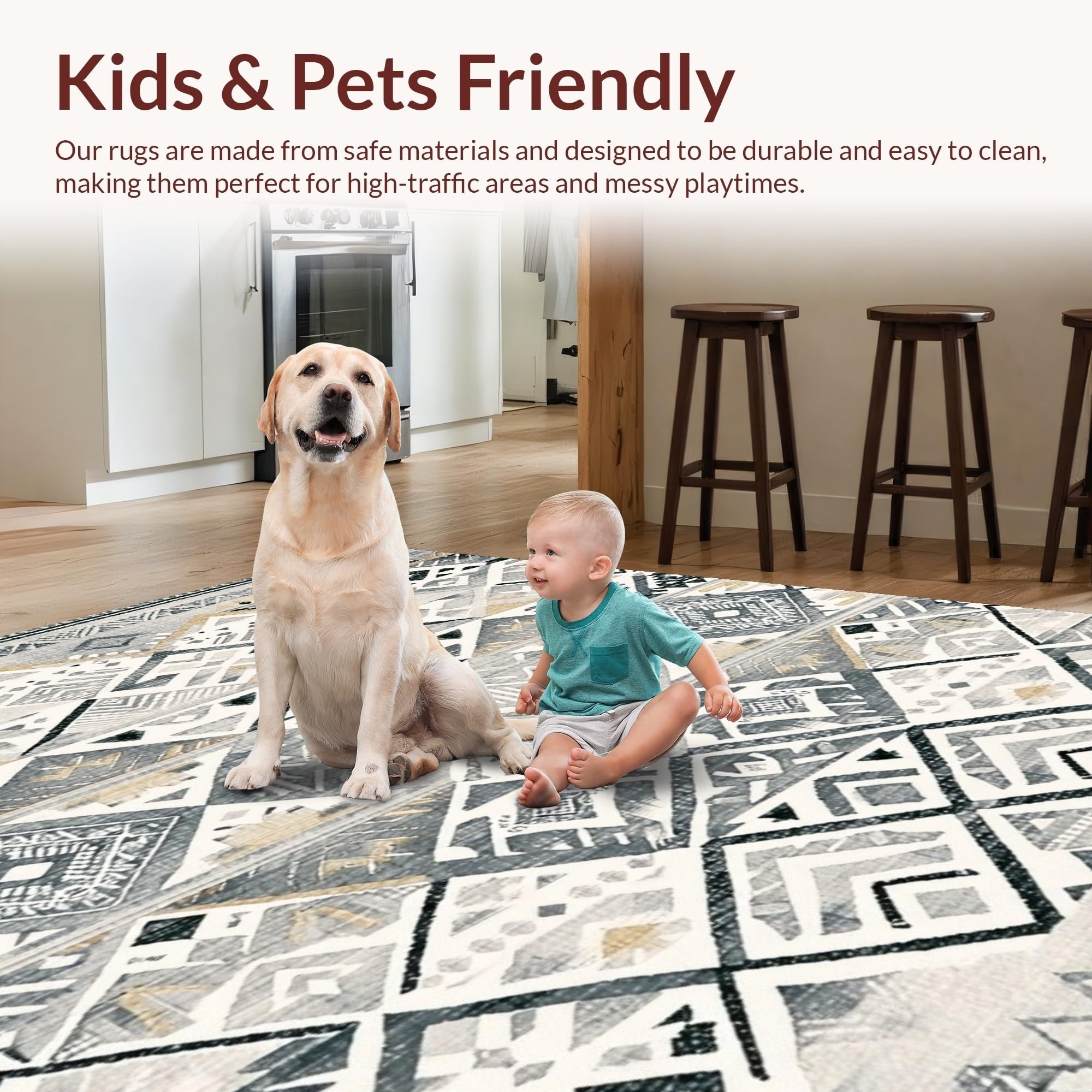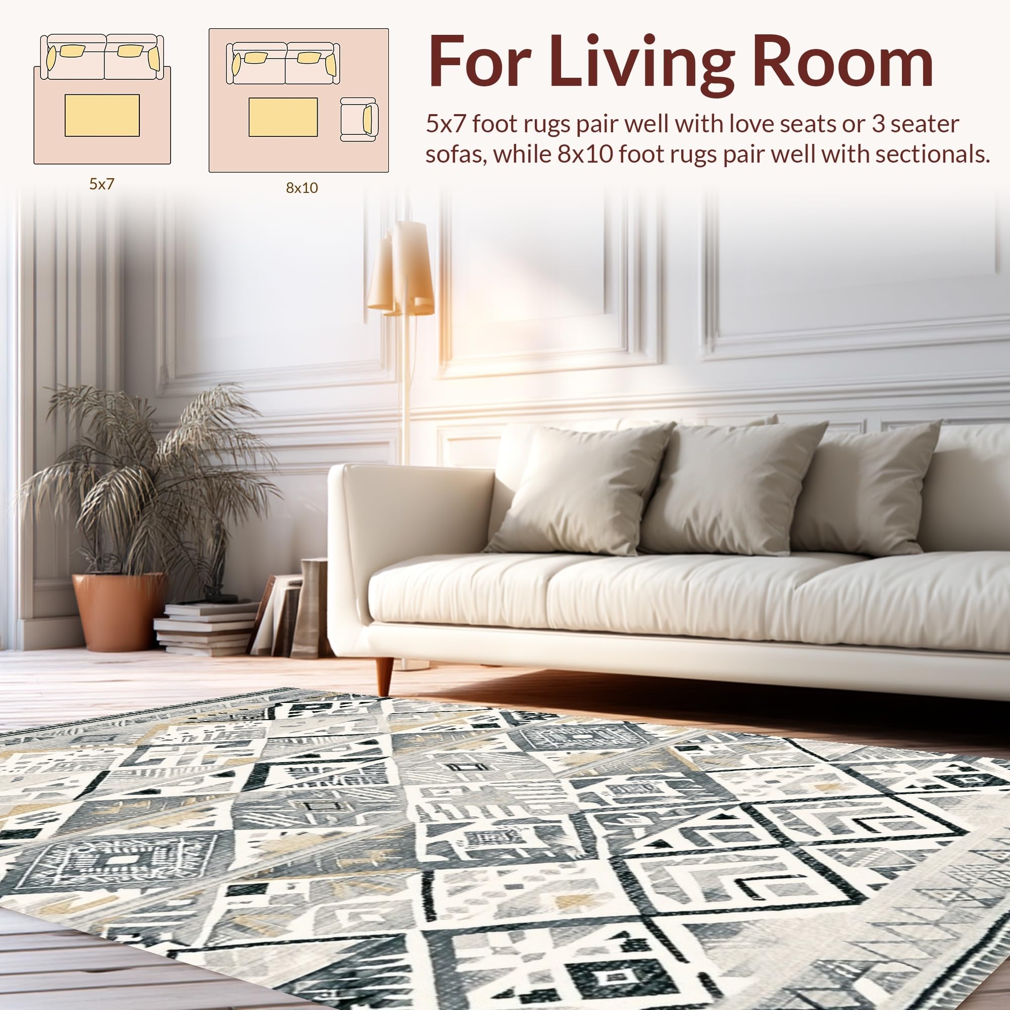 Ultra Soft Area Rug, Non Slip, Stain Resistant, Washable Area Rugs for Living Room, Bedroom, Minimalist Organic Pattern Fusion(Gray) Overview:
