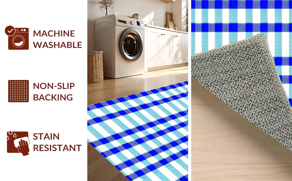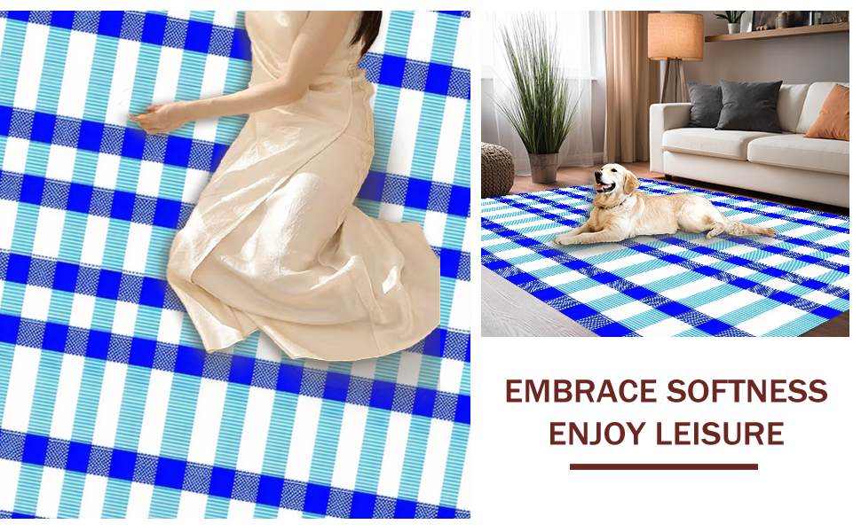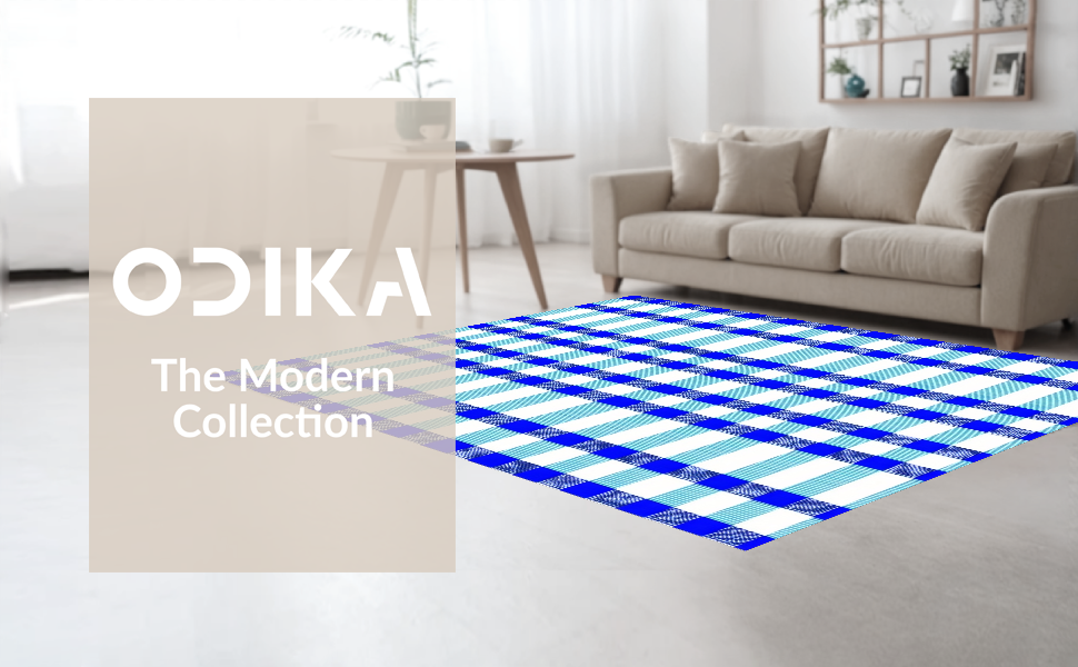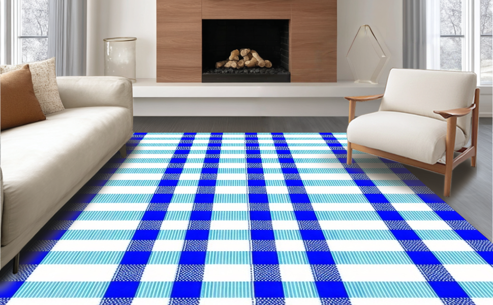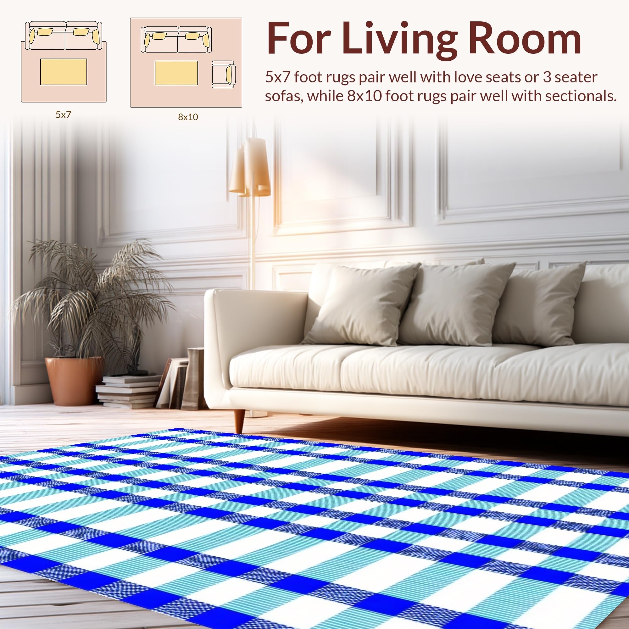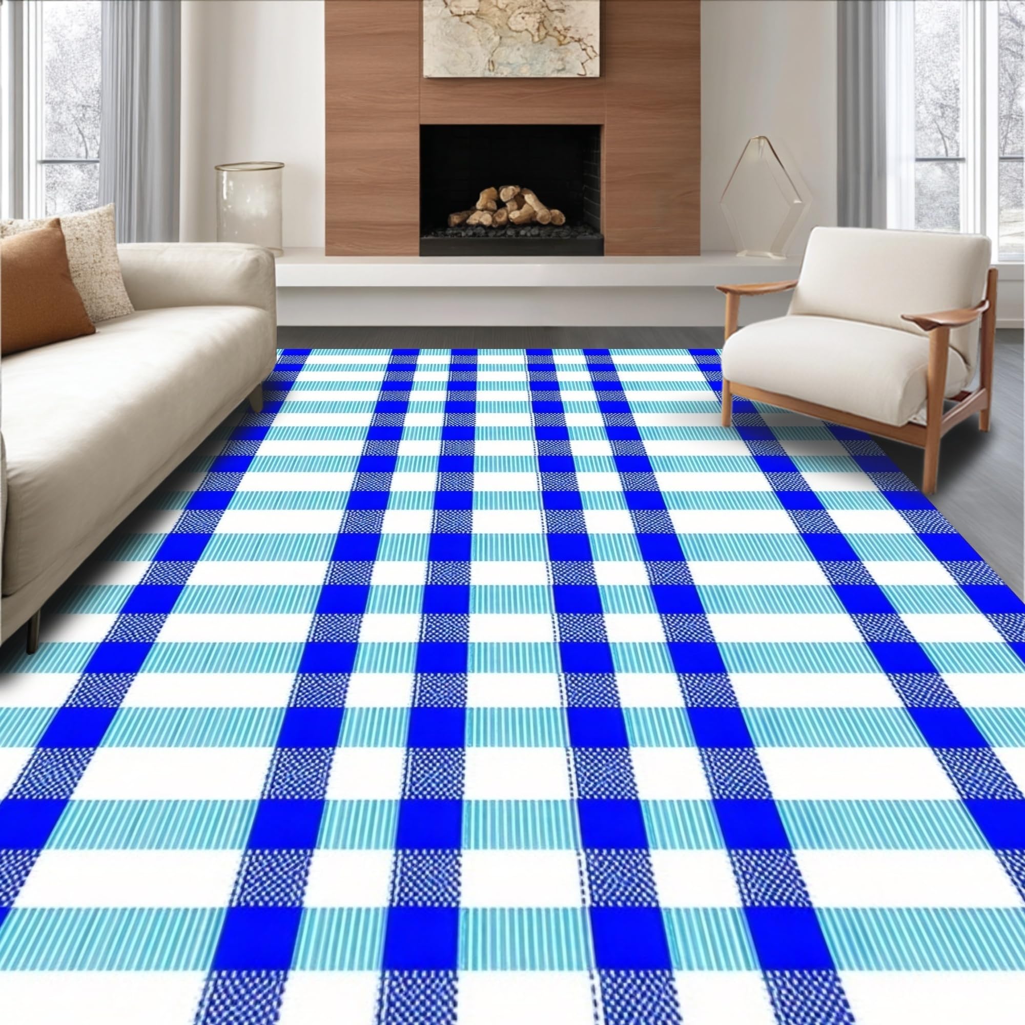 Ultra Soft Area Rug, Non Slip, Stain Resistant, Washable Area Rugs for Living Room, Bedroom, Minimalist Outdoor Blue Tartan Style(Blue) Overview: