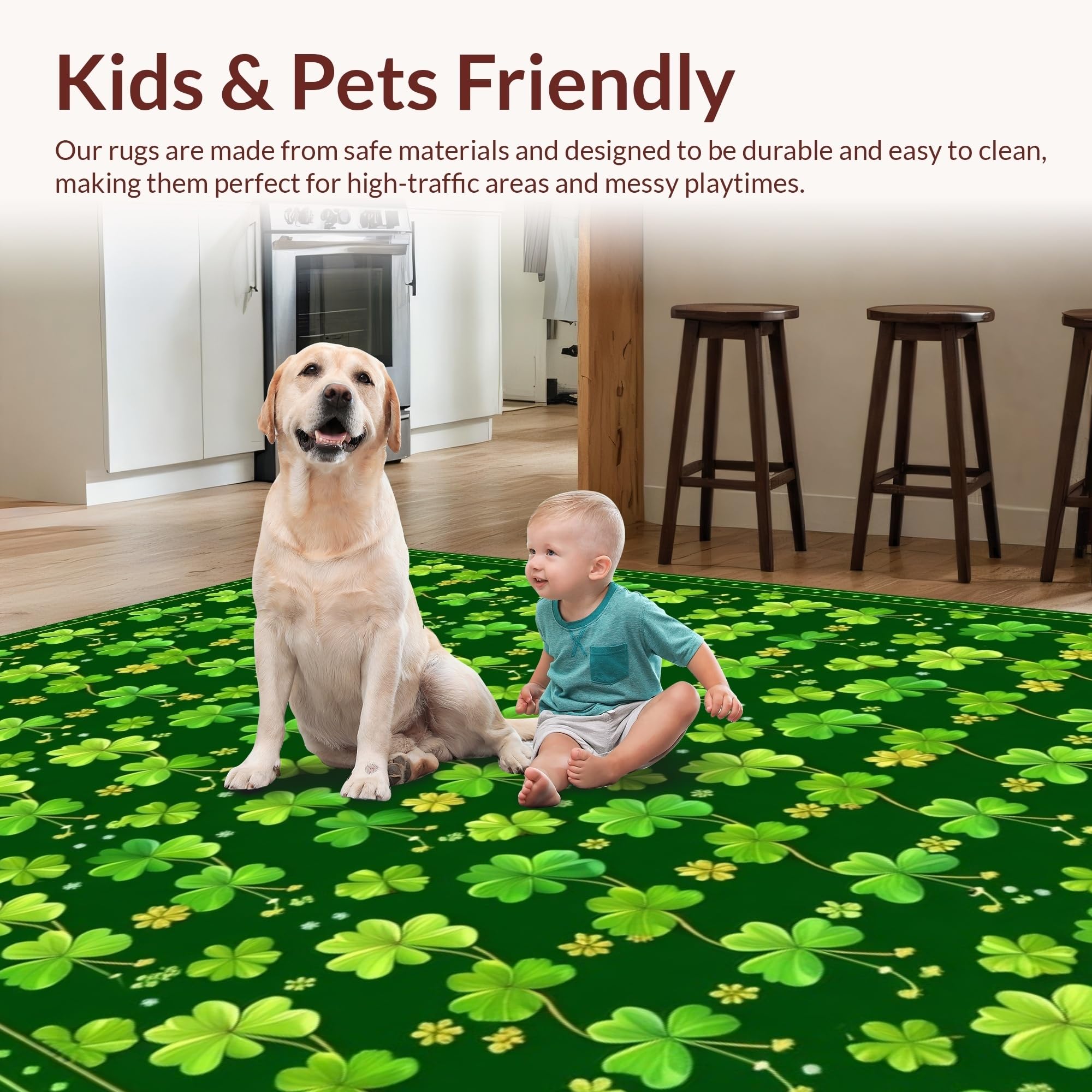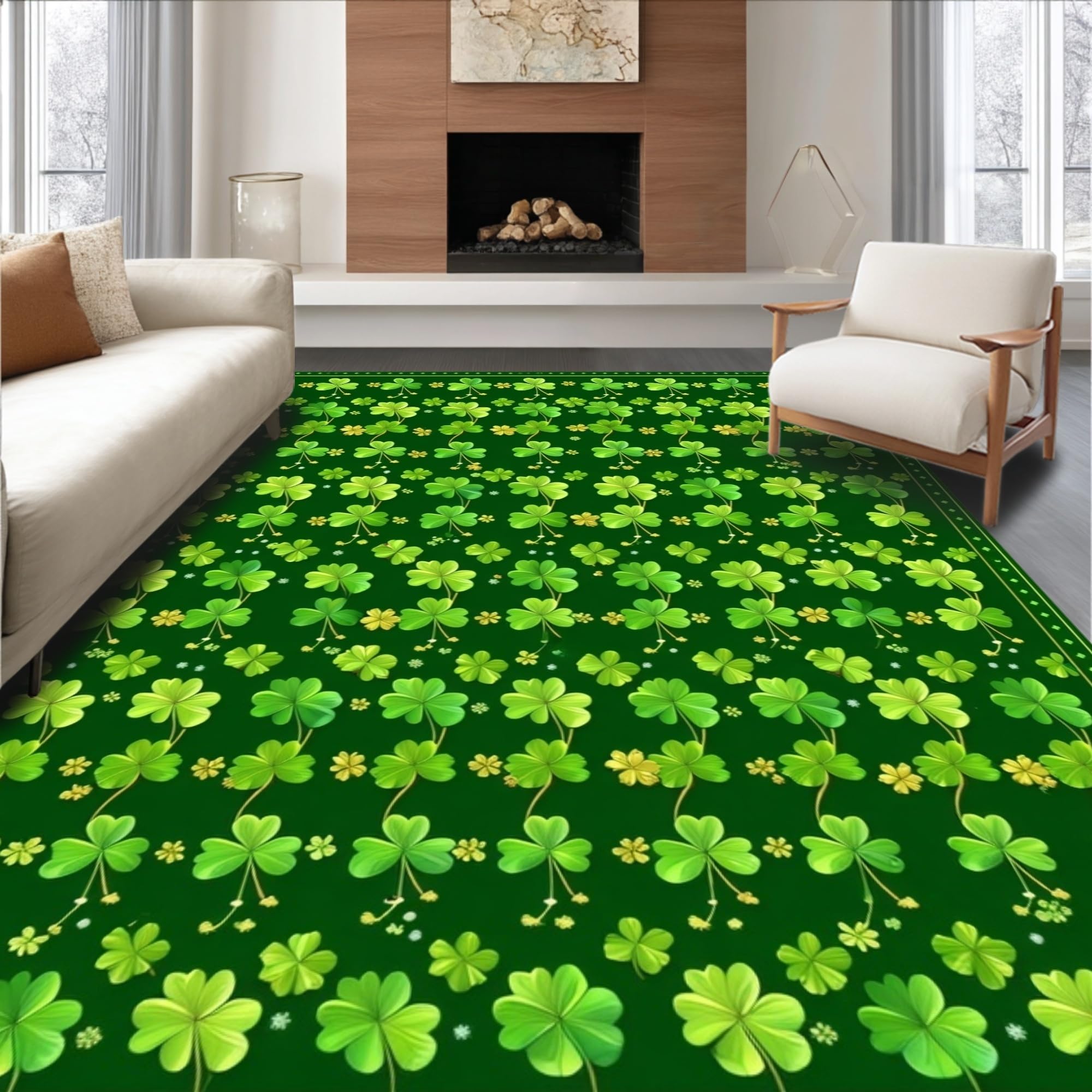 Ultra Soft Area Rug, Non Slip, Stain Resistant, Washable Area Rugs for Living Room, Bedroom, Minimalist Shamrock Emblem Style(Green) Overview: