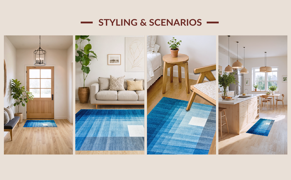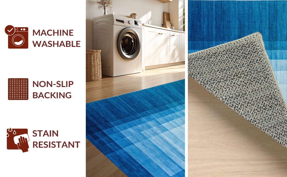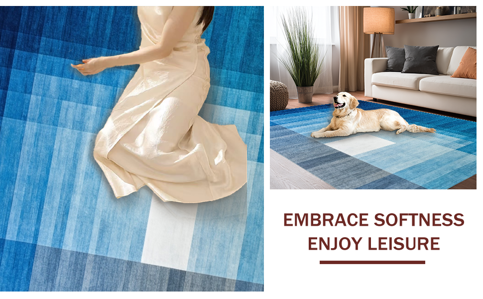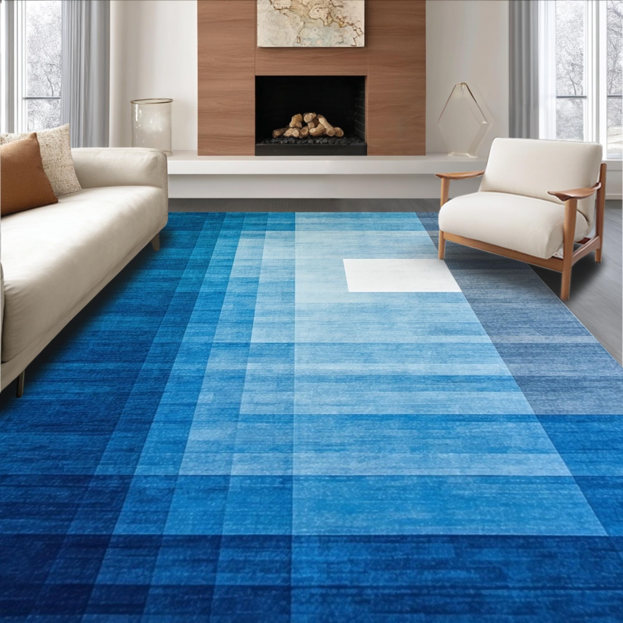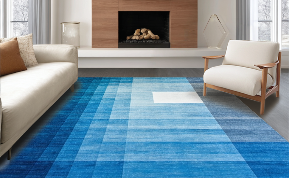 Ultra Soft Area Rug, Non Slip, Stain Resistant, Washable Area Rugs for Living Room, Bedroom, Minimalist Soft Color Transition(Blue) Overview: