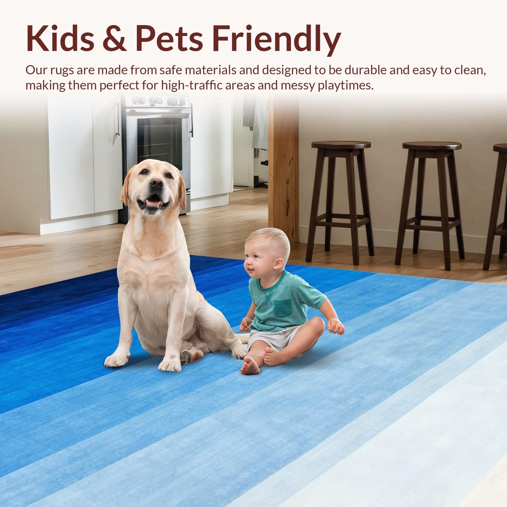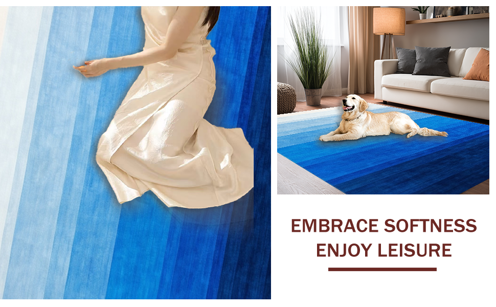 Ultra Soft Area Rug, Non Slip, Stain Resistant, Washable Area Rugs for Living Room, Bedroom, Minimalist Stylish Watercolor Blend(Blue) Overview: