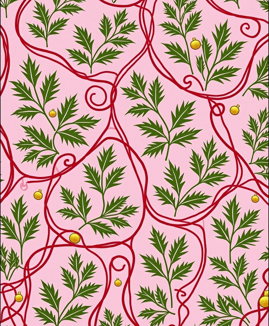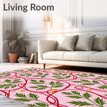 Flatwoven High Traffic Area Rug, Mistletoe Cluster with Ribbon Swirls and Festive Bauble Detailing Arc Shape, Non Slip, Stain Resistant, Washable Area Rugs for Living Room, Bedroom (Pink) Overview: