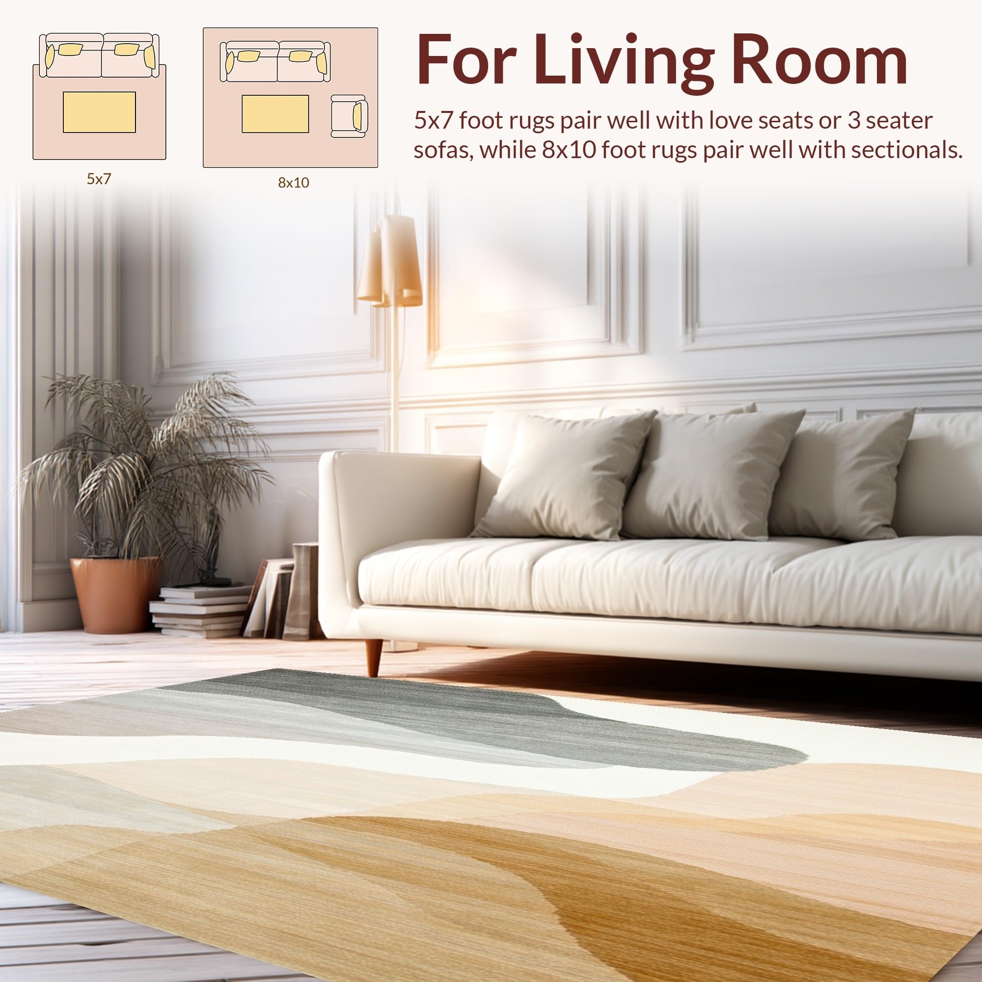 Ultra Soft Area Rug, Non Slip, Stain Resistant, Washable Area Rugs for Living Room, Bedroom, Modern Abstract Area Tan Beige Geometric Design(Beige) Overview:
