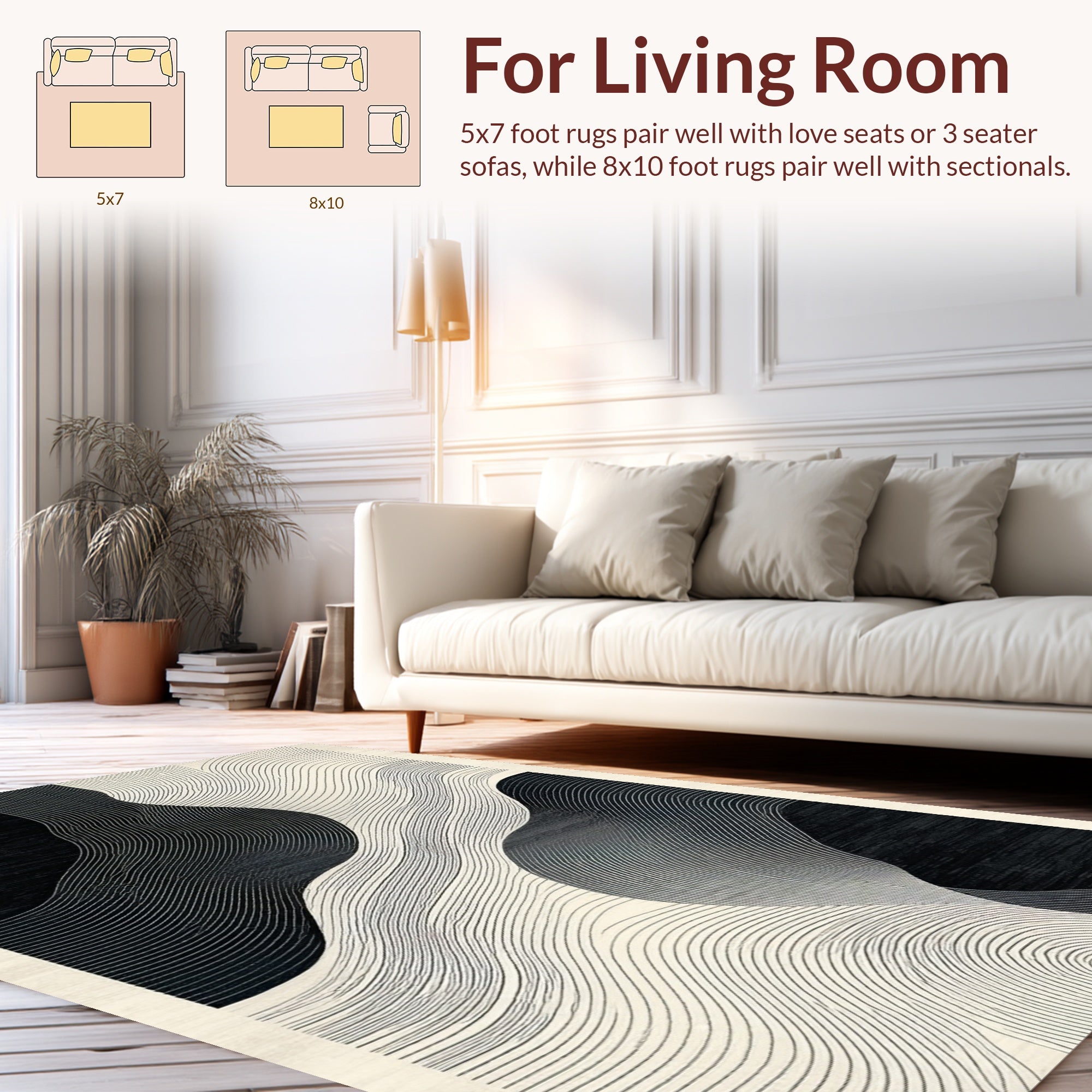 Ultra Soft Area Rug, Non Slip, Stain Resistant, Washable Area Rugs for Living Room, Bedroom, Modern Abstract Bathroom Runner Non Slip Bath Stylish Home Decor(Black) Overview: