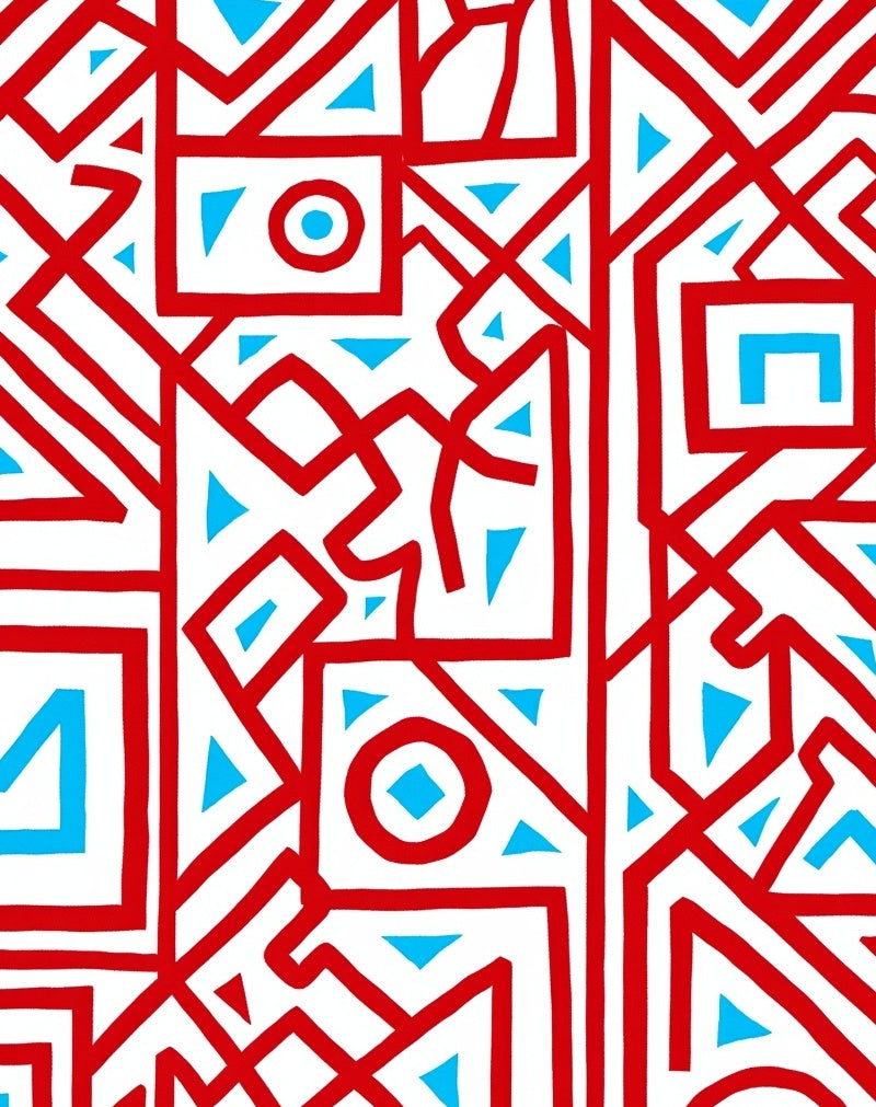 Modern Abstract Maze with Interlocking Lattice and Poppy Highlights(Red)