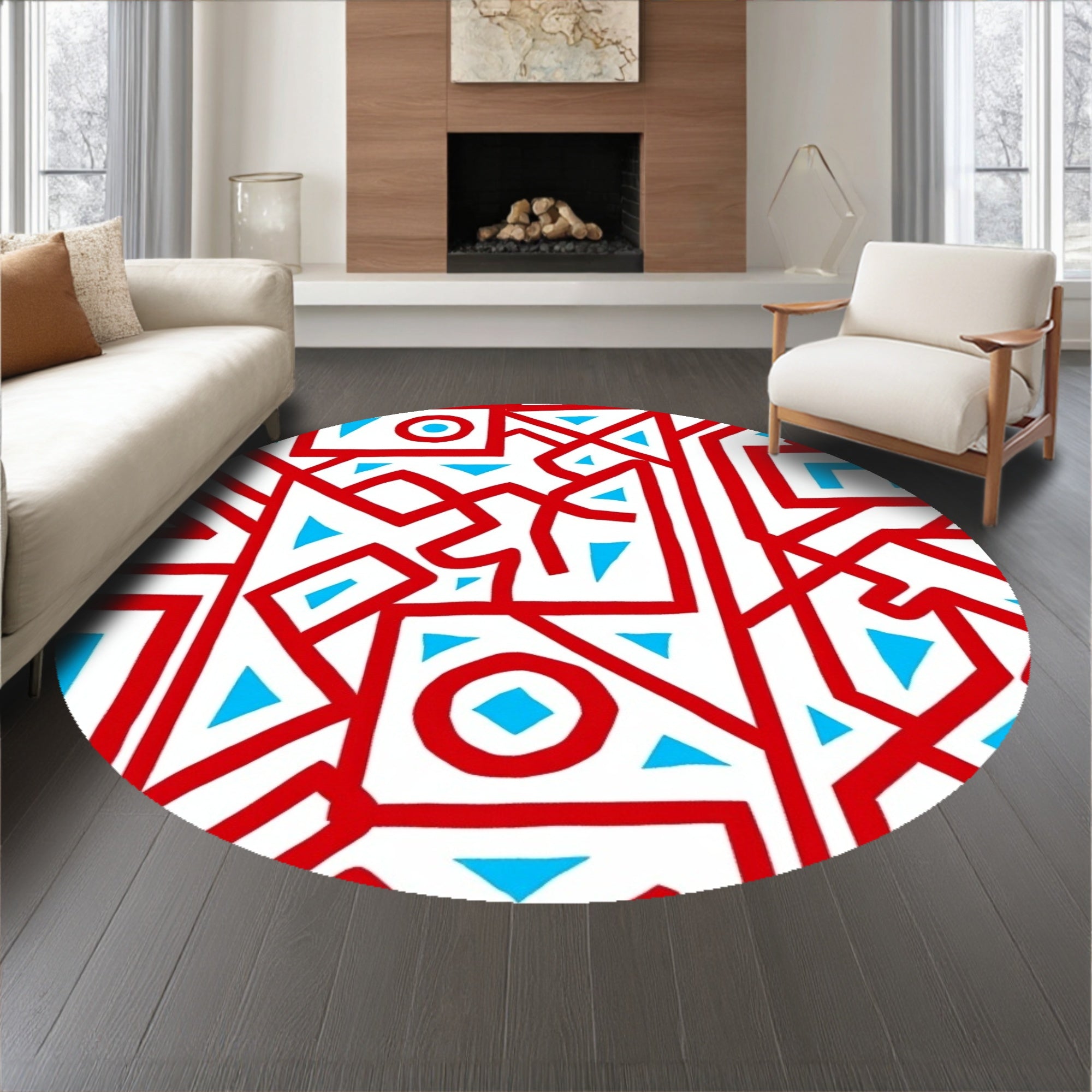 Ultra Soft Area Rug, Non Slip, Stain Resistant, Washable Area Rugs for Living Room, Bedroom, Modern Abstract Maze with Interlocking Lattice and Poppy Highlights(Red) Overview: